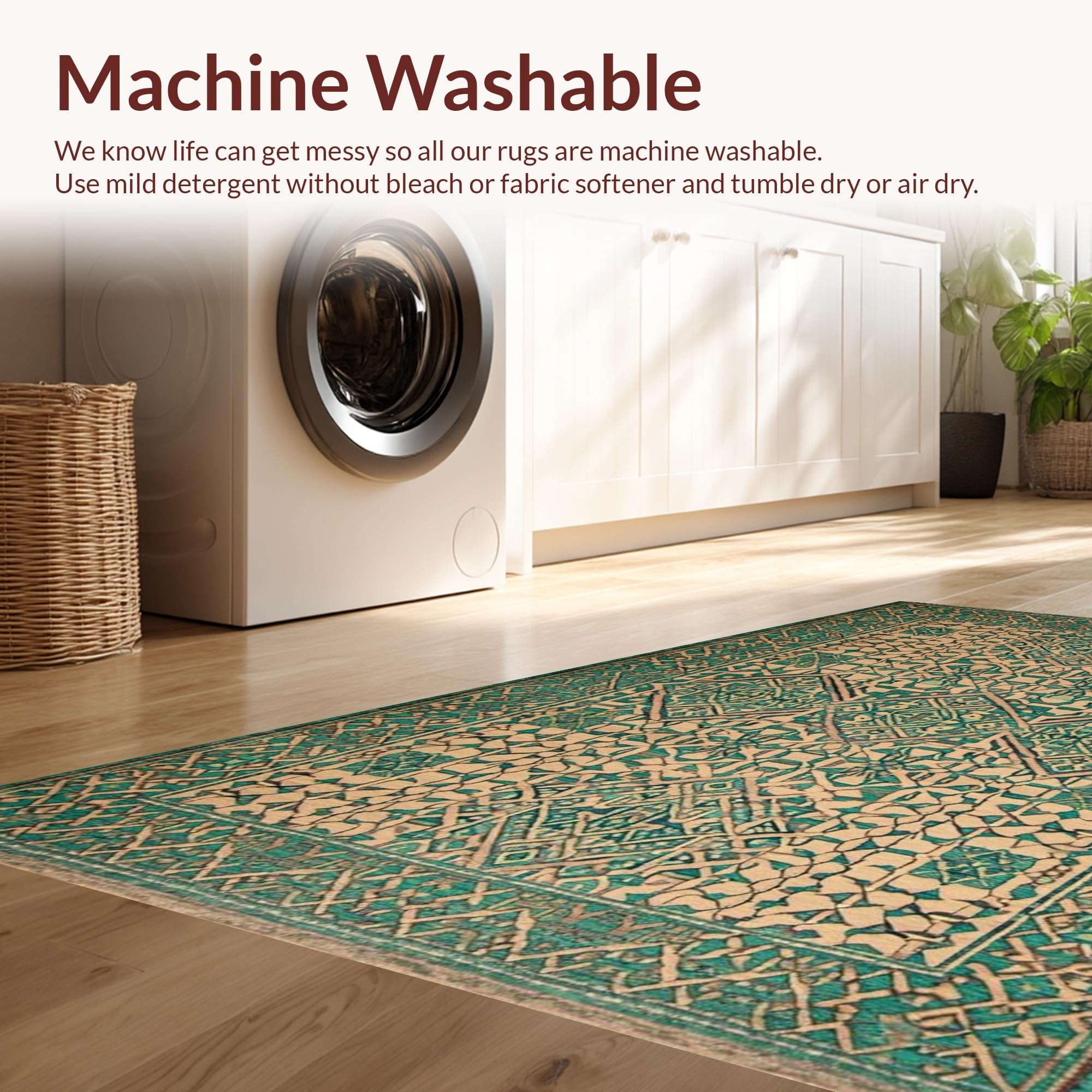 - Machine Washable: Our rugs can be easily thrown in the wash machine.