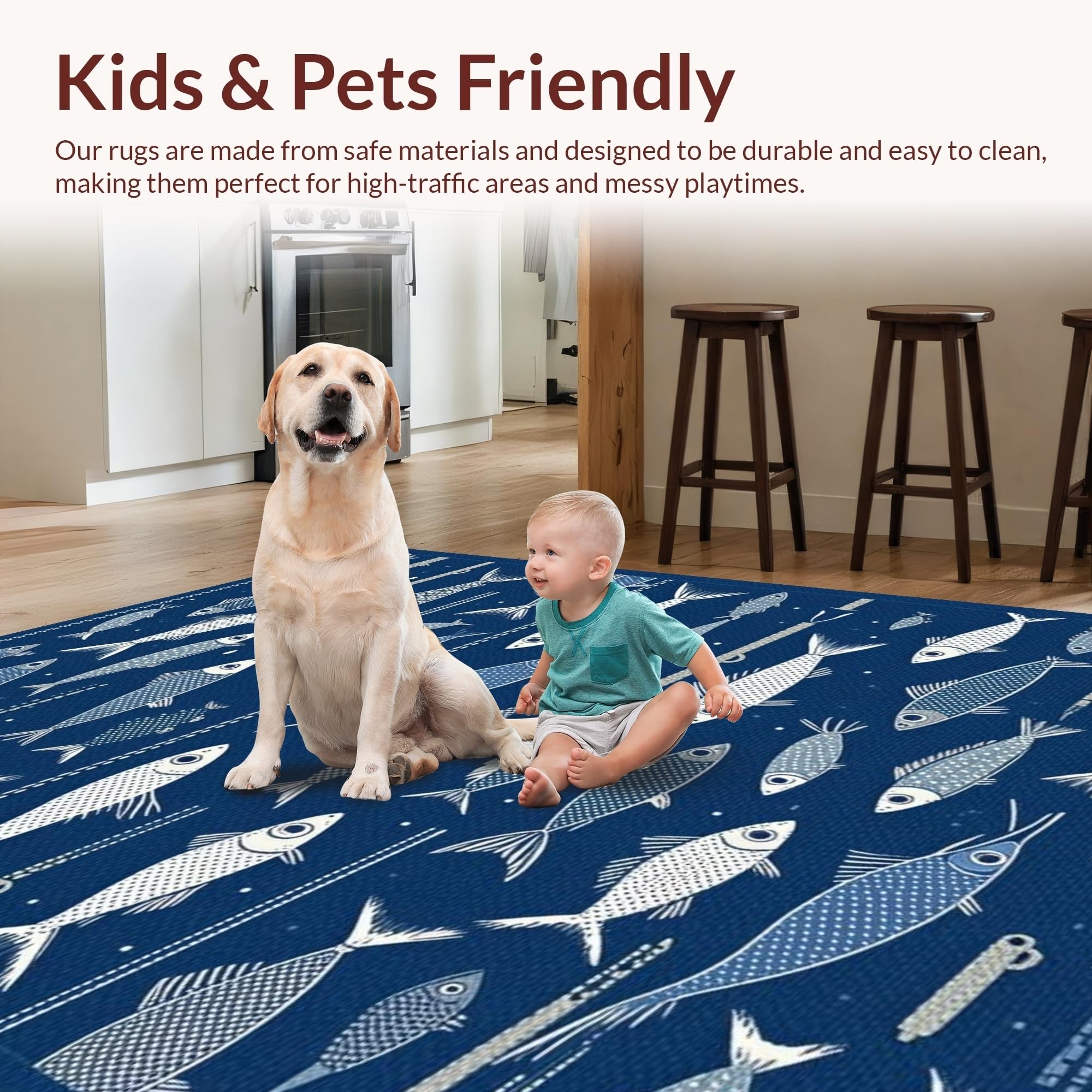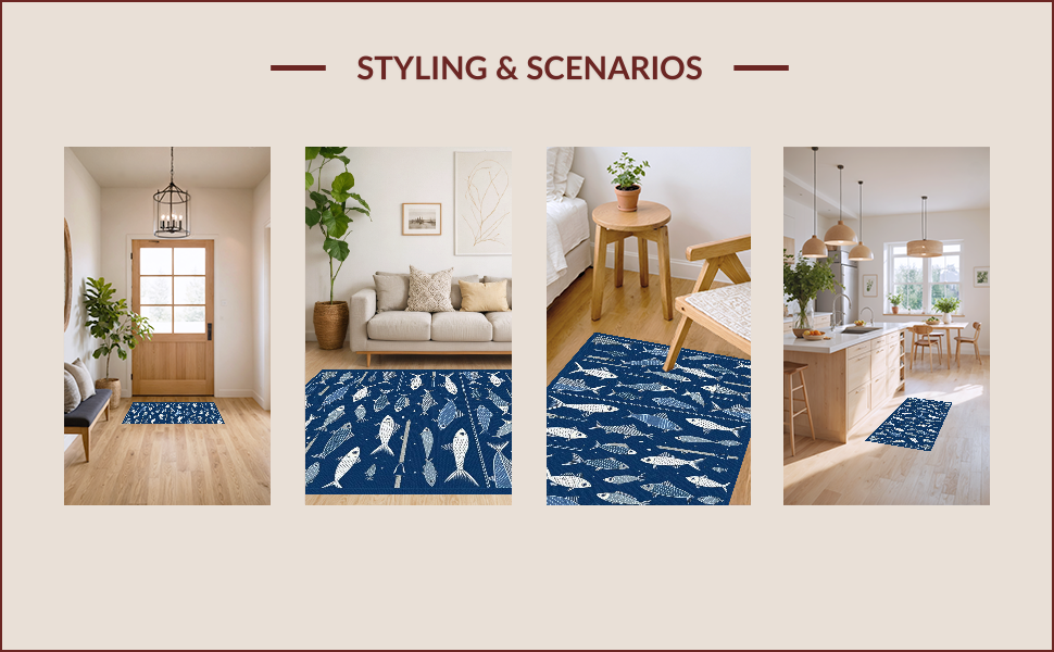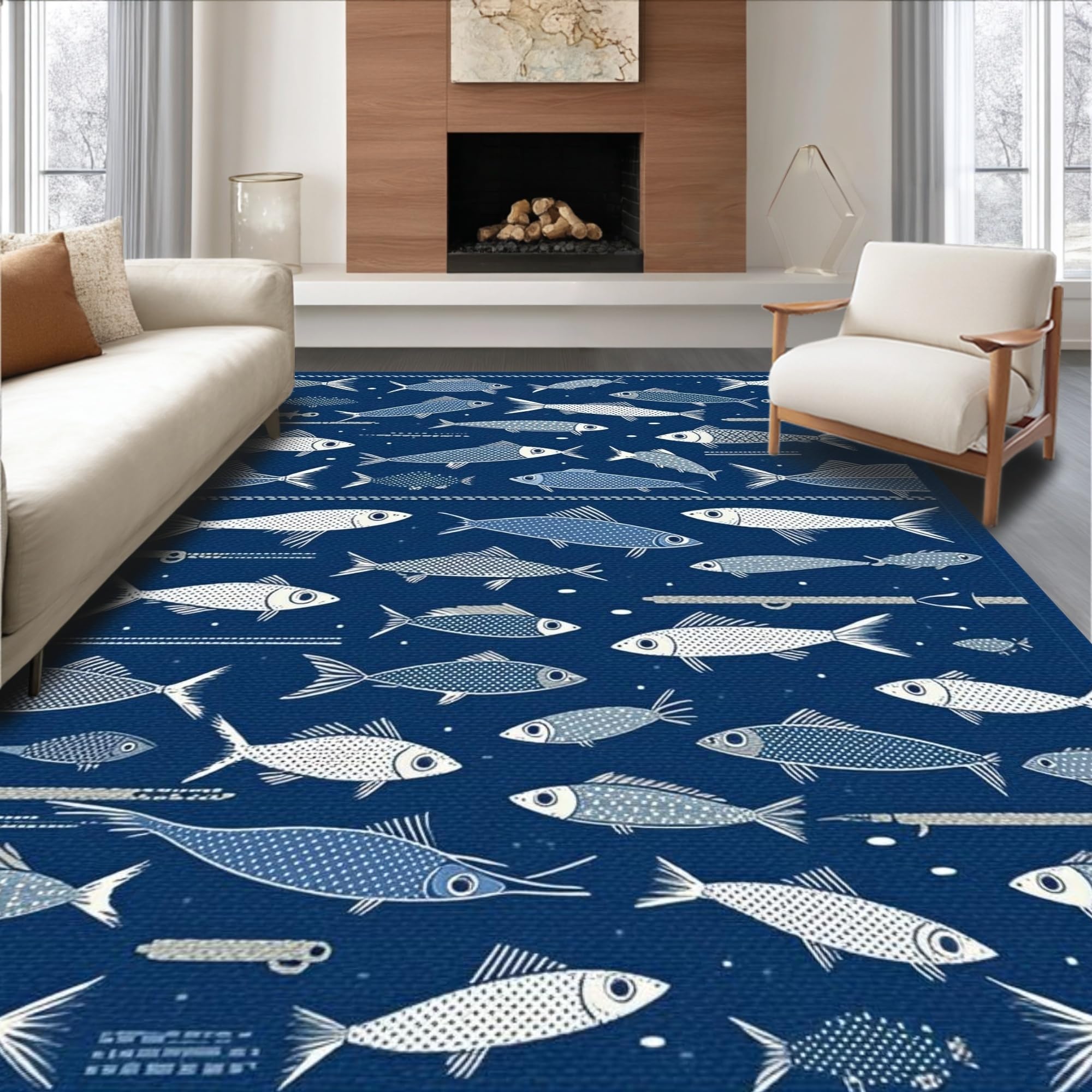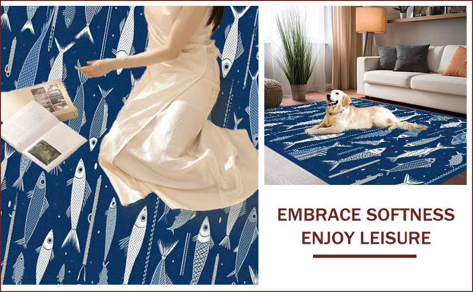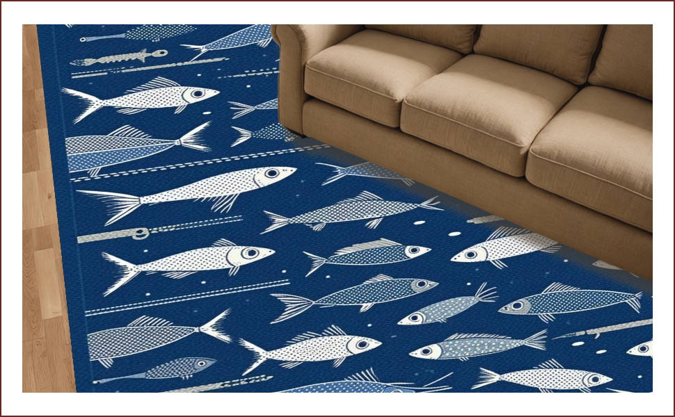 Ultra Soft Area Rug, Non Slip, Stain Resistant, Washable Area Rugs for Living Room, Bedroom, Rustic Multicolored Nautical Theme(Blue) Overview: