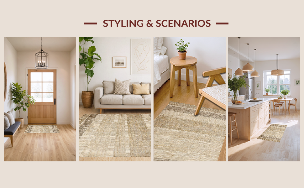 Ultra Soft Area Rug, Non Slip, Stain Resistant, Washable Area Rugs for Living Room, Bedroom, Rustic Natural Braided Aesthetic(Beige) Overview: