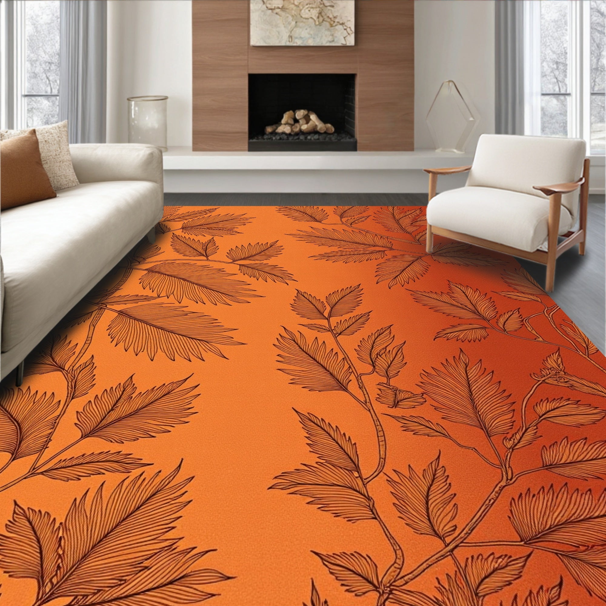 Ultra Soft Area Rug, Non Slip, Stain Resistant, Washable Area Rugs for Living Room, Bedroom, Rustic Nature Semicircular Front Pathway Accessory(Orange) Overview: