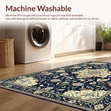 Ultra Soft Area Rug, Non Slip, Stain Resistant, Washable Area Rugs for Living Room, Bedroom, Rustic Navy Floral Elegance(Blue) Overview: