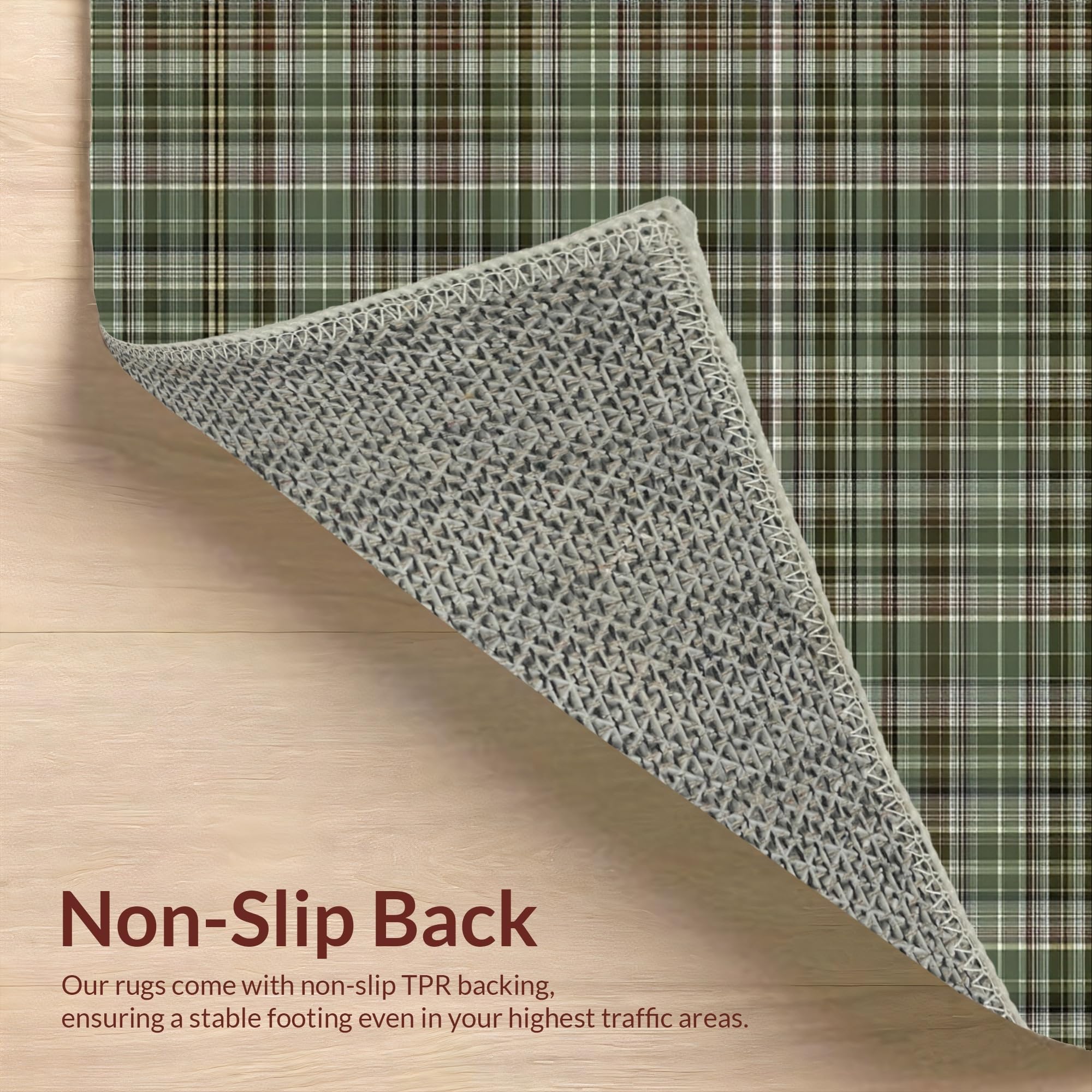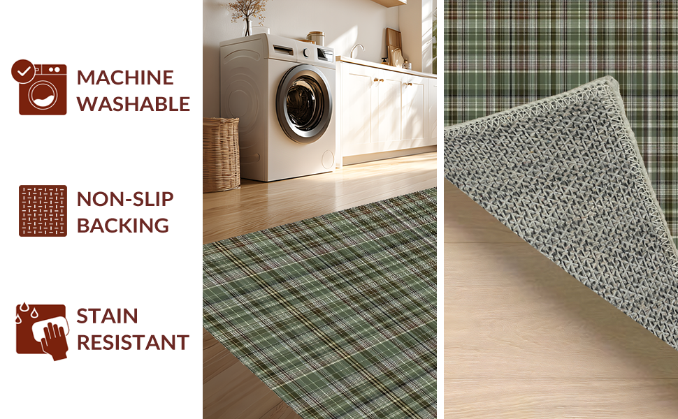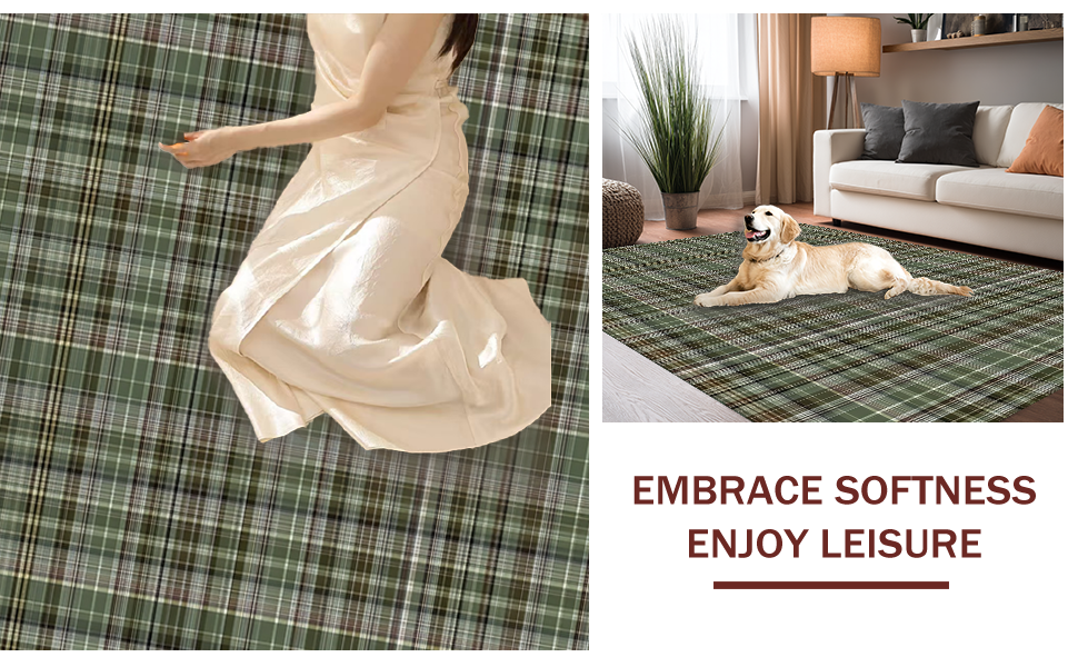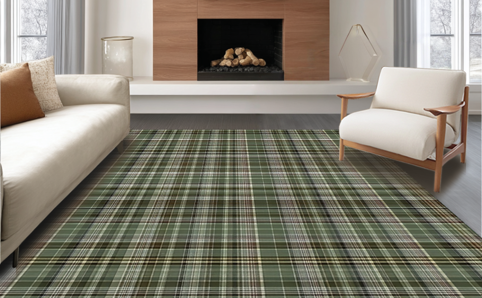 Ultra Soft Area Rug, Non Slip, Stain Resistant, Washable Area Rugs for Living Room, Bedroom, Rustic Olive Plaid Aesthetic(Green) Overview: