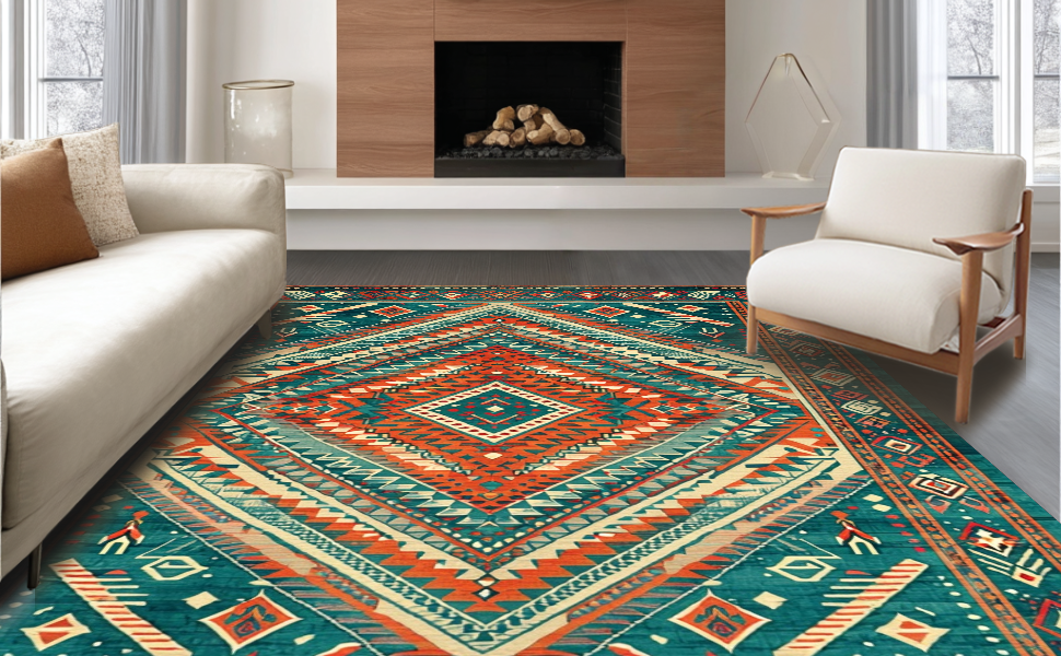 Ultra Soft Area Rug, Non Slip, Stain Resistant, Washable Area Rugs for Living Room, Bedroom, Rustic Patterned Elegance Statement(Blue) Overview: