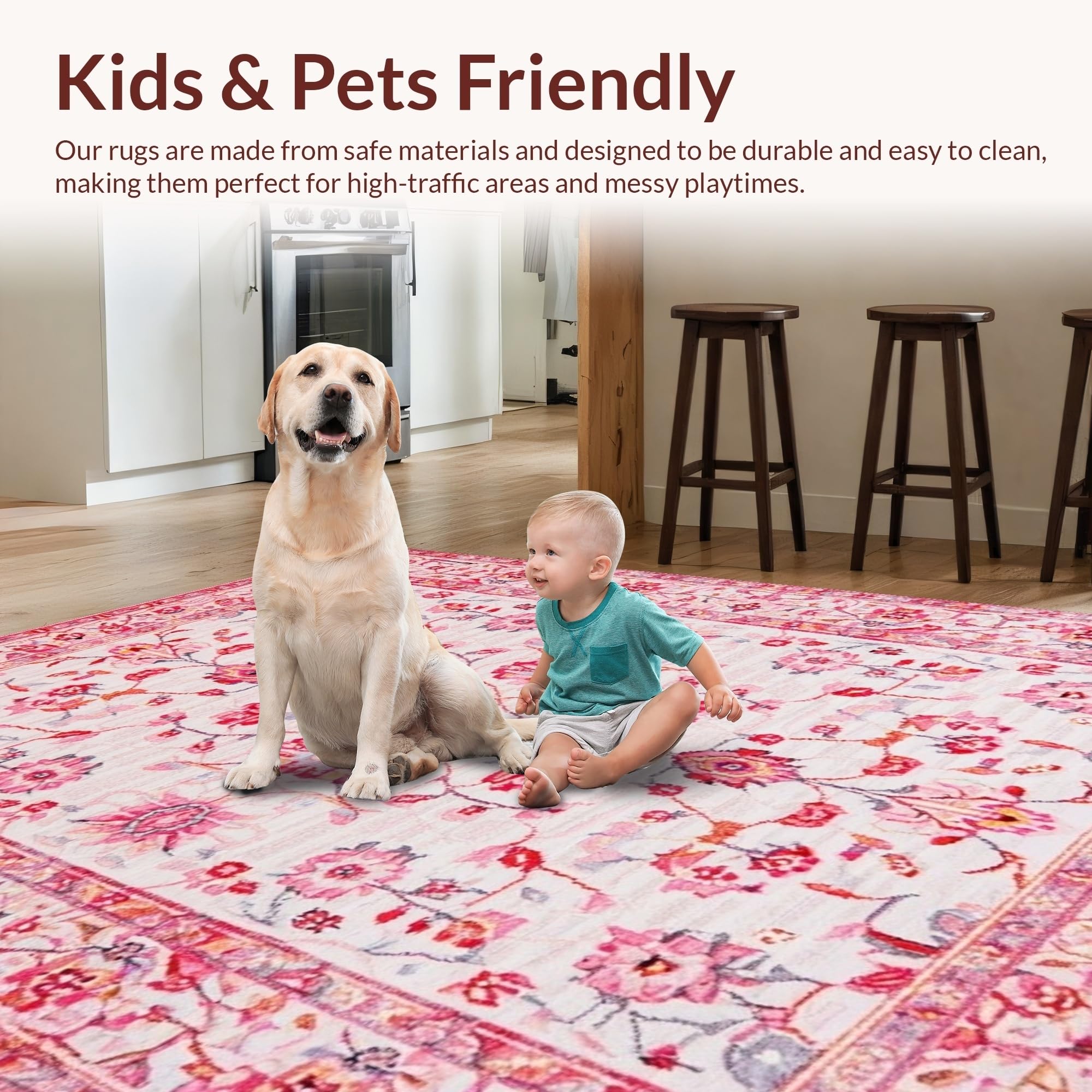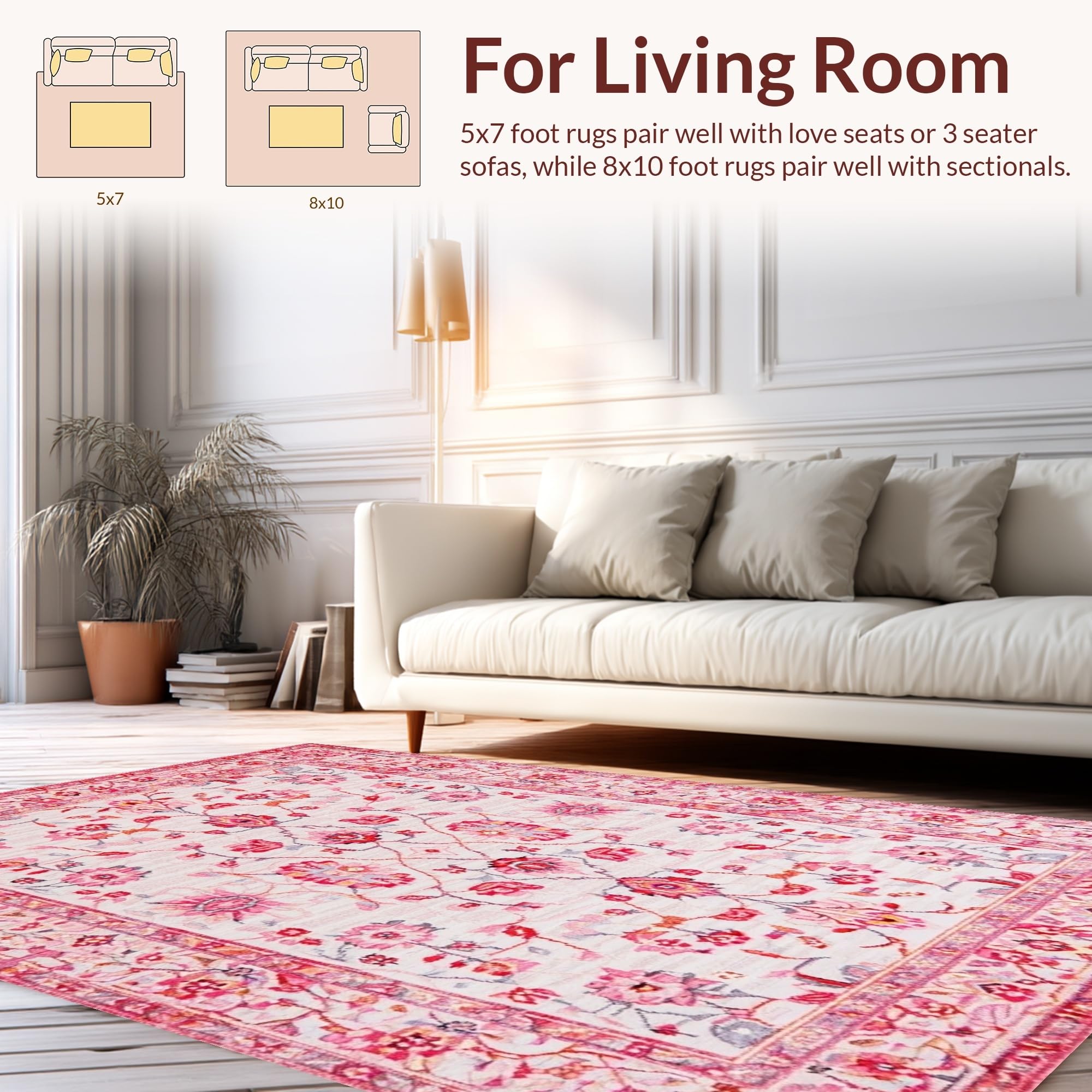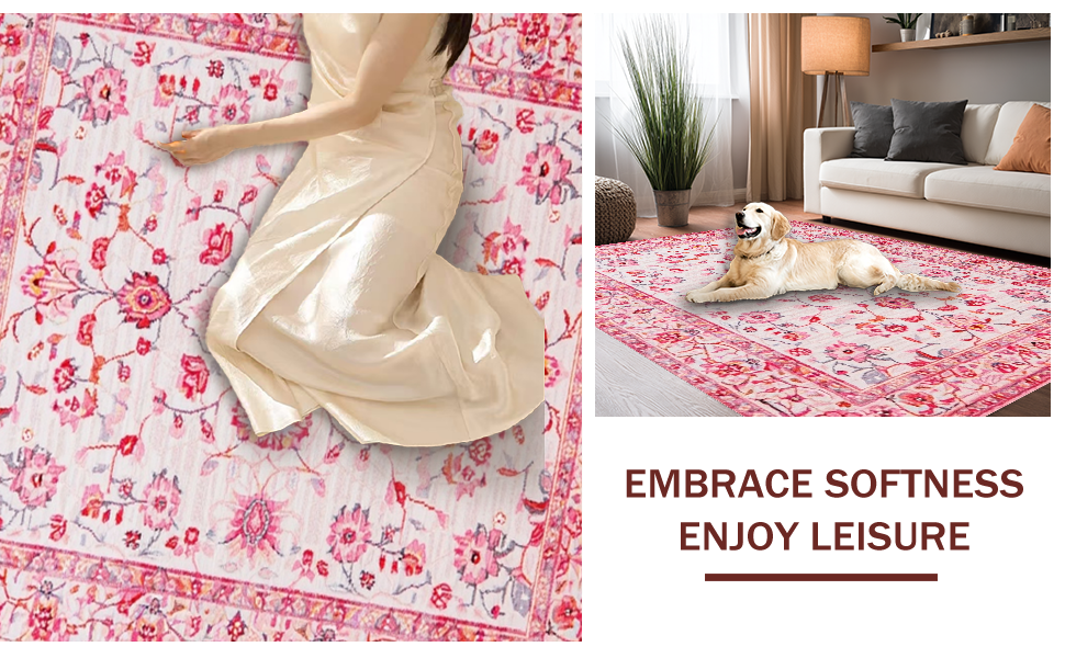 Ultra Soft Area Rug, Non Slip, Stain Resistant, Washable Area Rugs for Living Room, Bedroom, Rustic Pink Botanical Artistry(Pink) Overview: