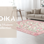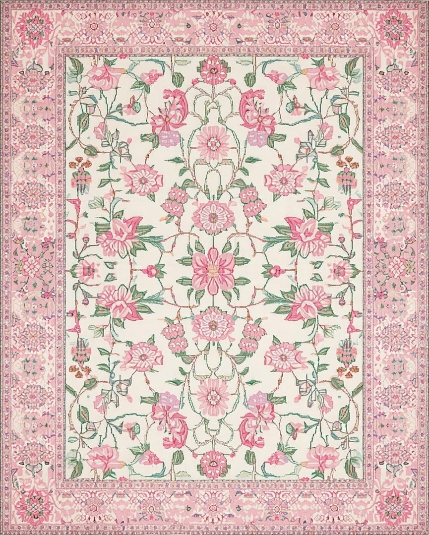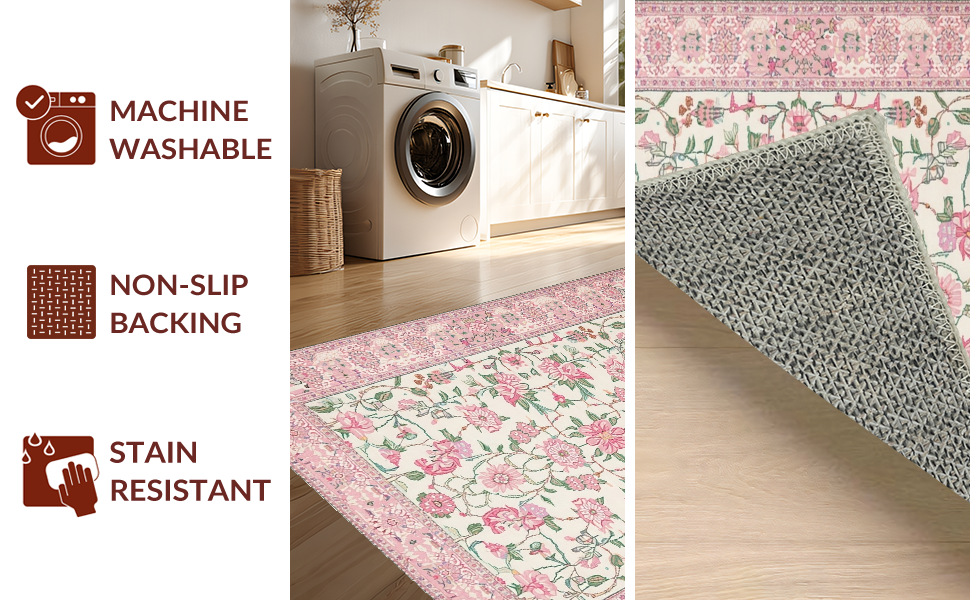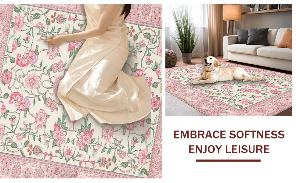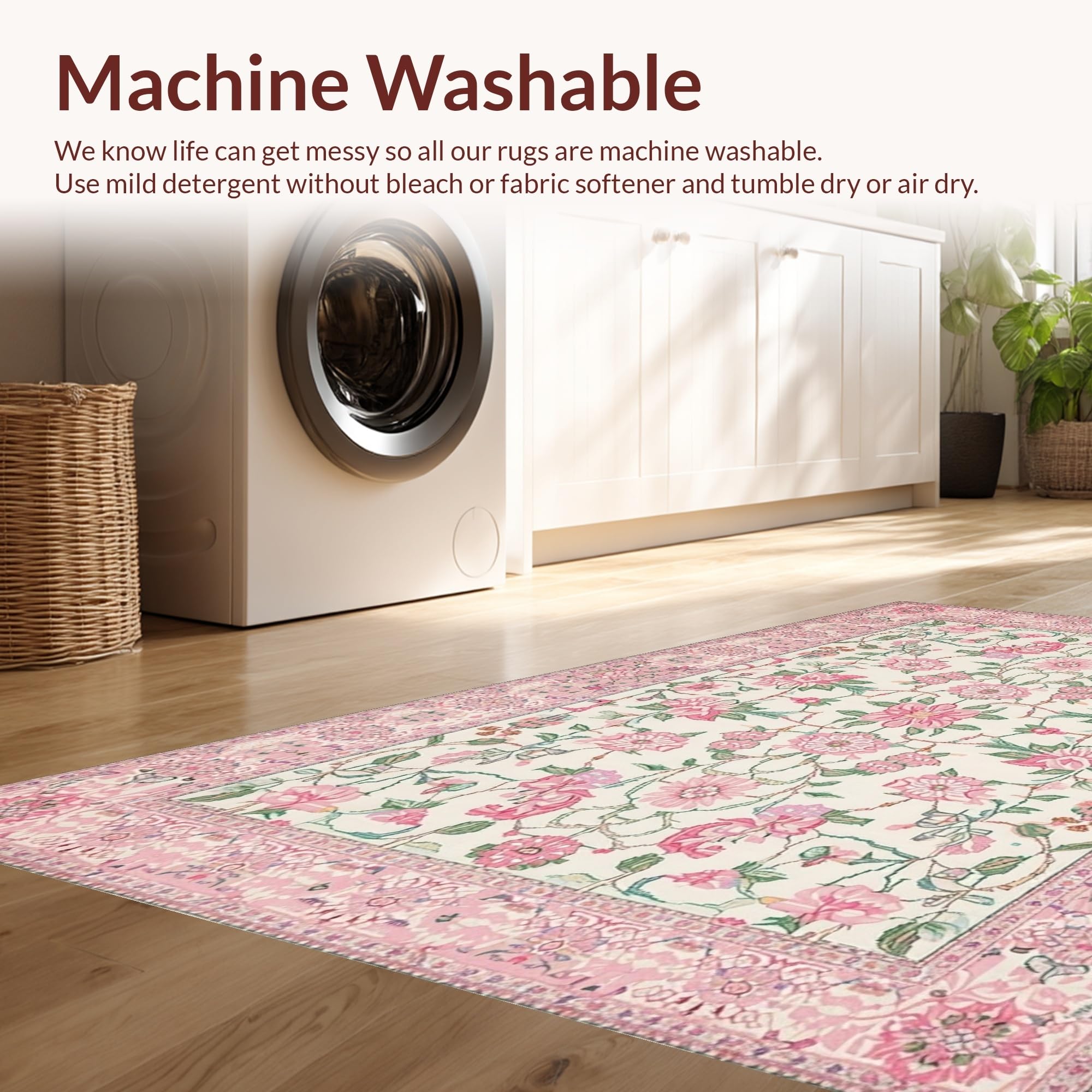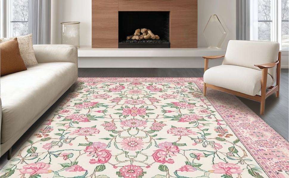 Ultra Soft Area Rug, Non Slip, Stain Resistant, Washable Area Rugs for Living Room, Bedroom, Rustic Pink Botanical Pattern(Ivory) Overview: