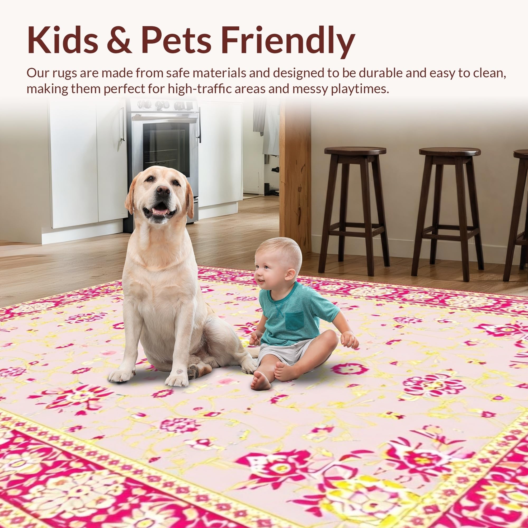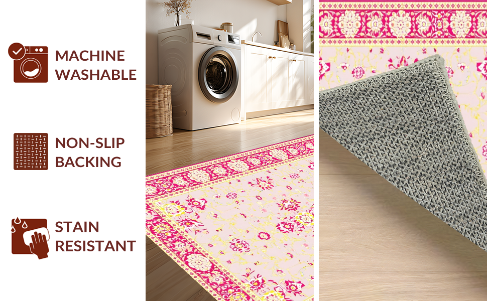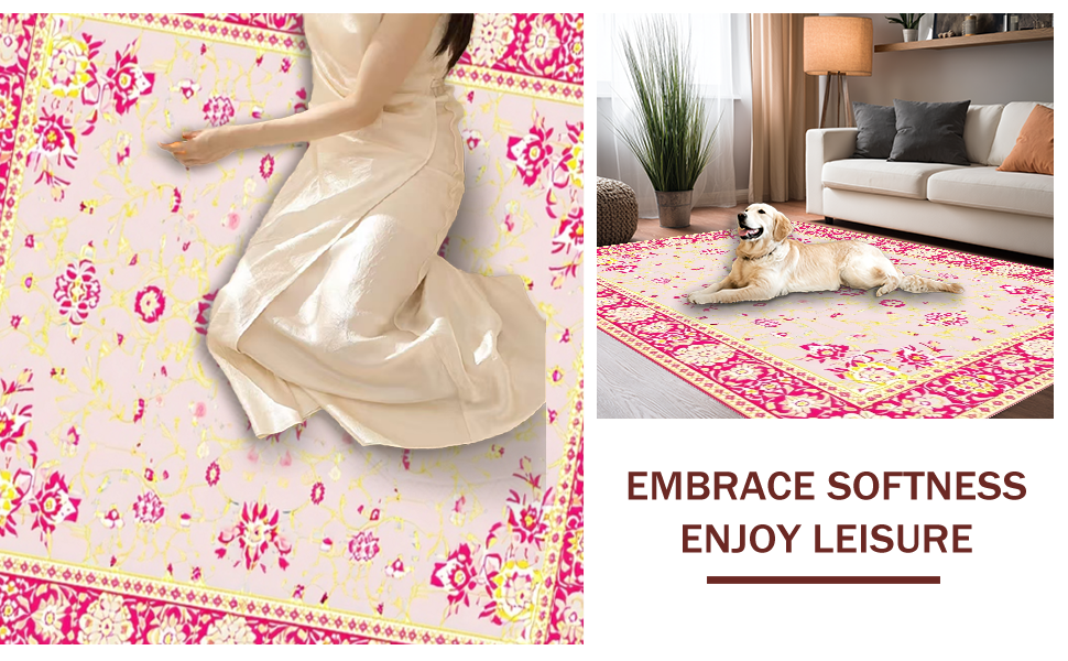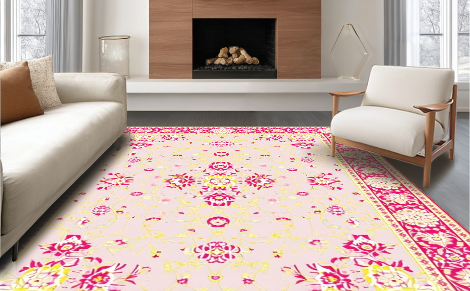Ultra Soft Area Rug, Non Slip, Stain Resistant, Washable Area Rugs for Living Room, Bedroom, Rustic Pink Garden Aesthetic(Pink) Overview: