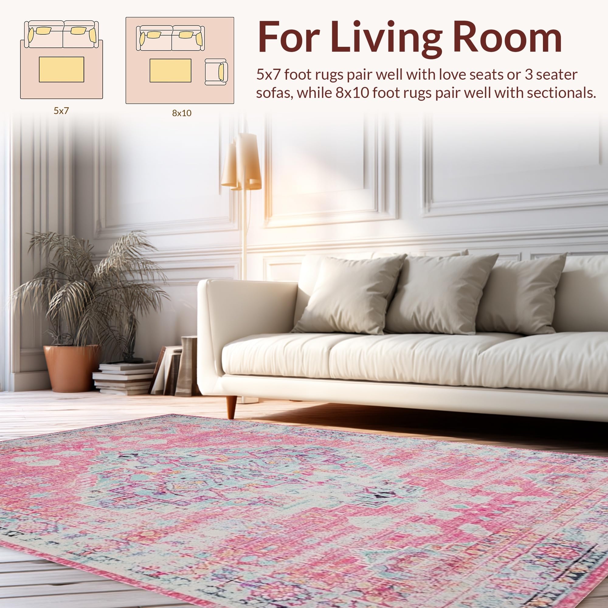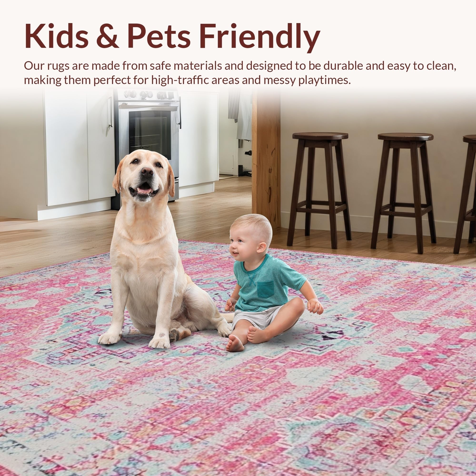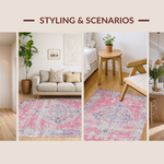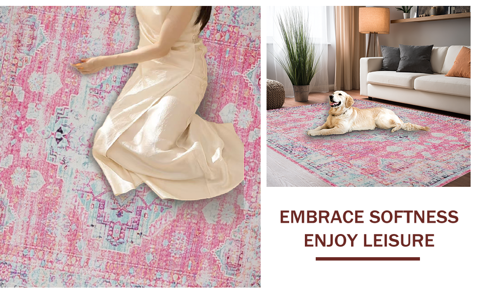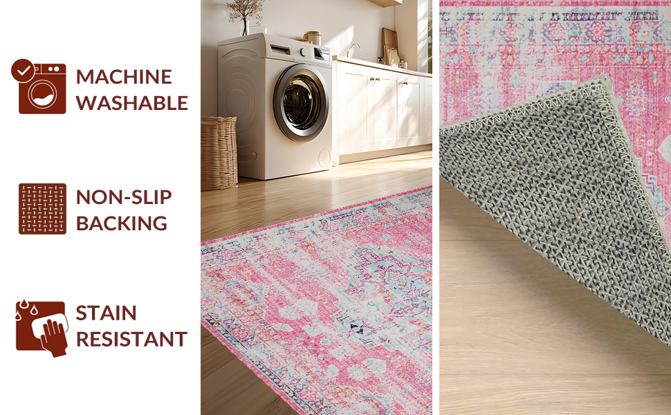 Ultra Soft Area Rug, Non Slip, Stain Resistant, Washable Area Rugs for Living Room, Bedroom, Rustic Pink Trellis Arrangement(Pink) Overview: