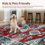 Ultra Soft Area Rug, Non Slip, Stain Resistant, Washable Area Rugs for Living Room, Bedroom, Rustic Red Medallion Design(Red) Overview:
