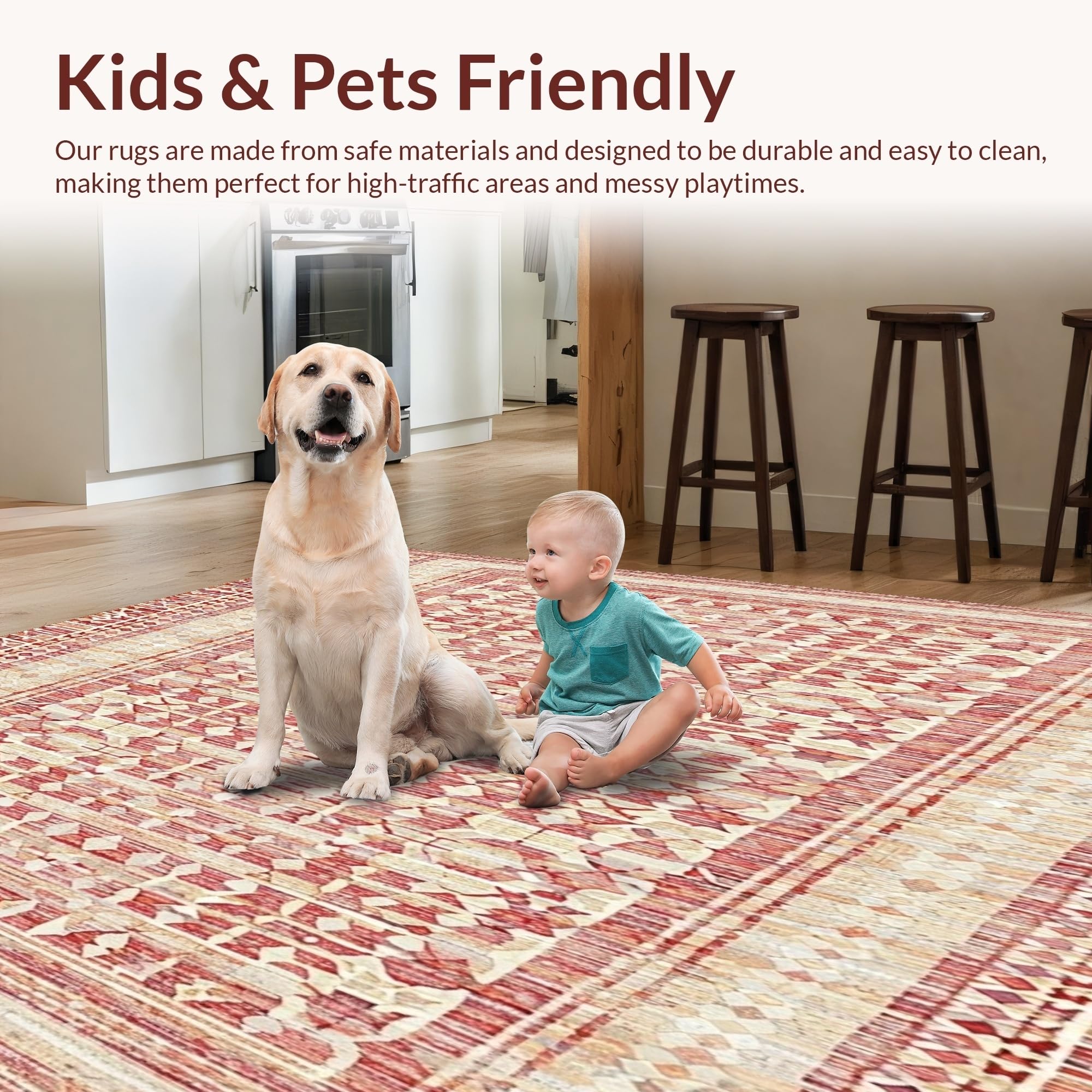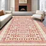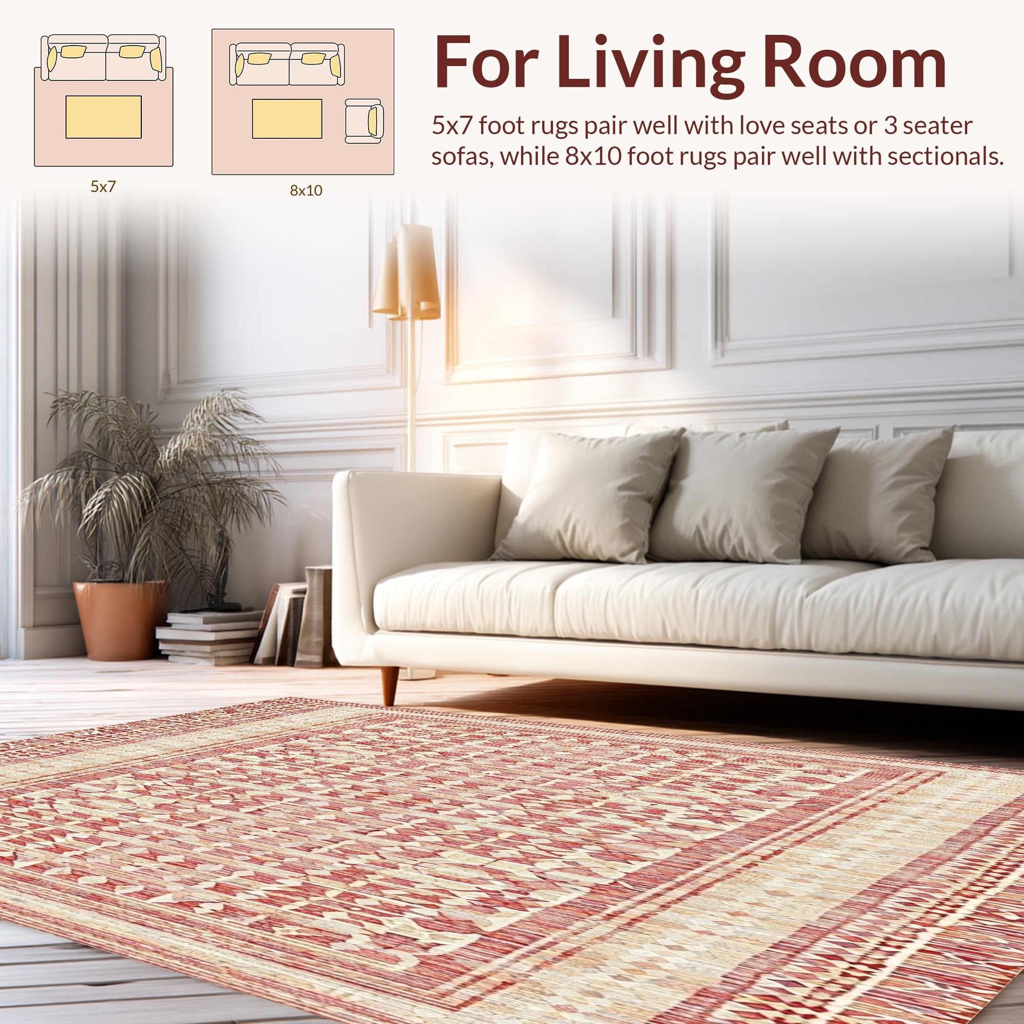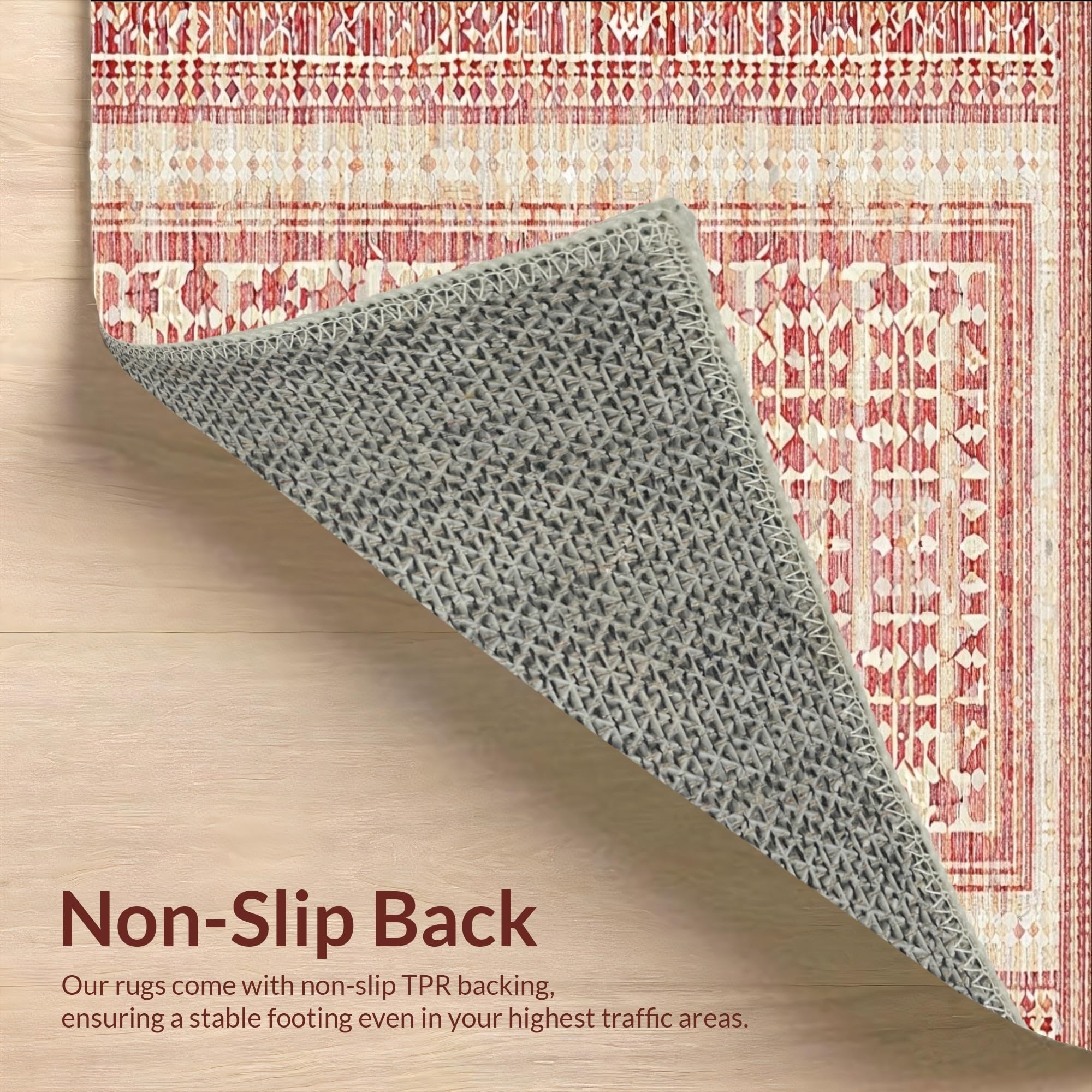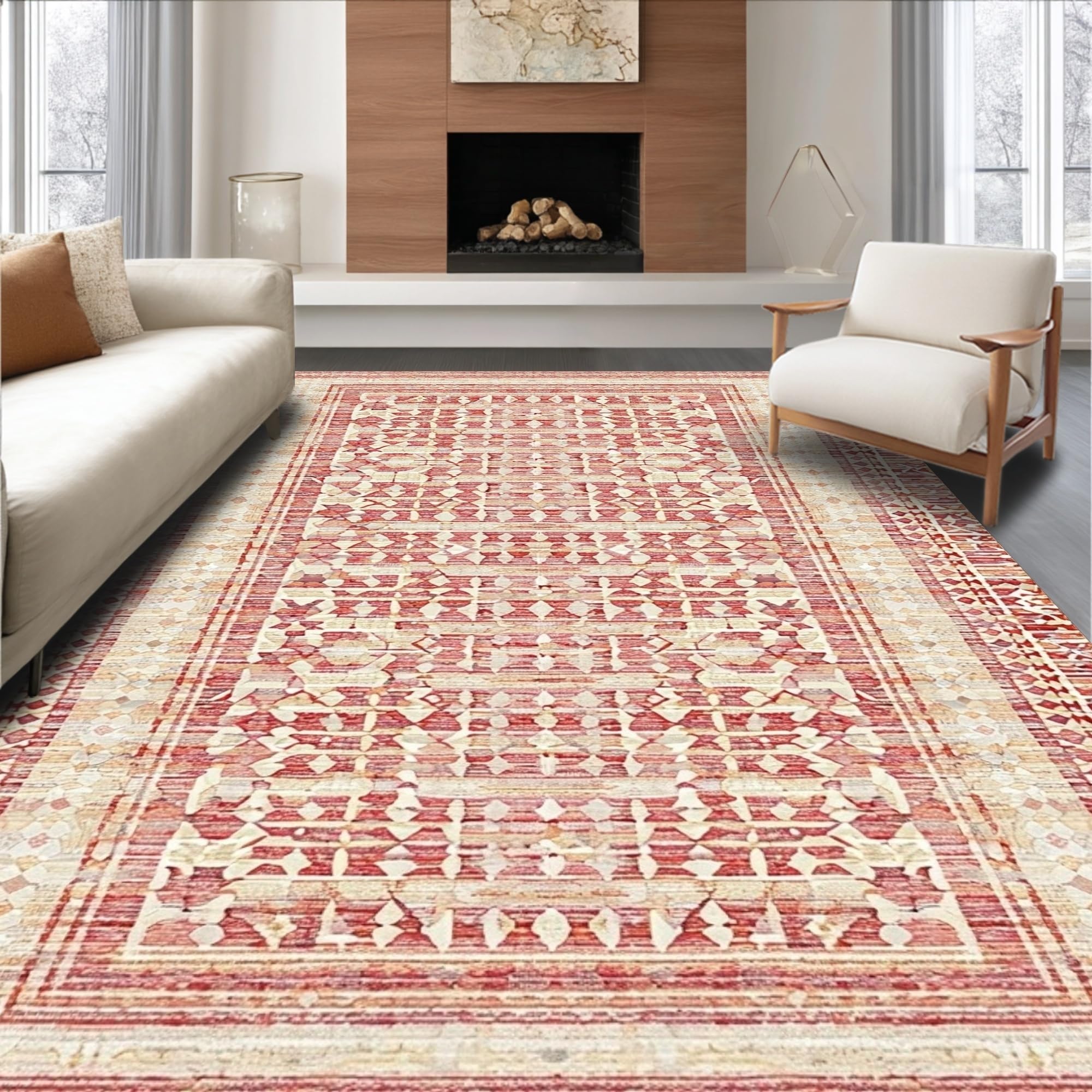 Ultra Soft Area Rug, Non Slip, Stain Resistant, Washable Area Rugs for Living Room, Bedroom, Rustic Red Trellis Area with Boho Charm(Red) Overview: