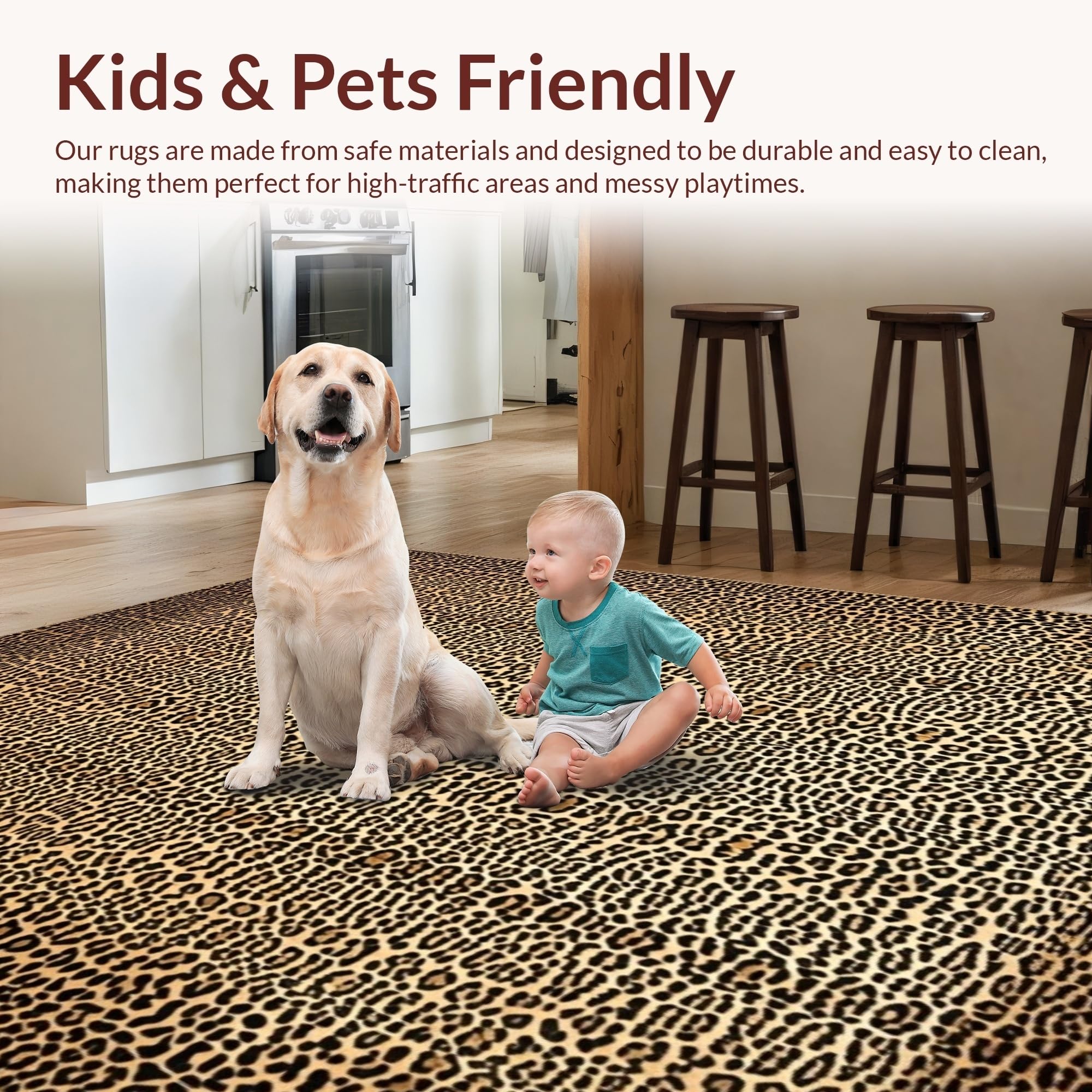 Ultra Soft Area Rug, Non Slip, Stain Resistant, Washable Area Rugs for Living Room, Bedroom, Rustic Safari Inspired Design(Beige) Overview: