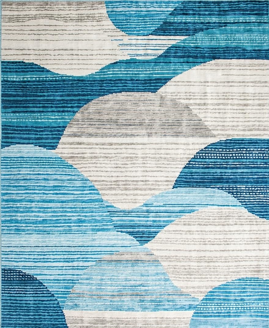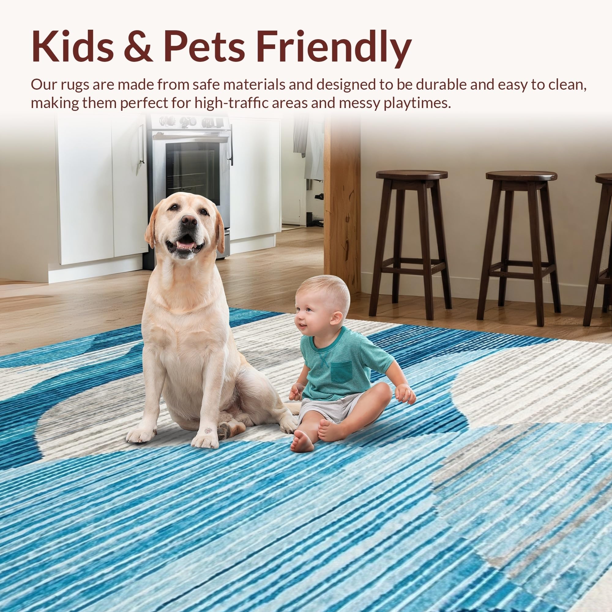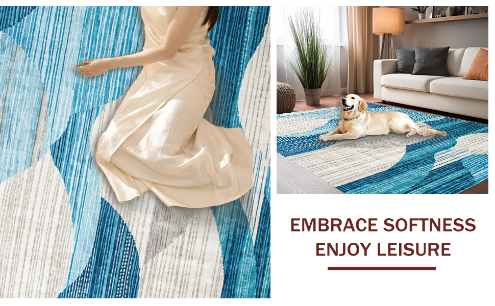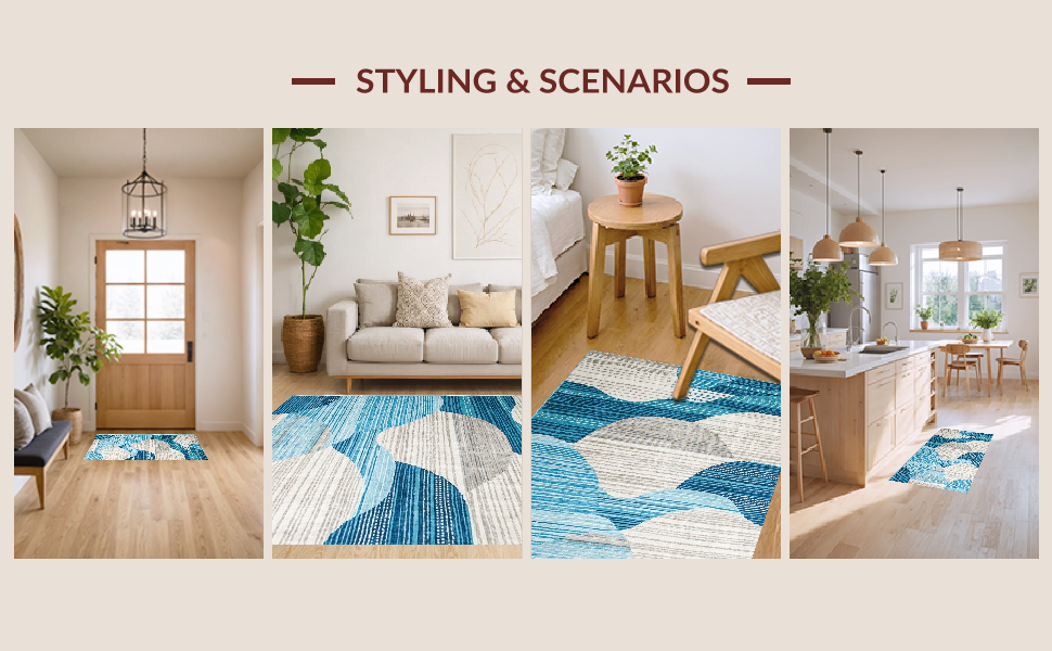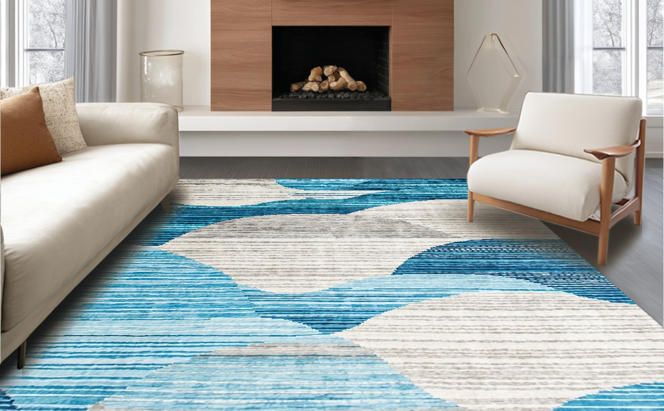 Ultra Soft Area Rug, Non Slip, Stain Resistant, Washable Area Rugs for Living Room, Bedroom, Rustic Scalloped Coastal Charm(Blue) Overview: