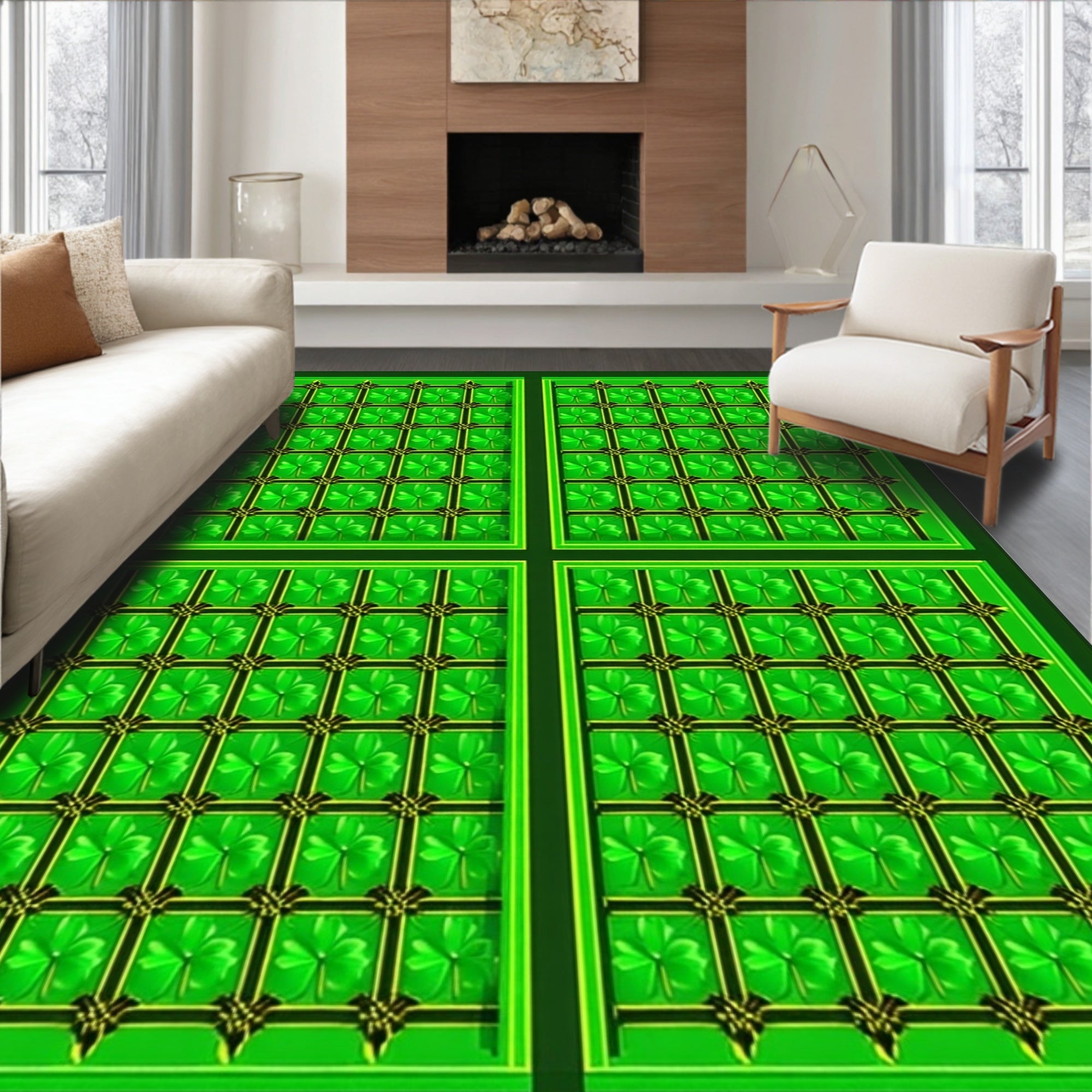 Flatwoven High Traffic Area Rug, Rustic Shamrock Graphic Motif, Non Slip, Stain Resistant, Washable Area Rugs for Living Room, Bedroom (Green) Overview: