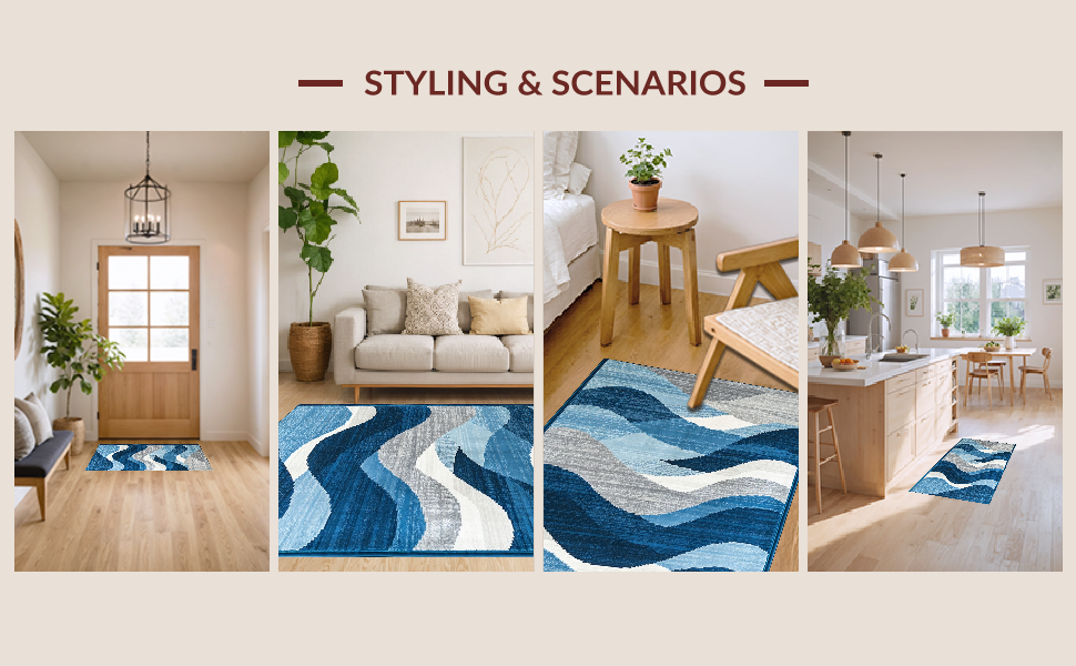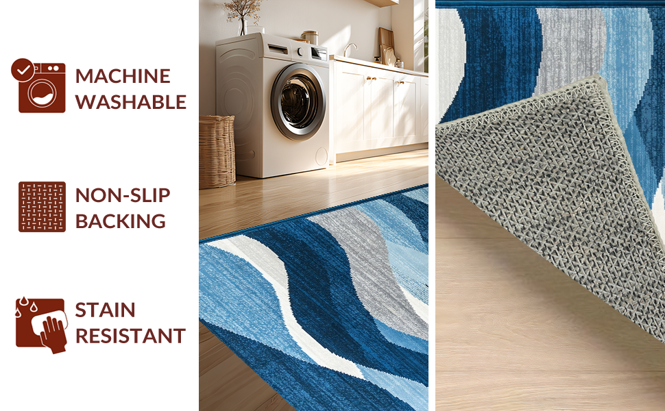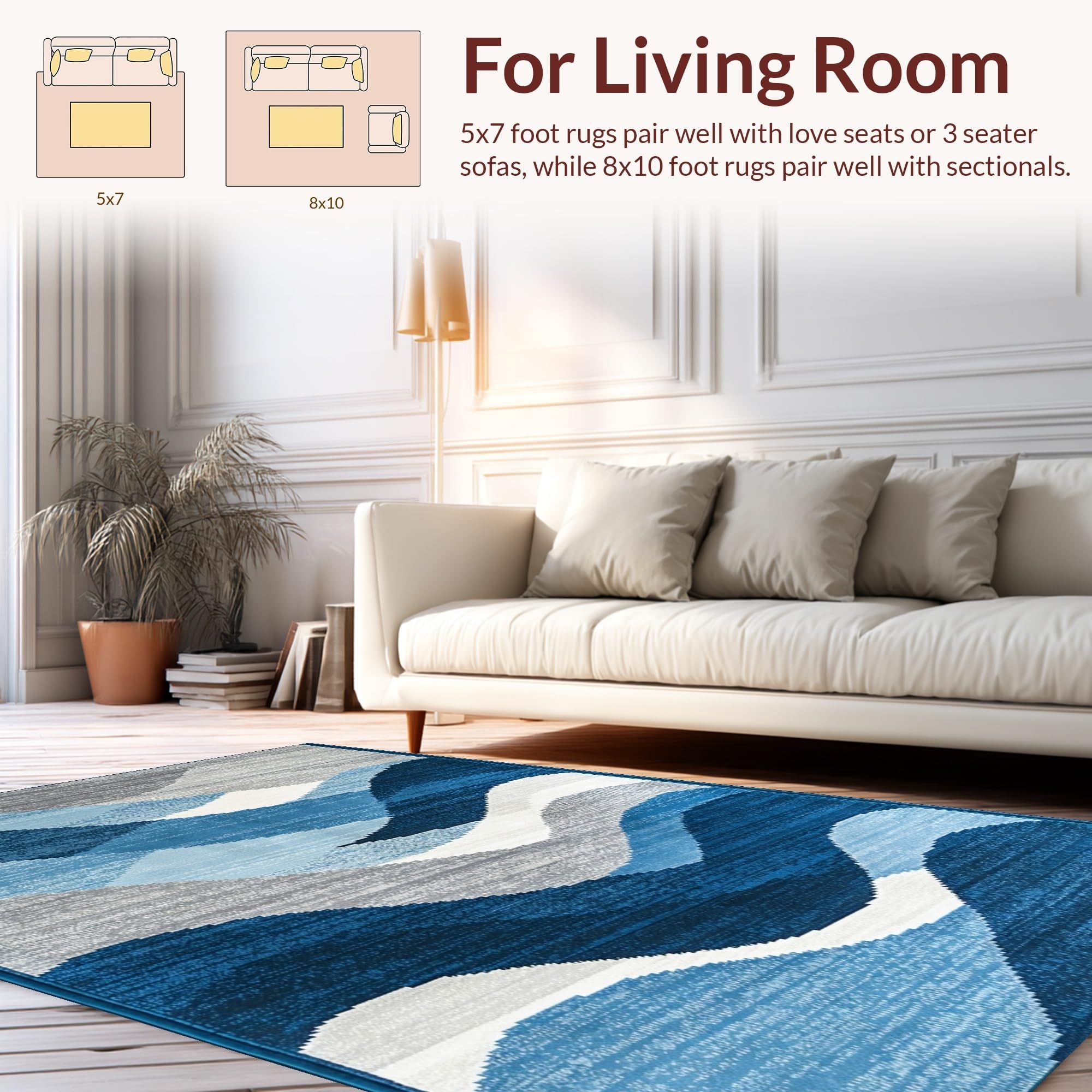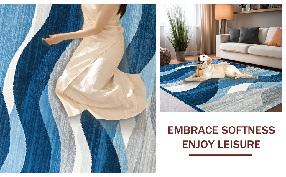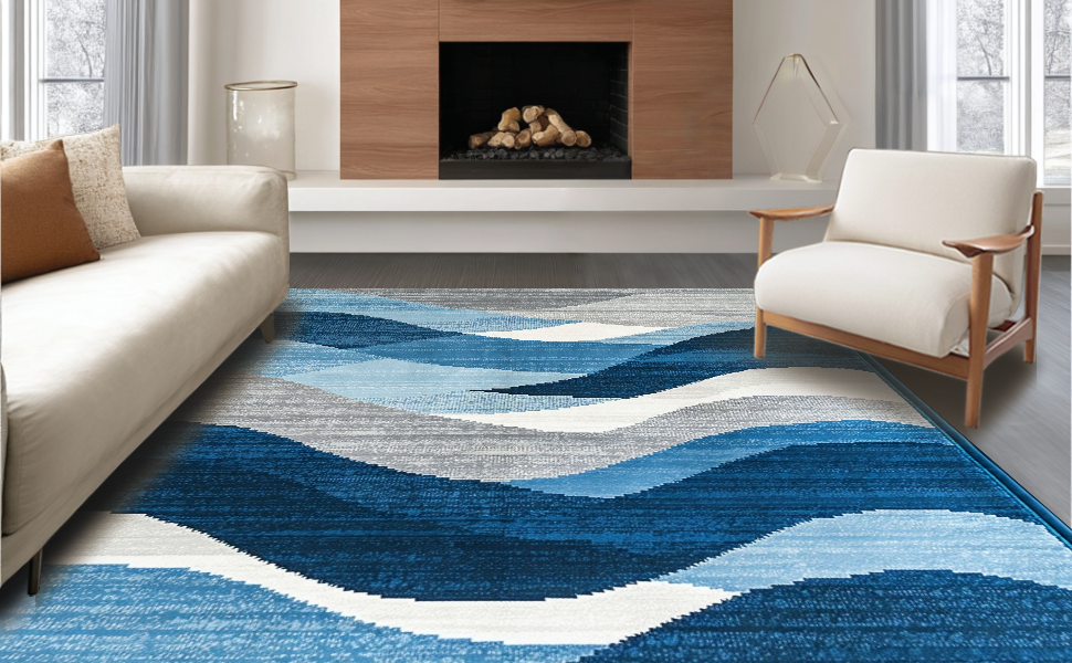 Ultra Soft Area Rug, Non Slip, Stain Resistant, Washable Area Rugs for Living Room, Bedroom, Rustic Soft Color Fusion Design(Blue) Overview: