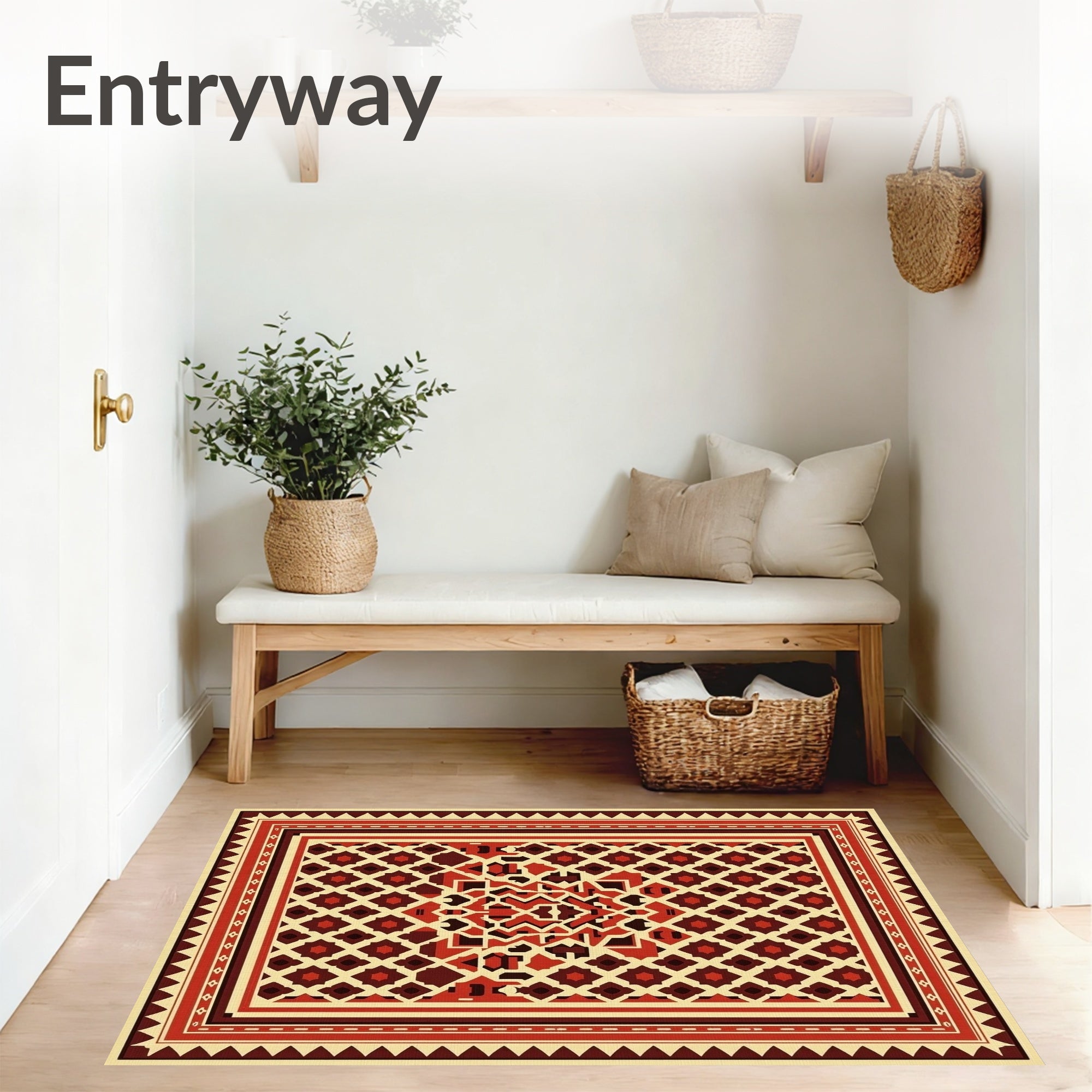 Ultra Soft Area Rug, Non Slip, Stain Resistant, Washable Area Rugs for Living Room, Bedroom, Rustic Southwestern Lattice Handwoven Artisan(Brown) Overview: