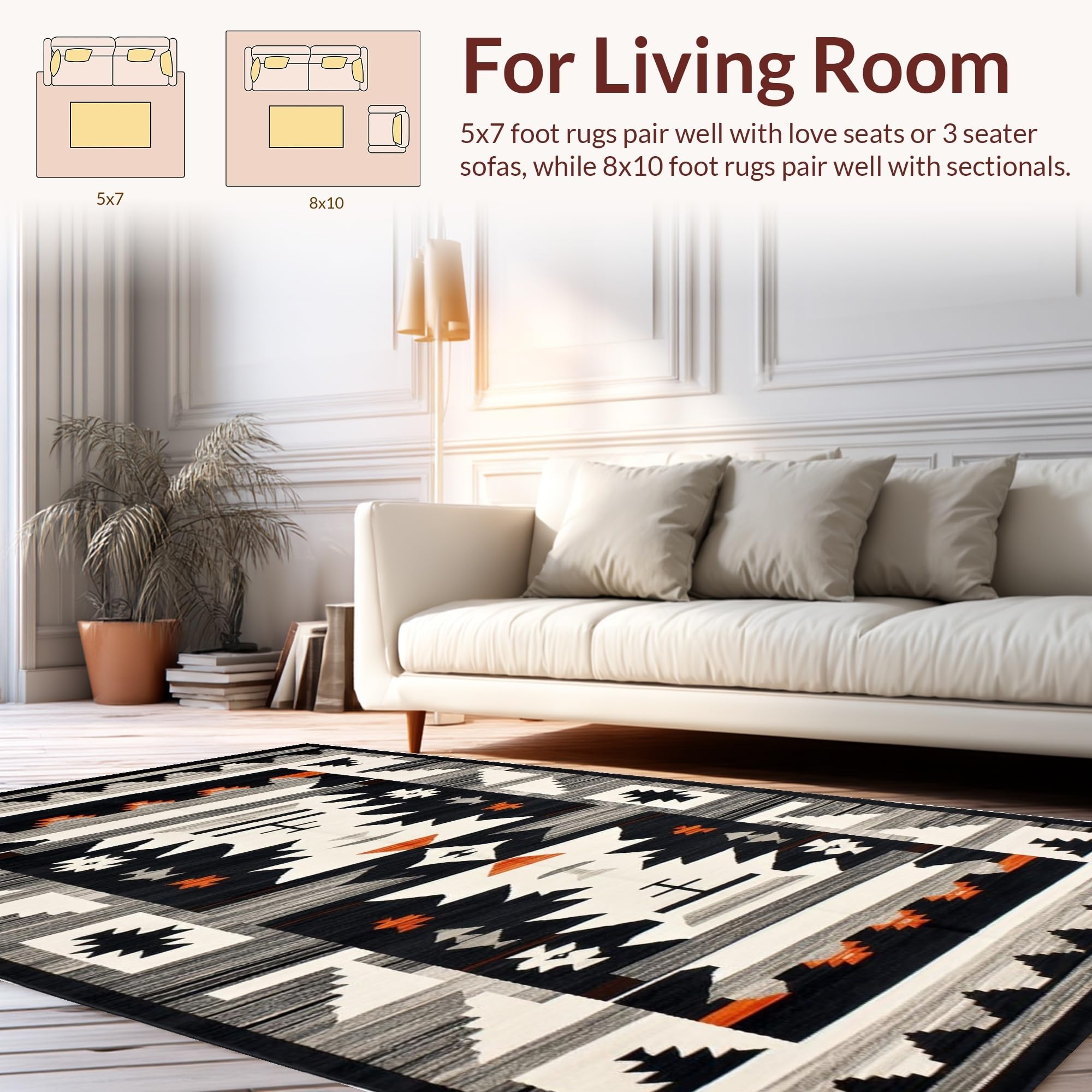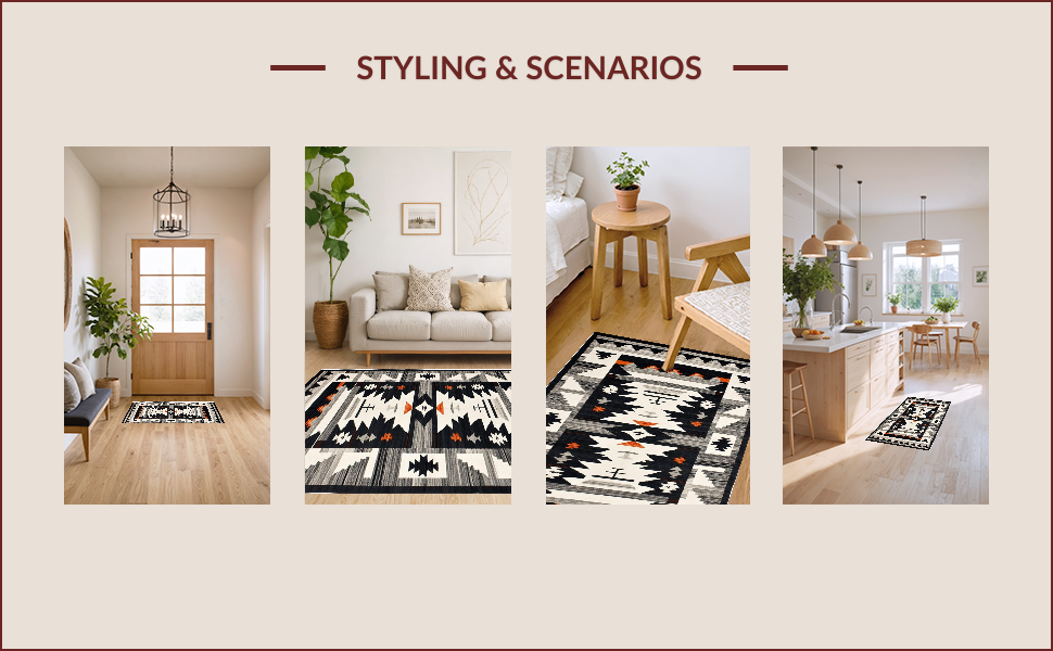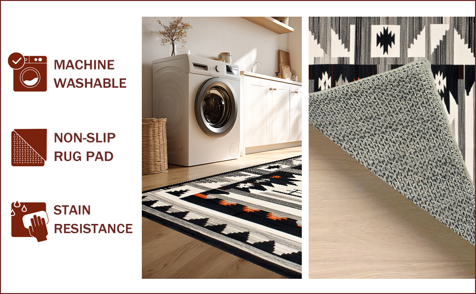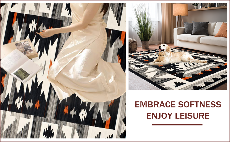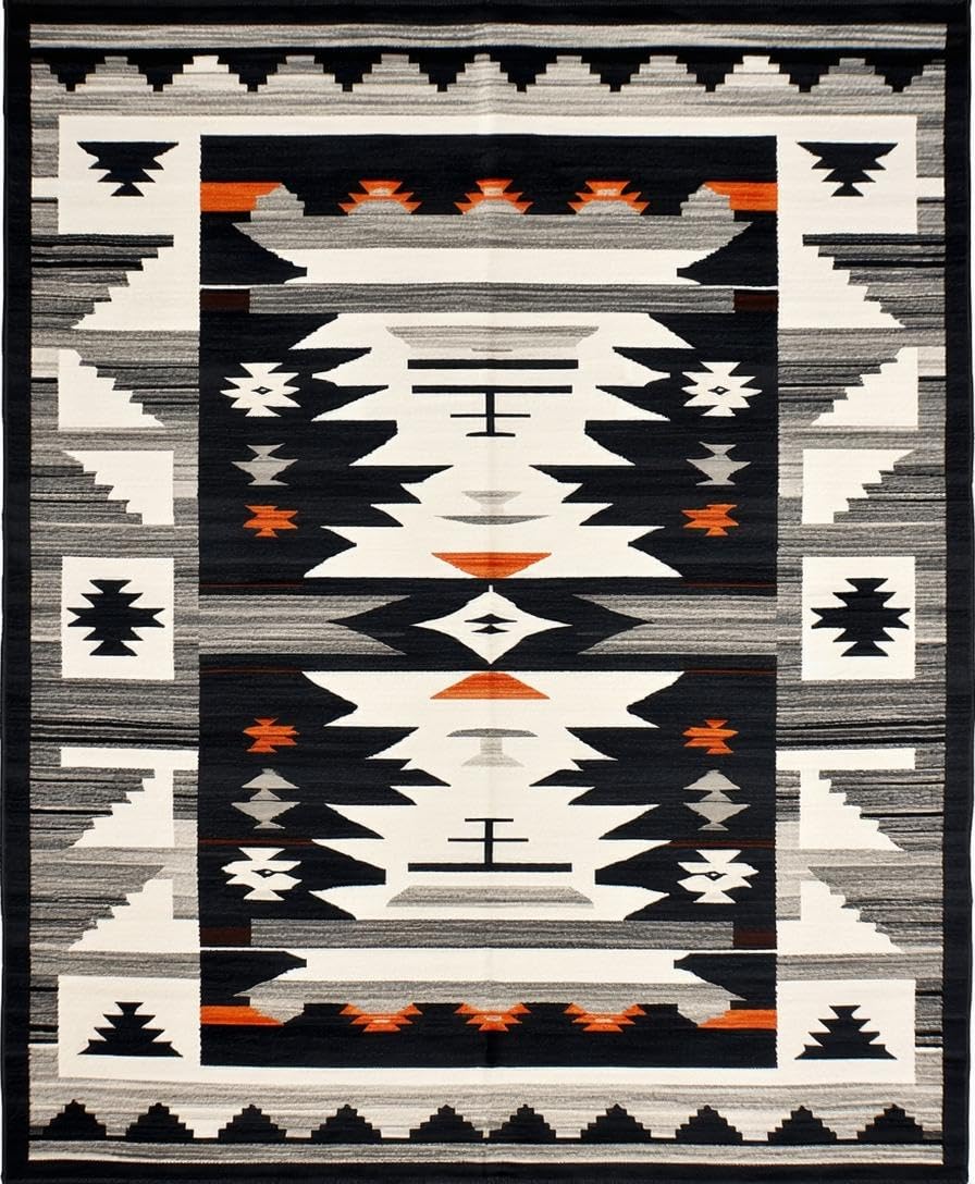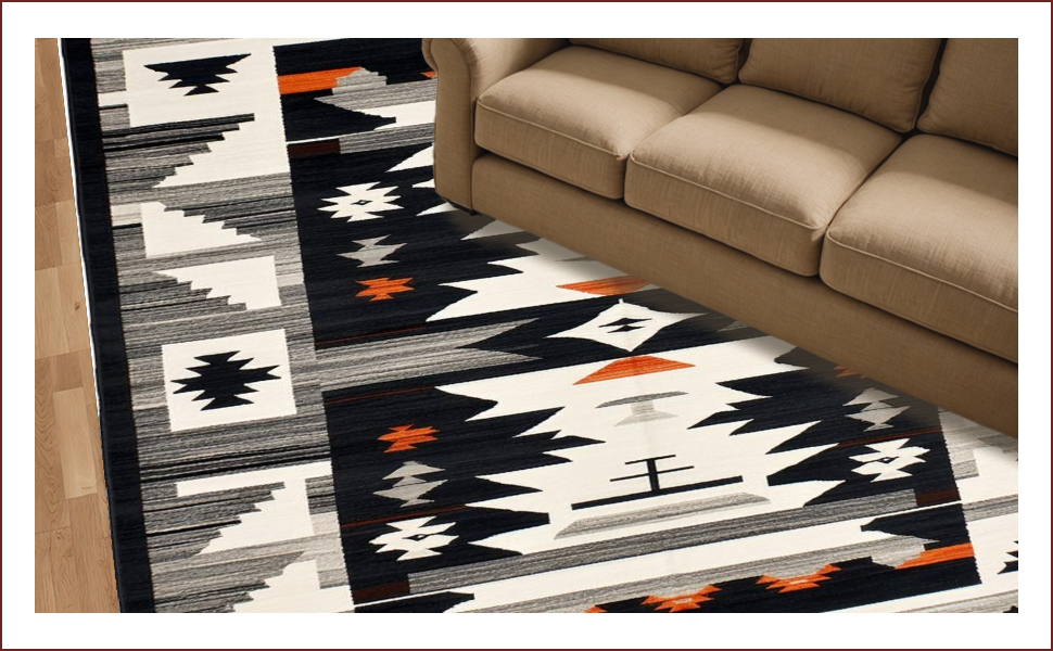 Ultra Soft Area Rug, Non Slip, Stain Resistant, Washable Area Rugs for Living Room, Bedroom, Rustic Southwestern Motif with Depth(Black) Overview: