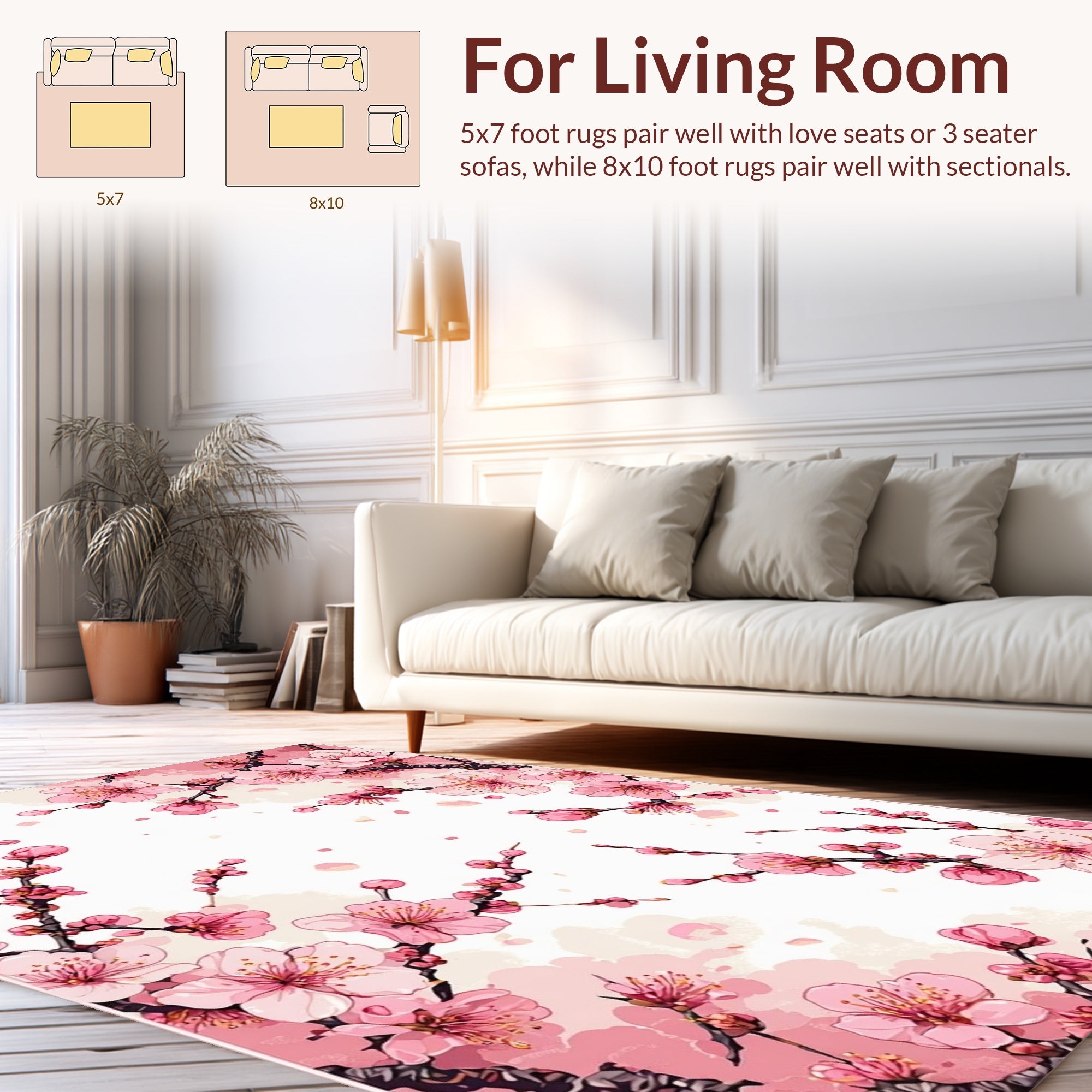 Flatwoven High Traffic Area Rug, Rustic Springtime Floral Charm, Non Slip, Stain Resistant, Washable Area Rugs for Living Room, Bedroom (Pink) Overview:
