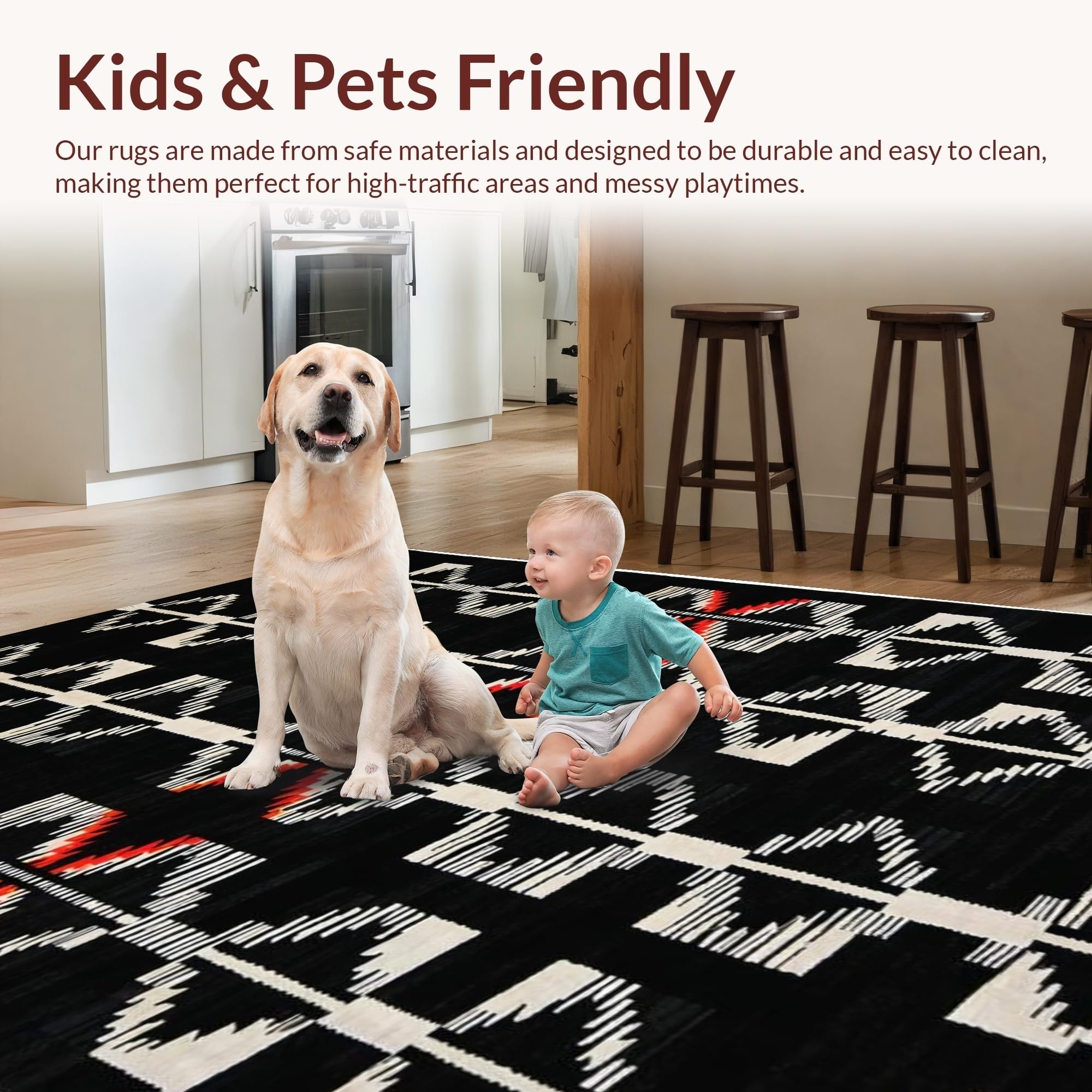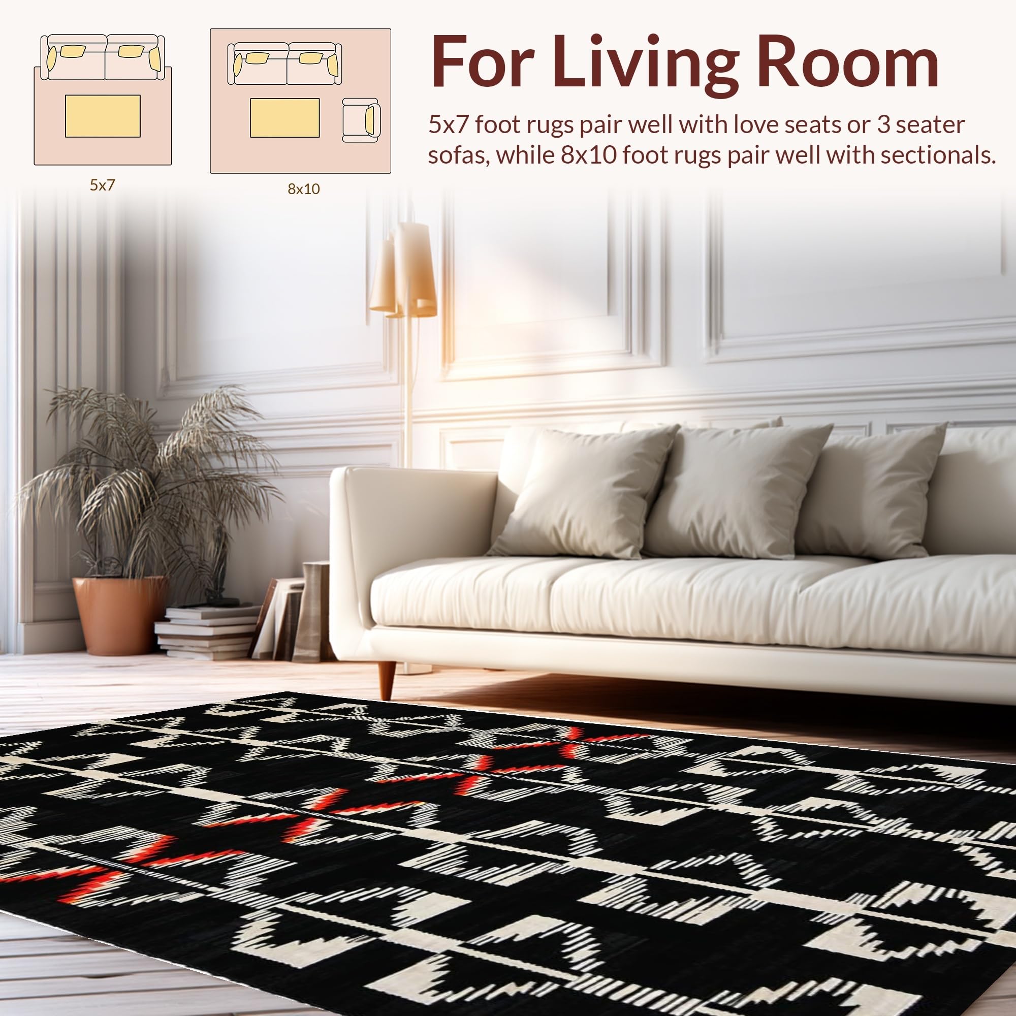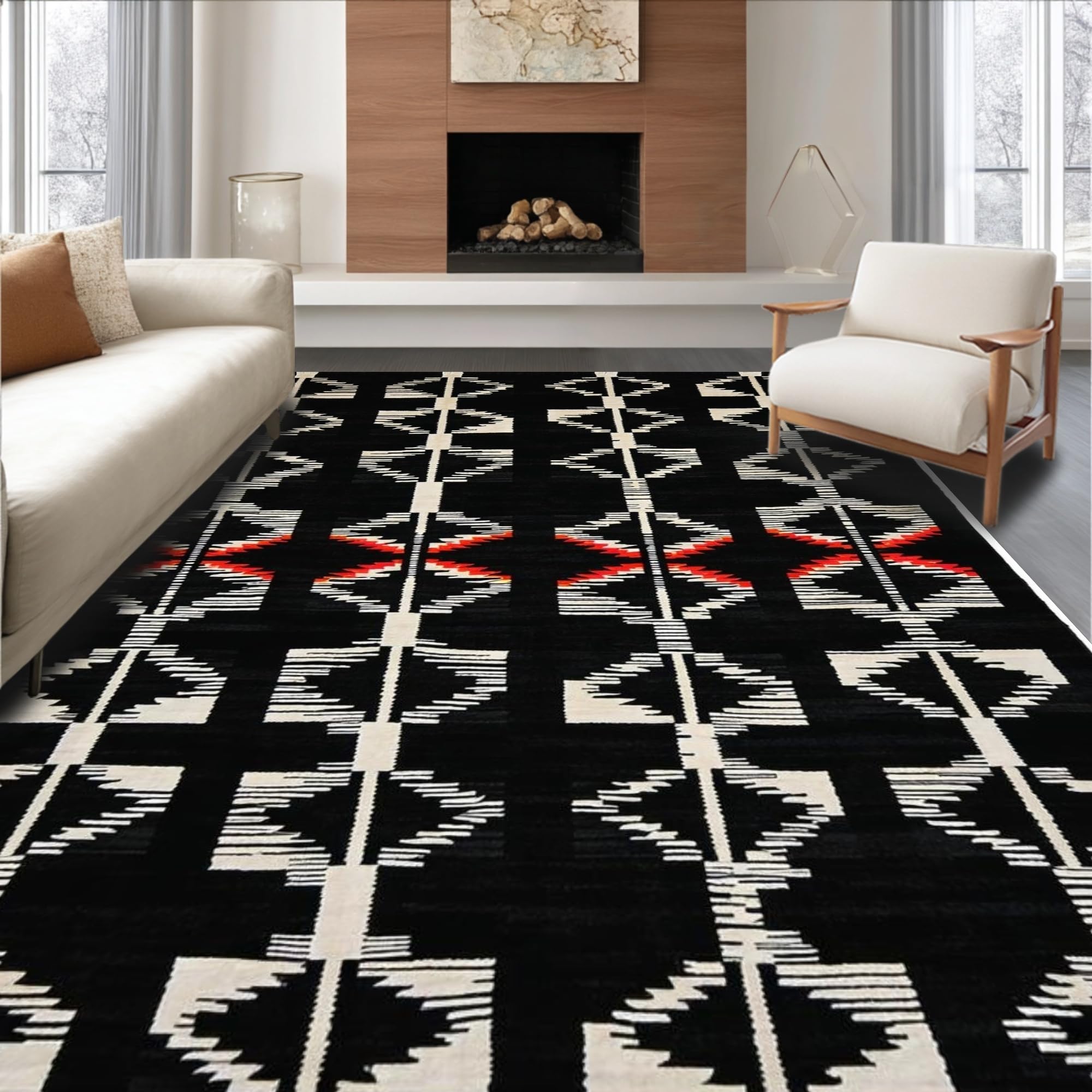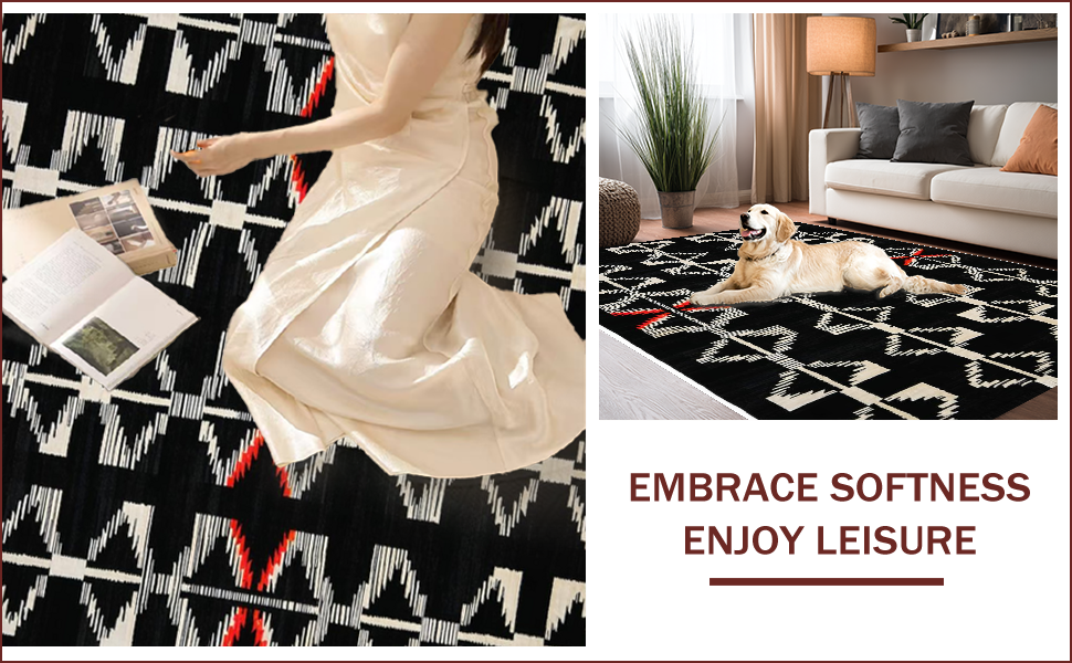 Ultra Soft Area Rug, Non Slip, Stain Resistant, Washable Area Rugs for Living Room, Bedroom, Rustic Textured Zebra Inspiration(Black) Overview: