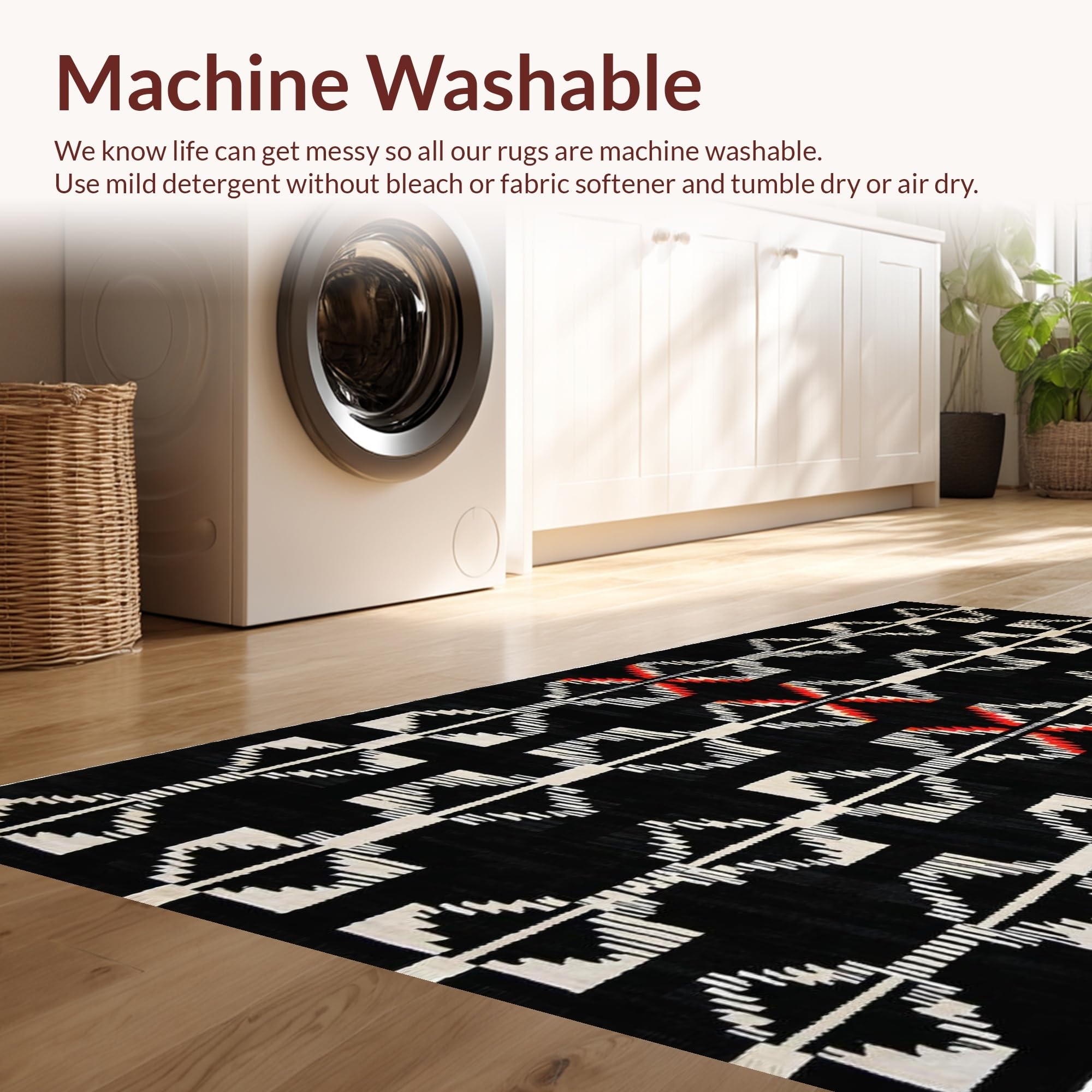 - Machine Washable: Our rugs can be easily thrown in the wash machine.