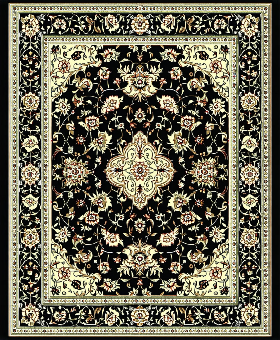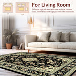 Flatwoven High Traffic Area Rug, Rustic Traditional Tiled Motif, Non Slip, Stain Resistant, Washable Area Rugs for Living Room, Bedroom (Black) Overview: