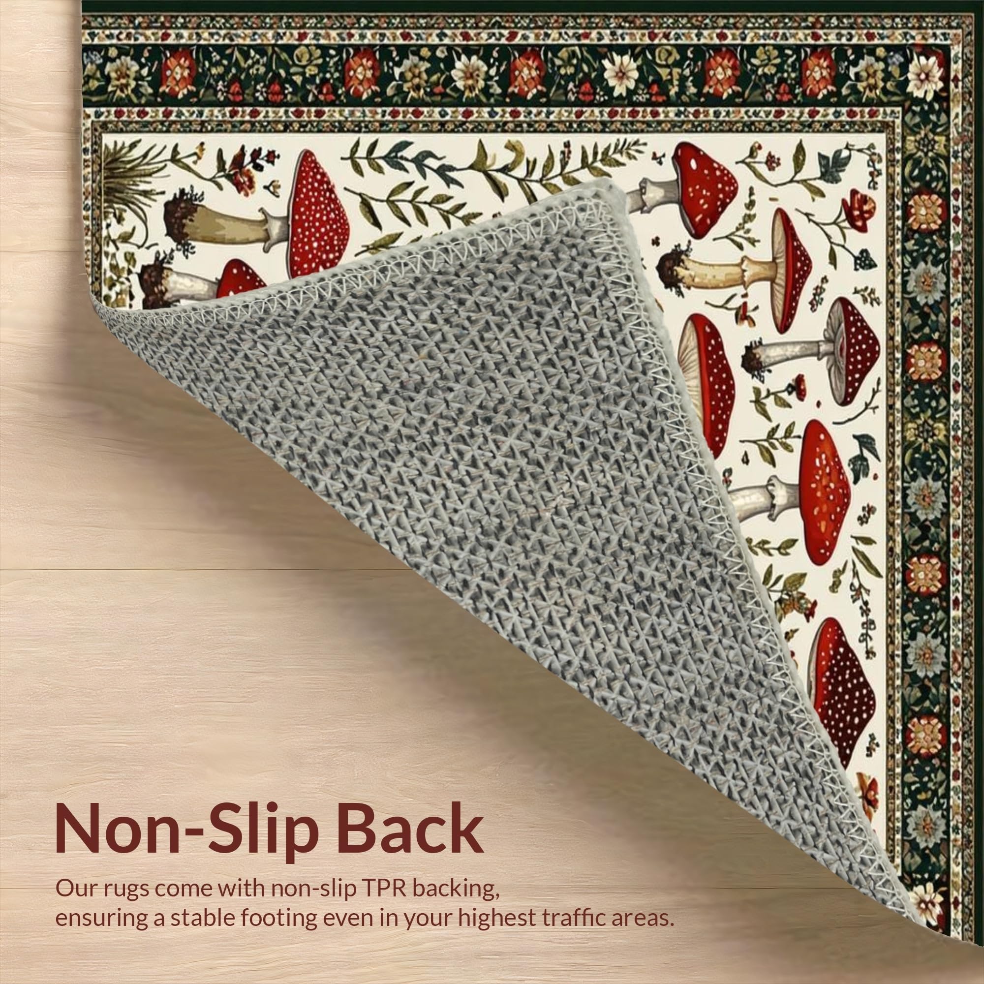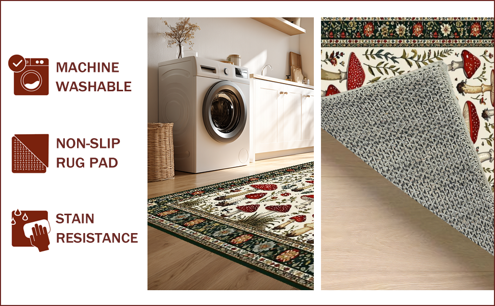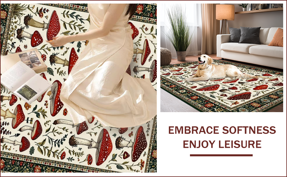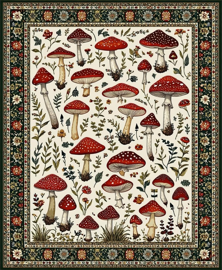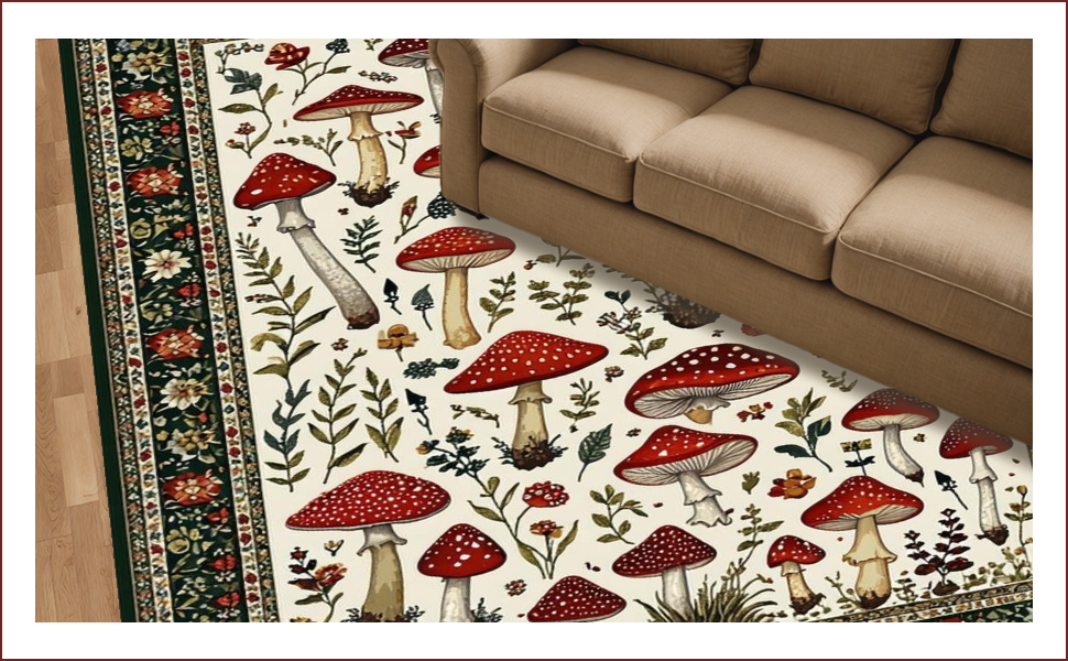 Ultra Soft Area Rug, Non Slip, Stain Resistant, Washable Area Rugs for Living Room, Bedroom, Rustic Vibrant Fungi Pattern(Red) Overview: