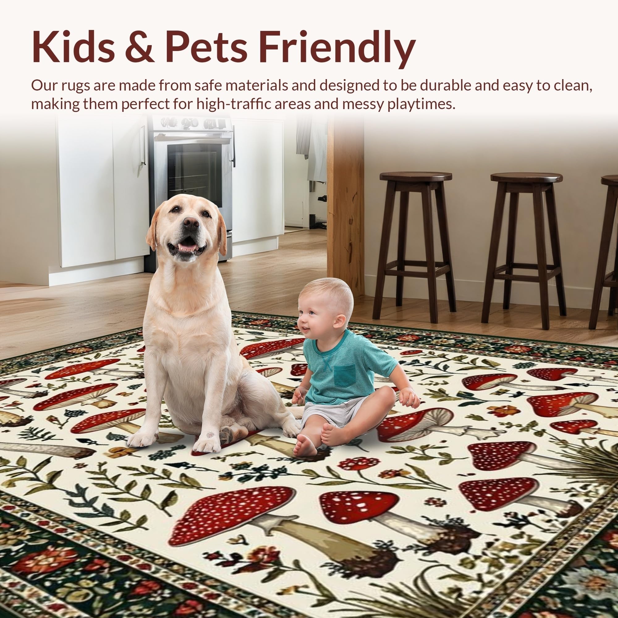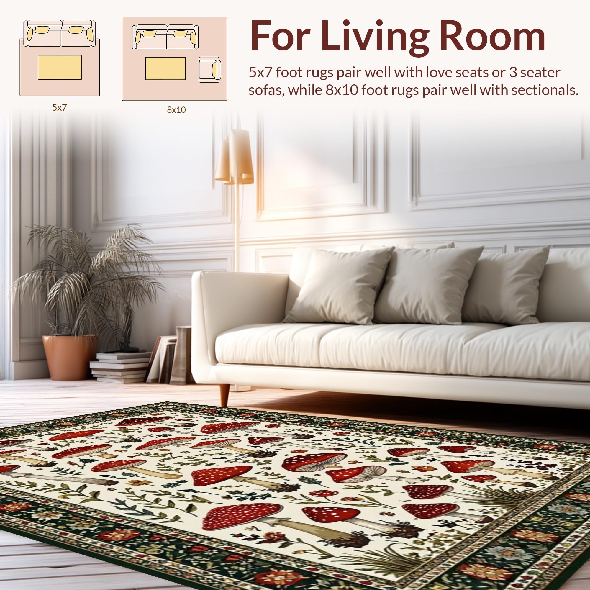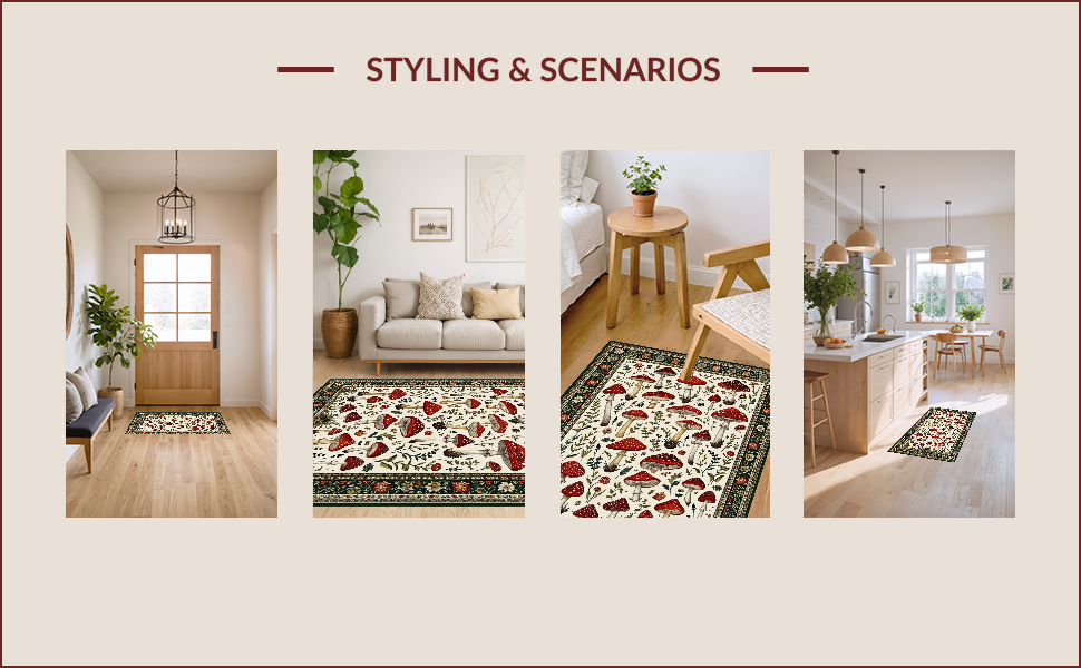 Ultra Soft Area Rug, Non Slip, Stain Resistant, Washable Area Rugs for Living Room, Bedroom, Rustic Vibrant Fungi Pattern(Red) Overview: