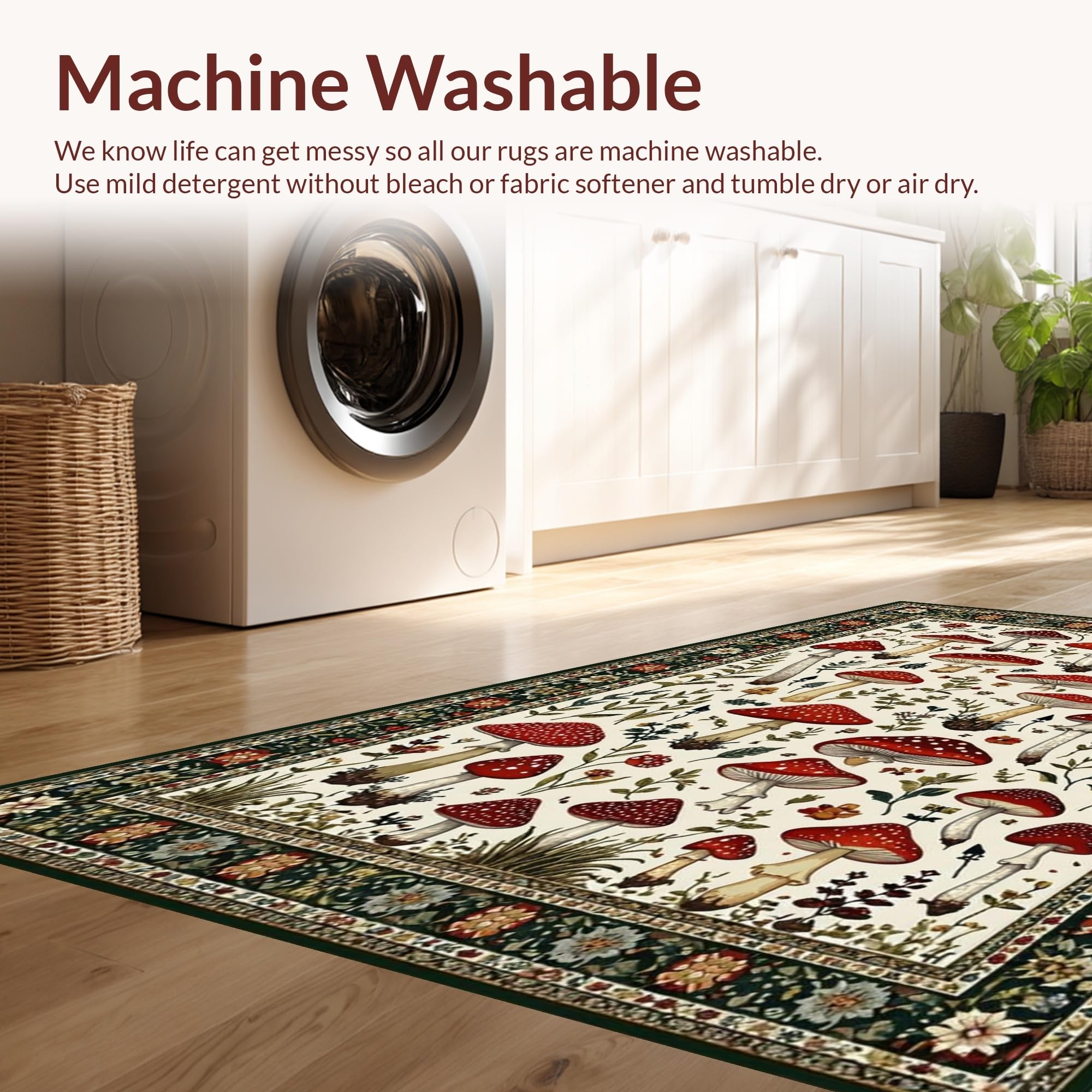 - Machine Washable: Our rugs can be easily thrown in the wash machine.