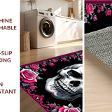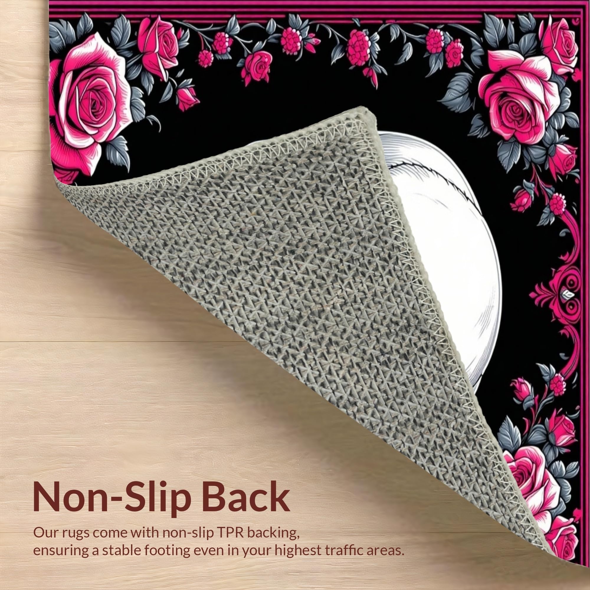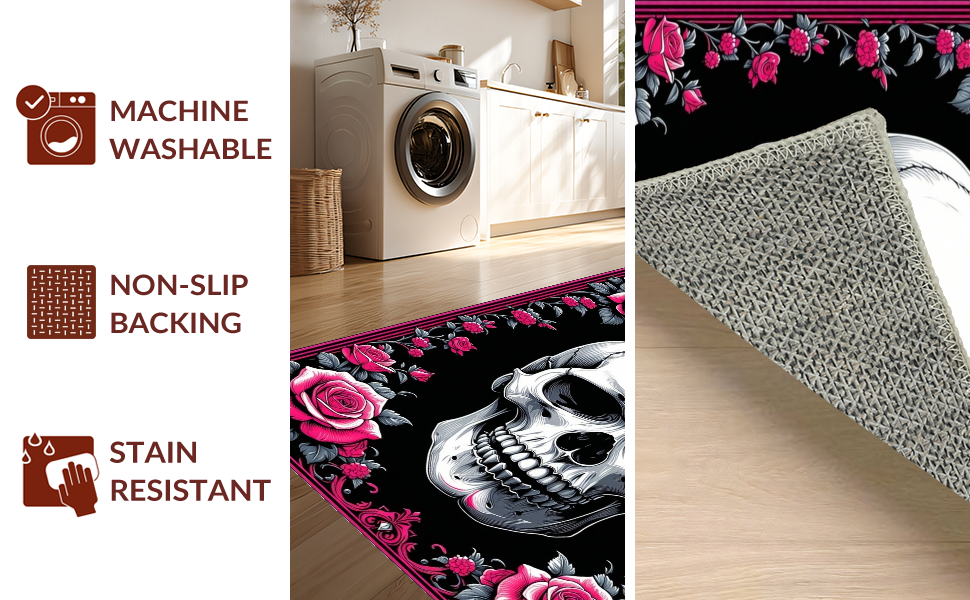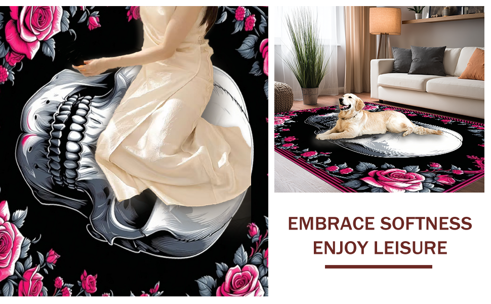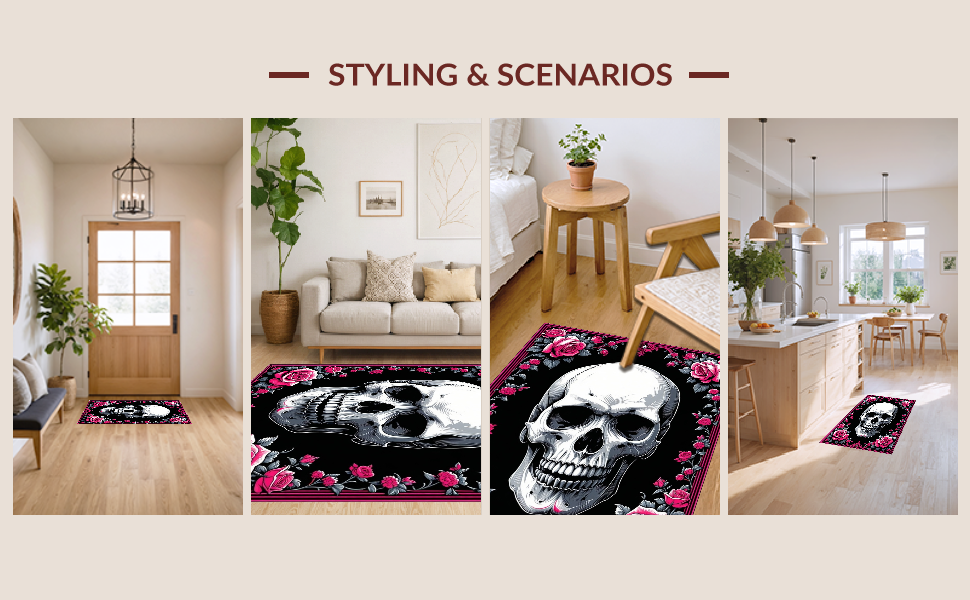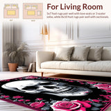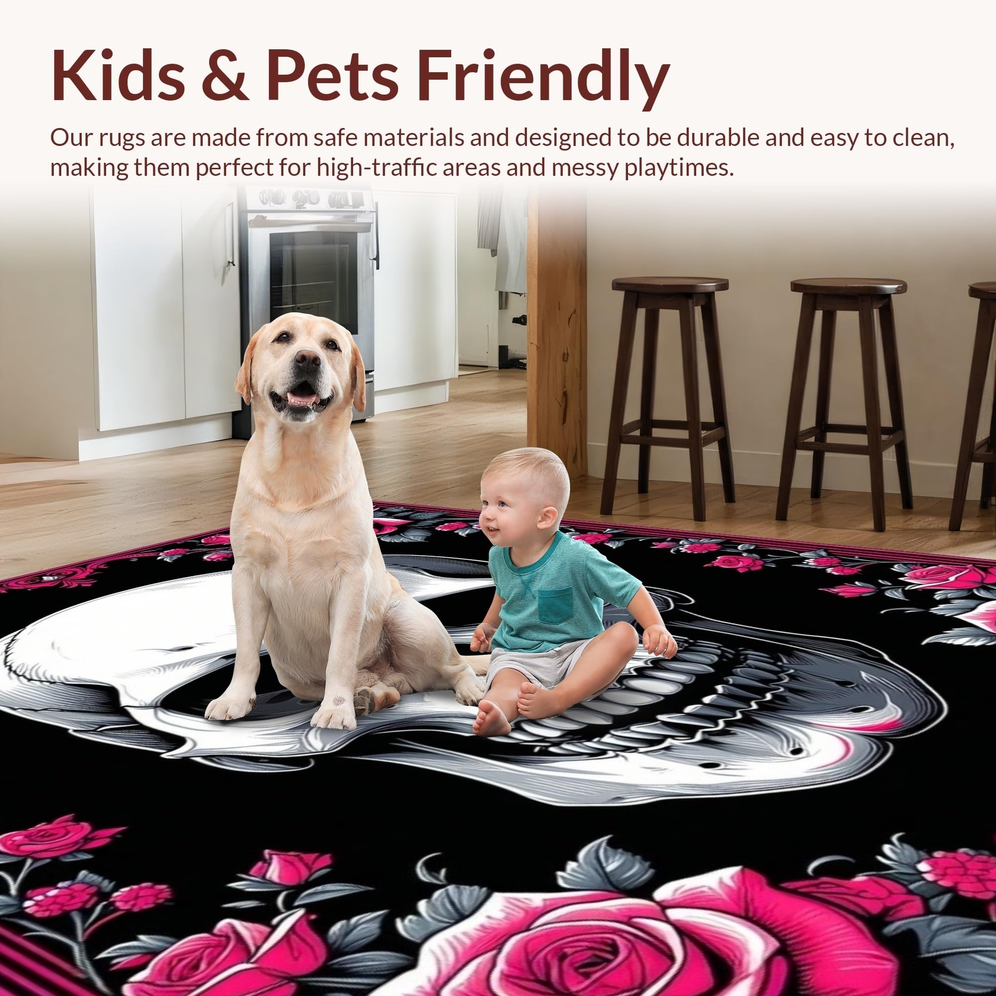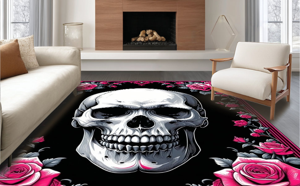 Ultra Soft Area Rug, Non Slip, Stain Resistant, Washable Area Rugs for Living Room, Bedroom, Rustic Vintage Skull Imagery(Black) Overview: