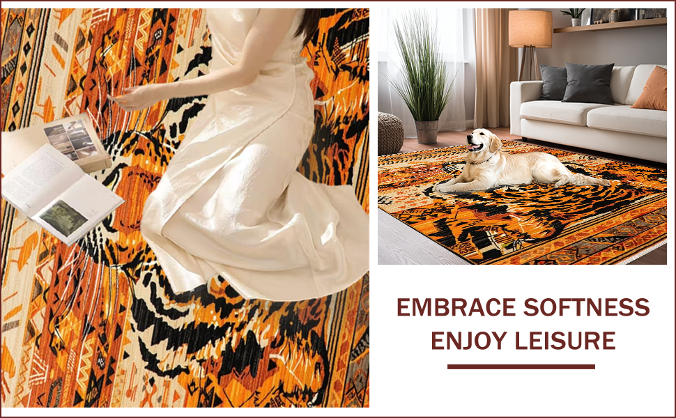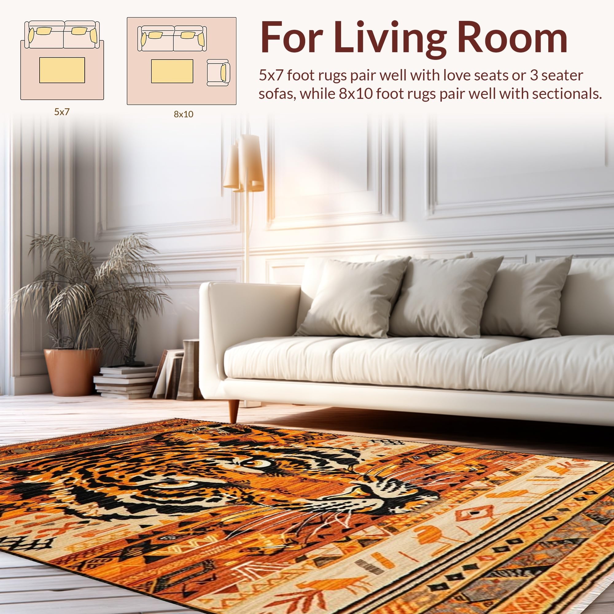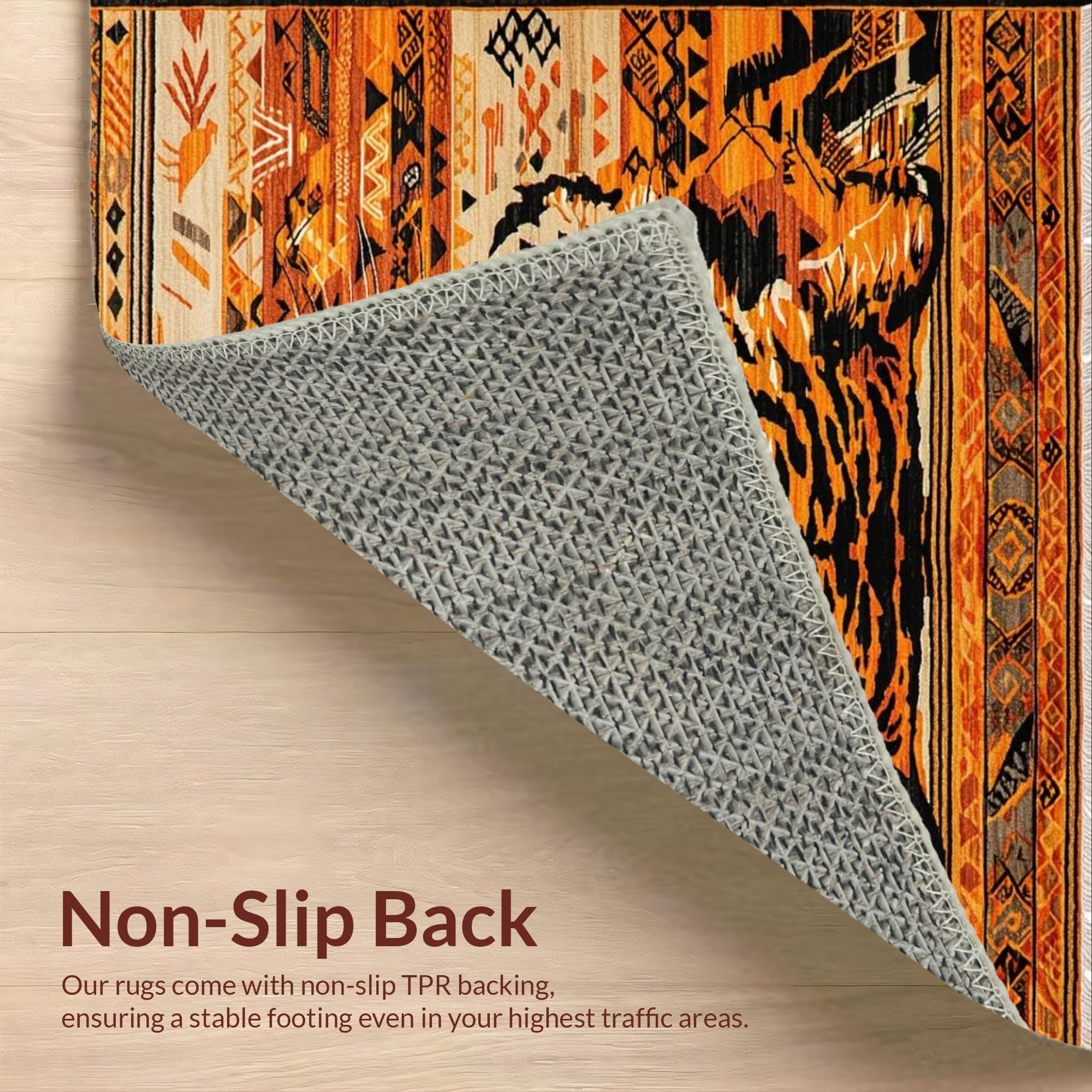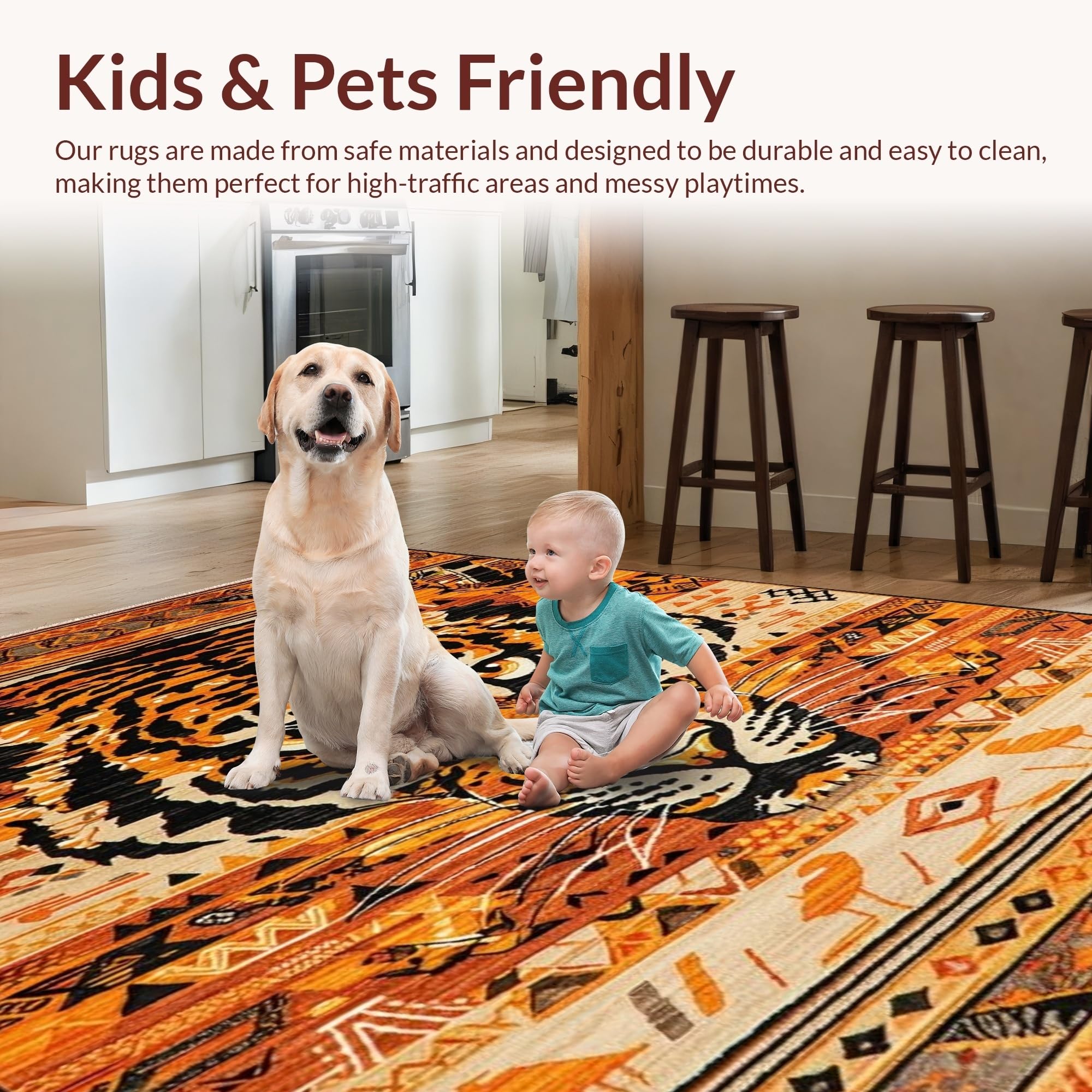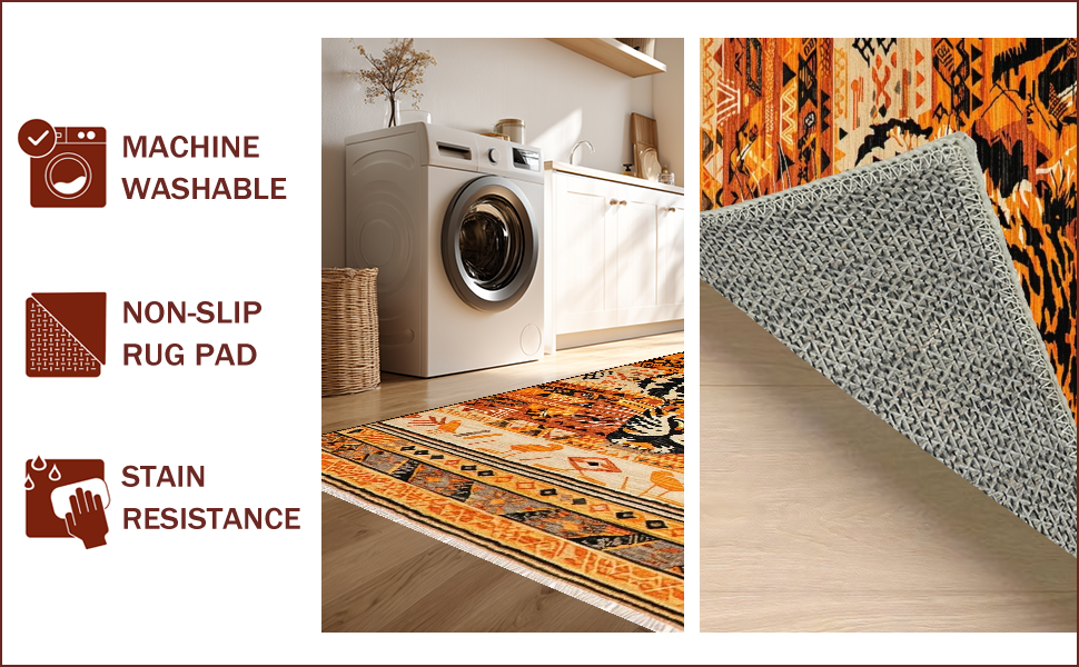 Ultra Soft Area Rug, Non Slip, Stain Resistant, Washable Area Rugs for Living Room, Bedroom, Rustic Warm Earthy Palette(Orange) Overview: