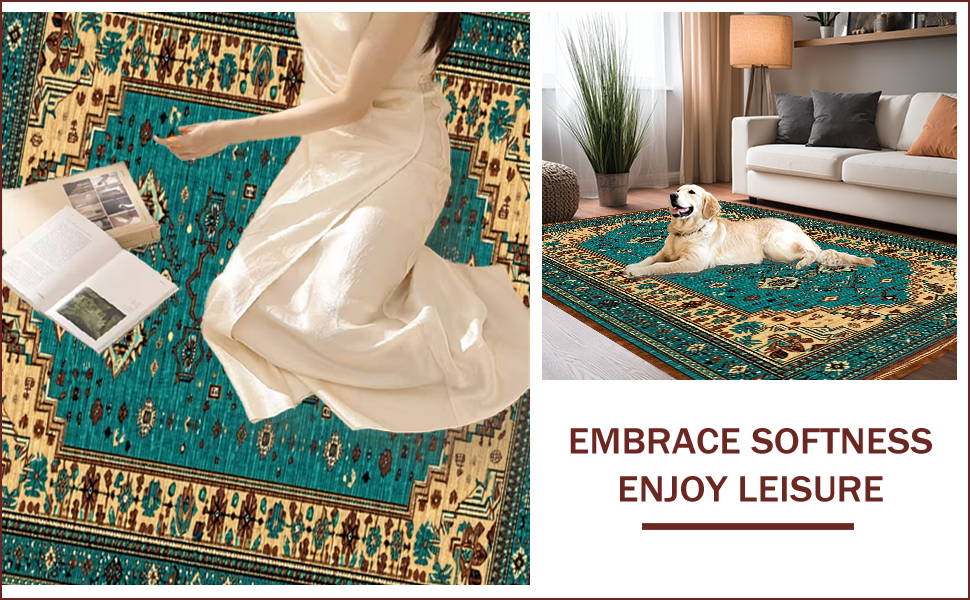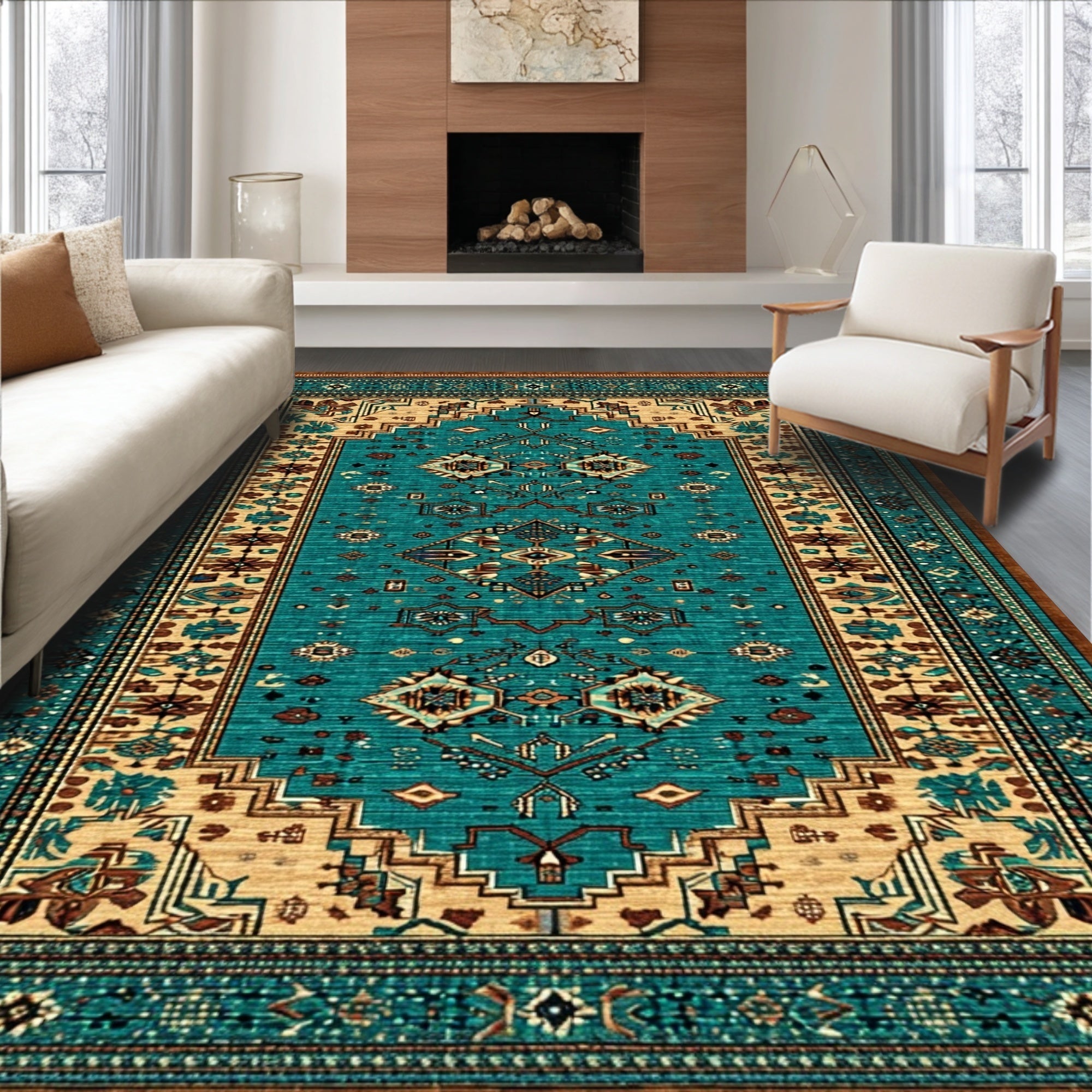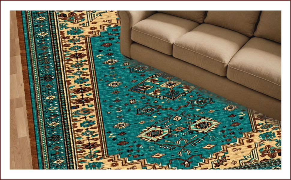 Ultra Soft Area Rug, Non Slip, Stain Resistant, Washable Area Rugs for Living Room, Bedroom, Rustic Western Brown Teal Living Room Washable Rug(Blue) Overview: