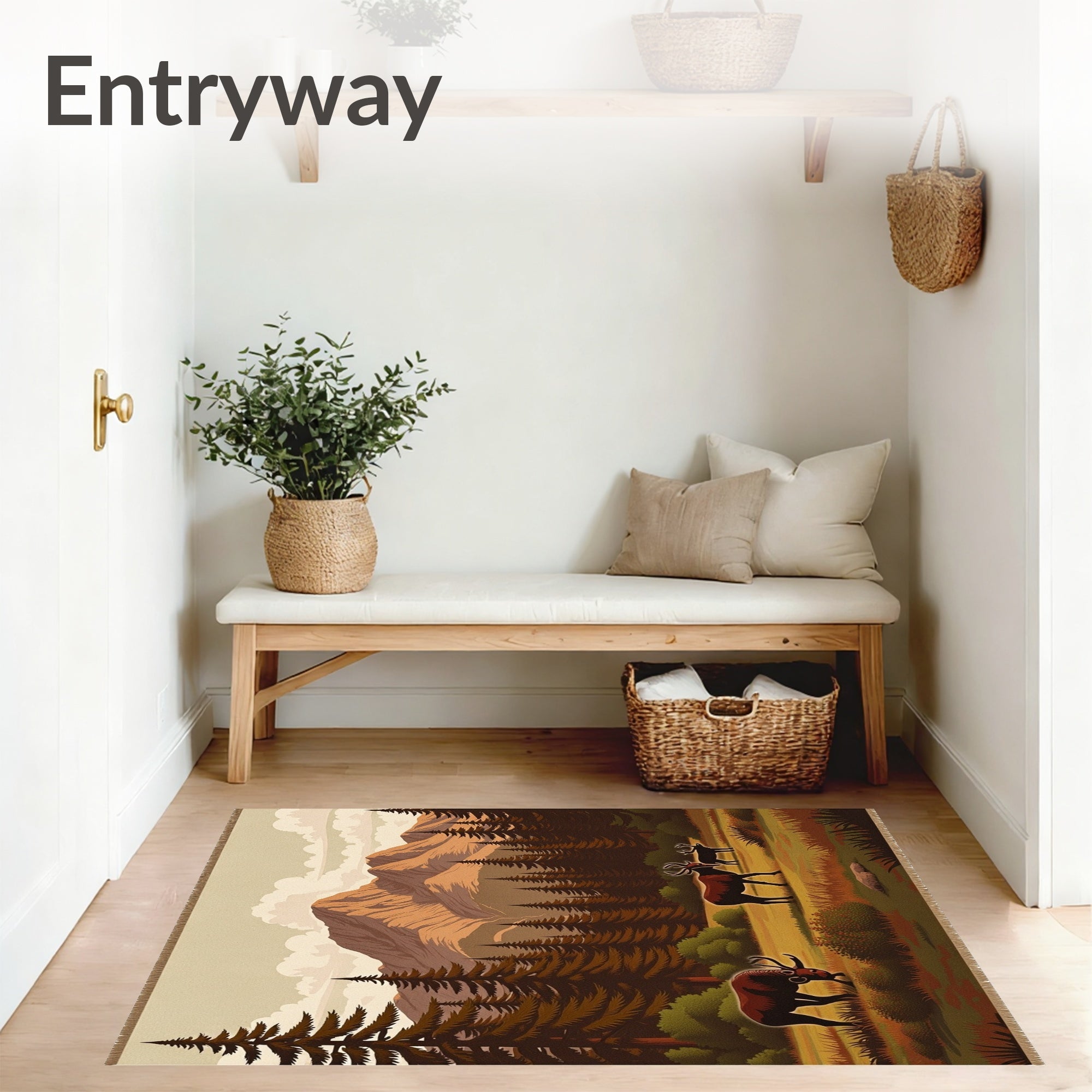 Flatwoven High Traffic Area Rug, Rustic Wilderness Hearth Protection, Non Slip, Stain Resistant, Washable Area Rugs for Living Room, Bedroom (Brown) Overview: