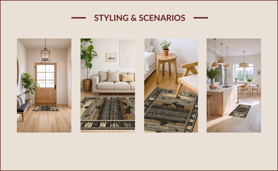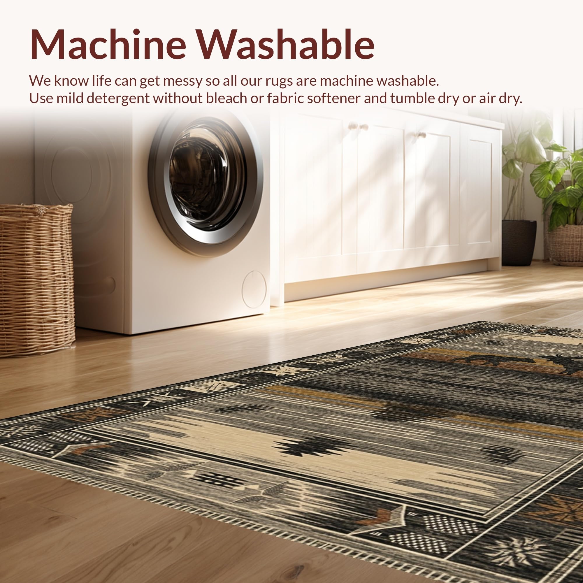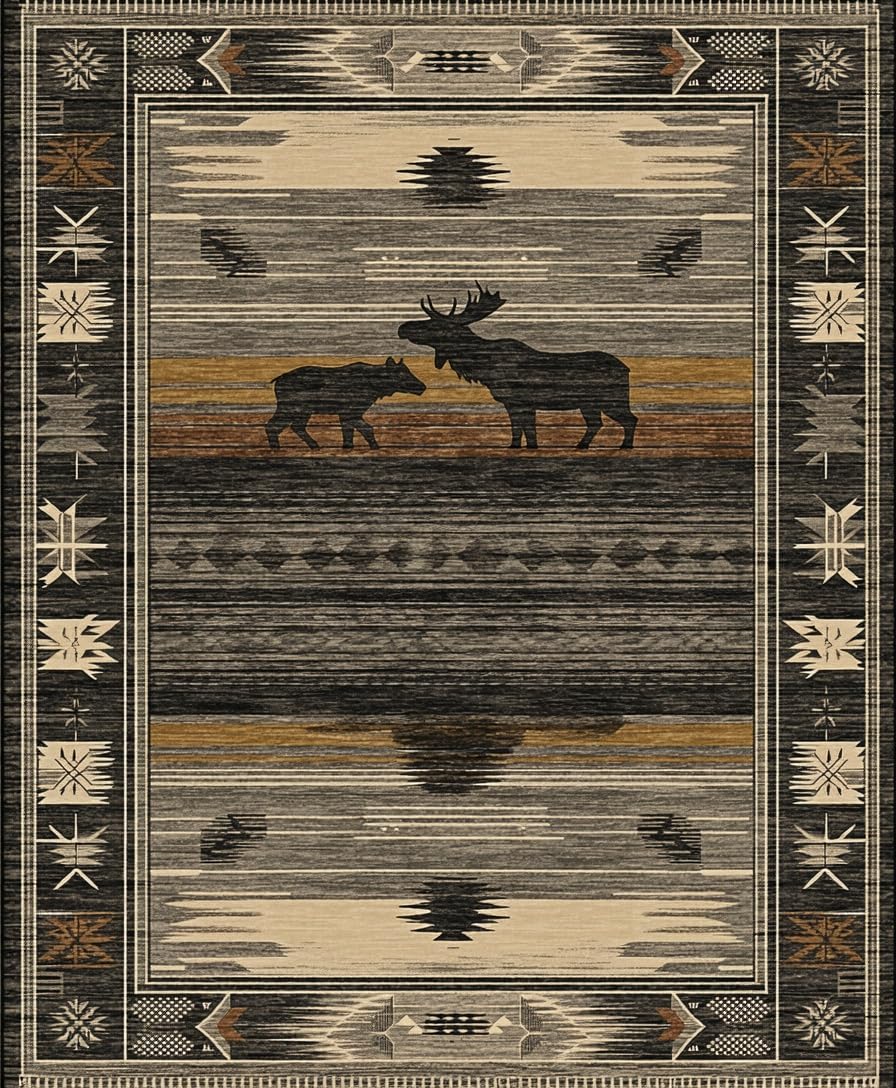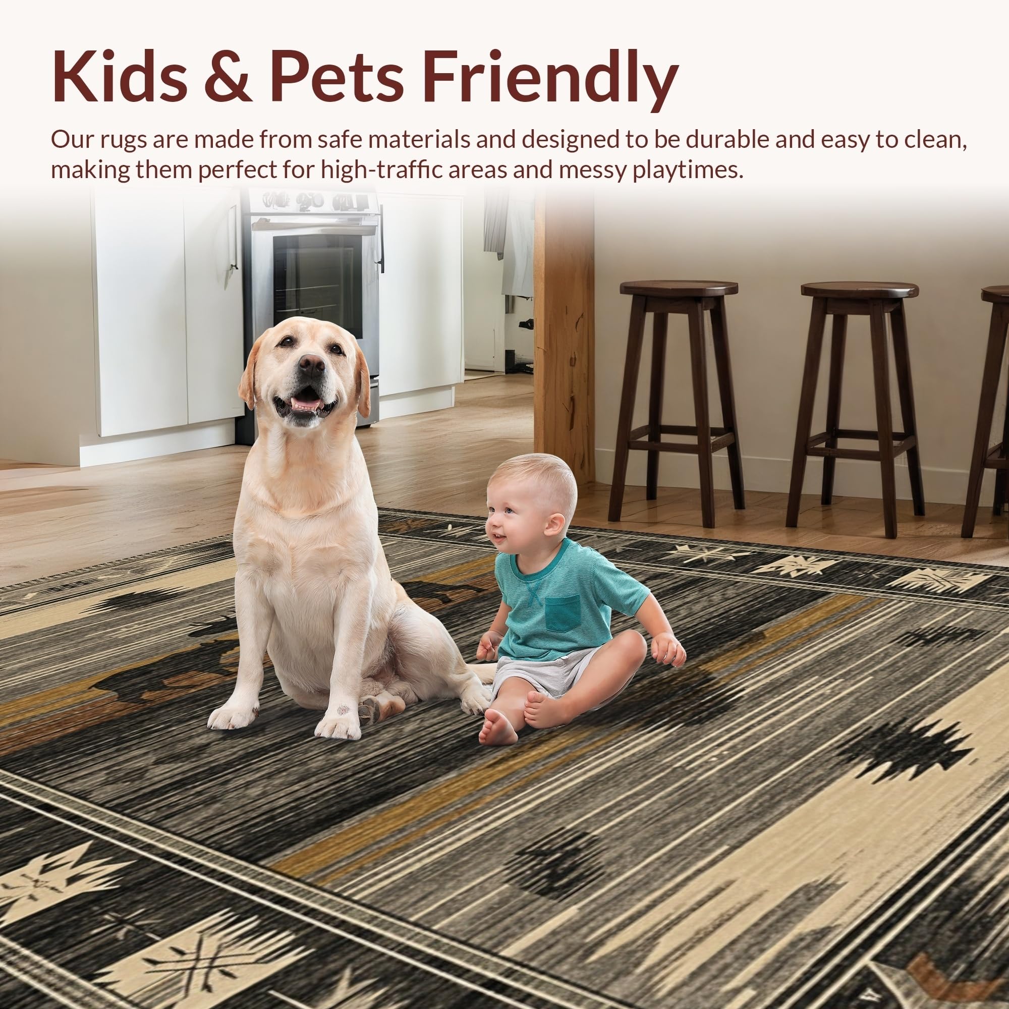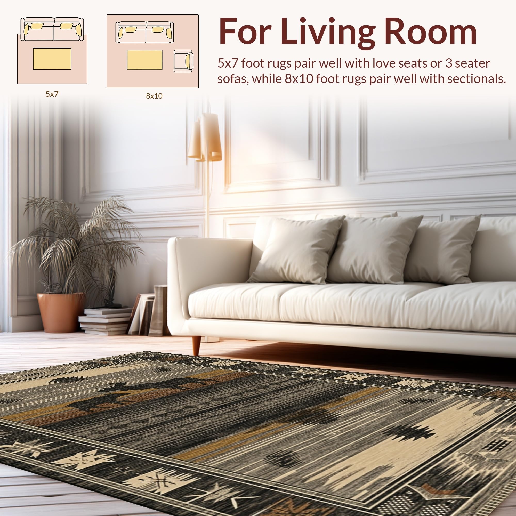 Ultra Soft Area Rug, Non Slip, Stain Resistant, Washable Area Rugs for Living Room, Bedroom, Rustic Wildlife Brown Tapestry(Gray) Overview:
