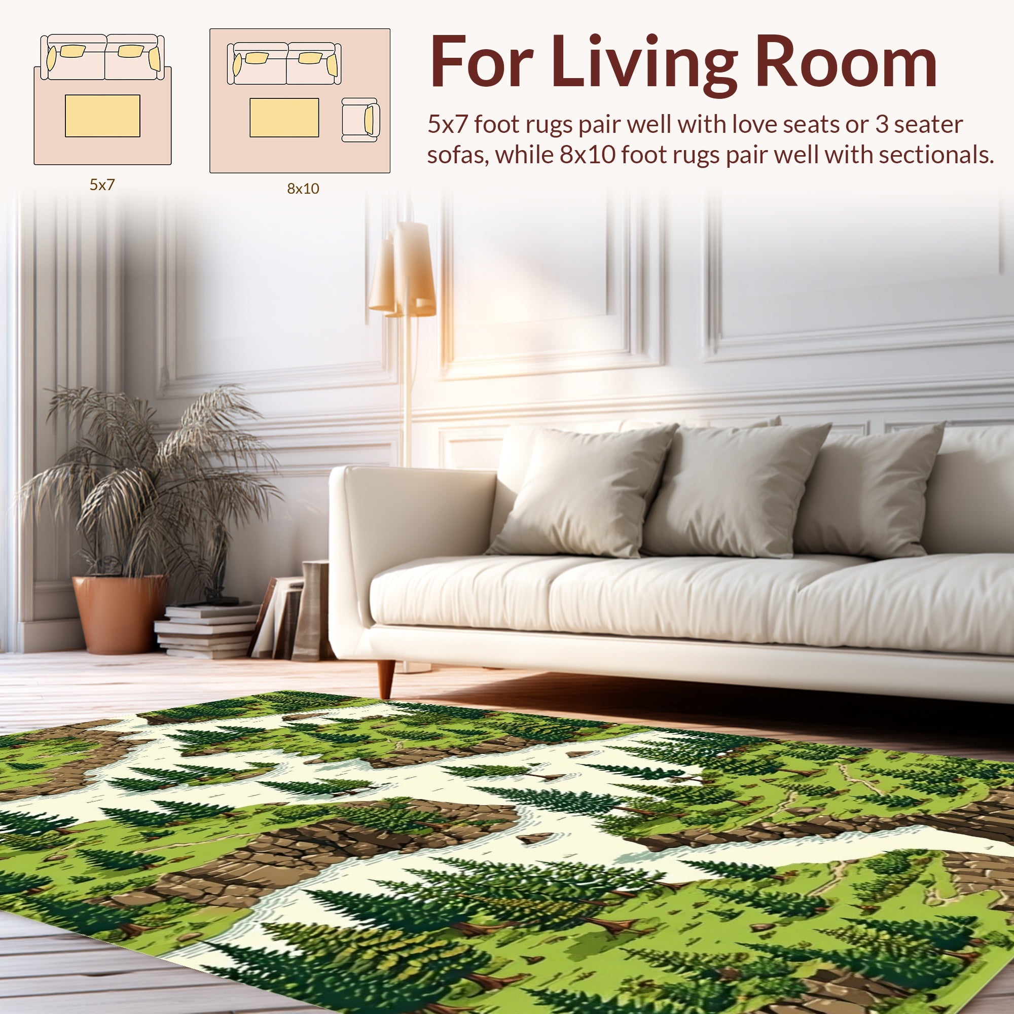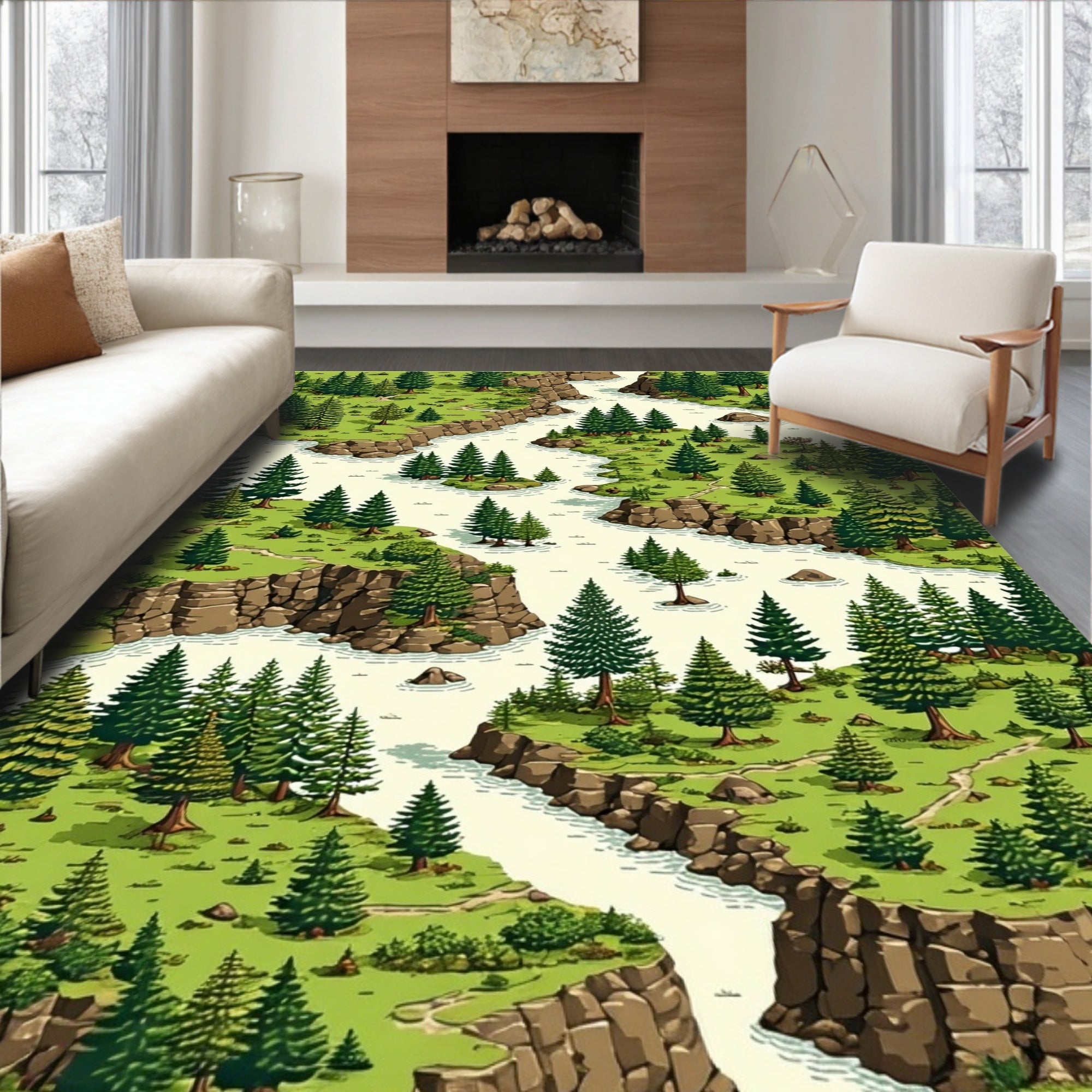 Flatwoven High Traffic Area Rug, Rustic Woodland Adventure Imagery, Non Slip, Stain Resistant, Washable Area Rugs for Living Room, Bedroom (Green) Overview: