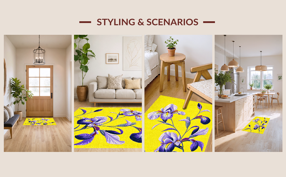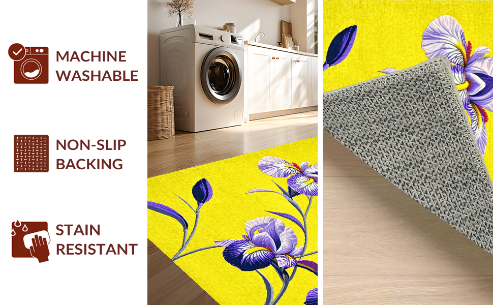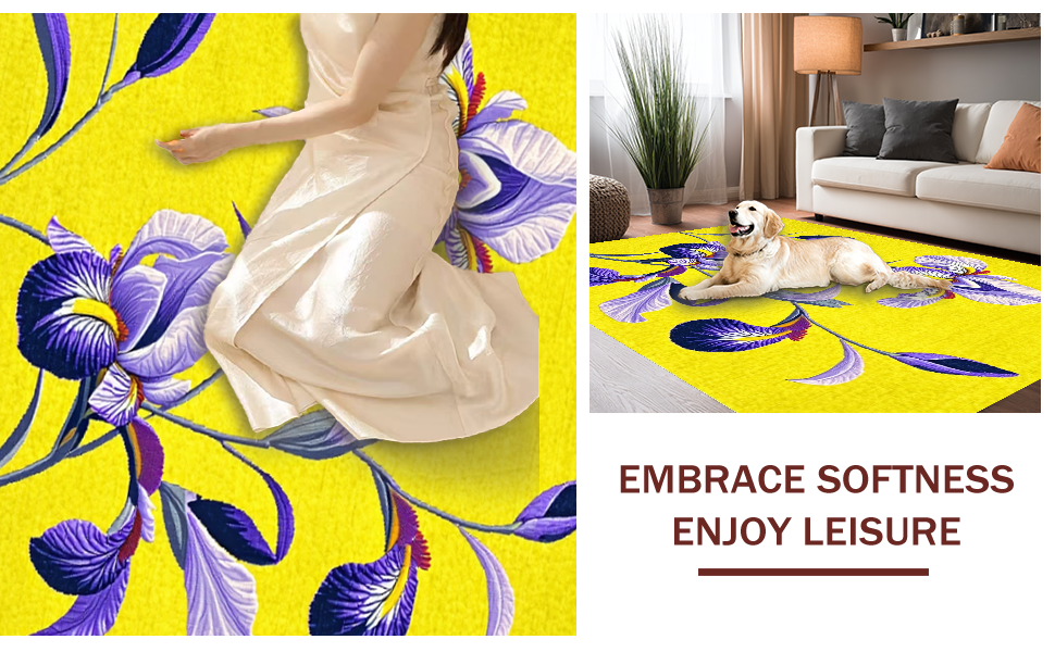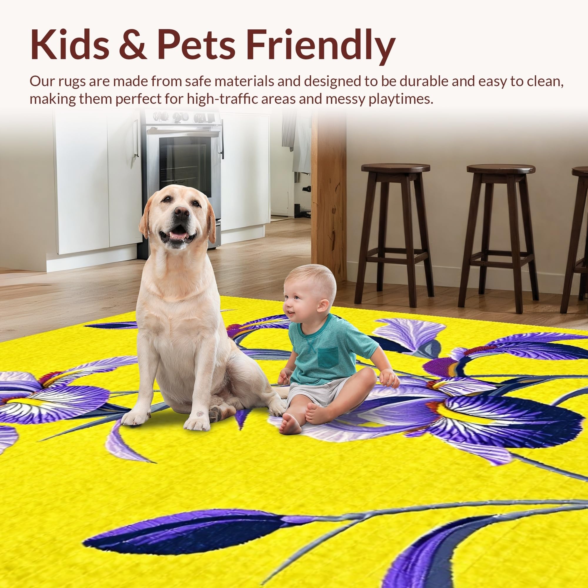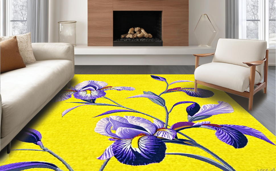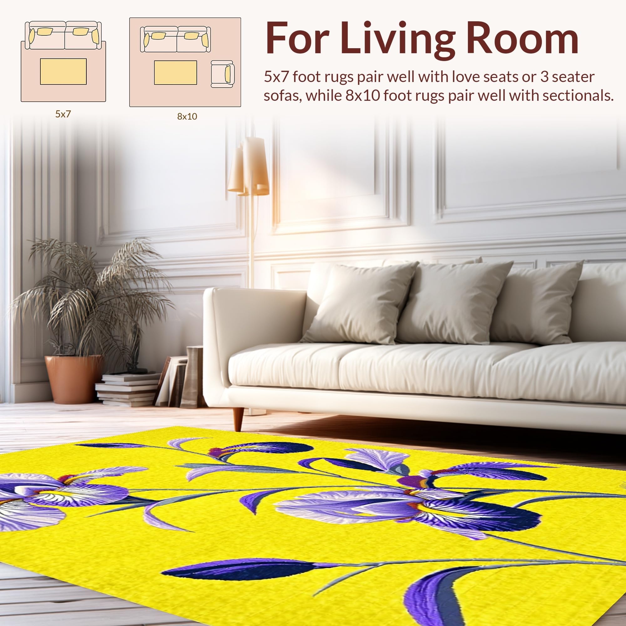 Ultra Soft Area Rug, Non Slip, Stain Resistant, Washable Area Rugs for Living Room, Bedroom, Rustic Yellow Lily Charm(Yellow) Overview: