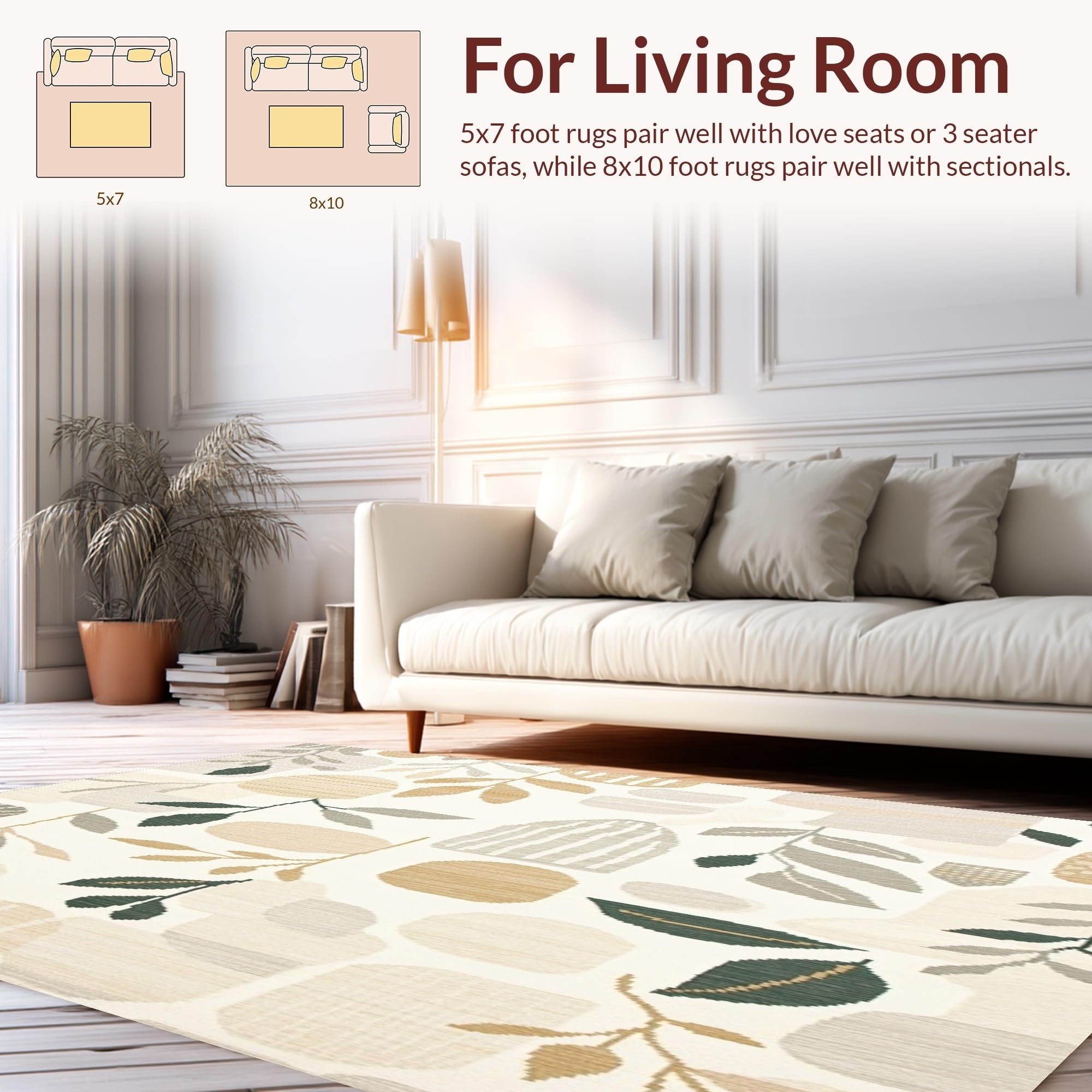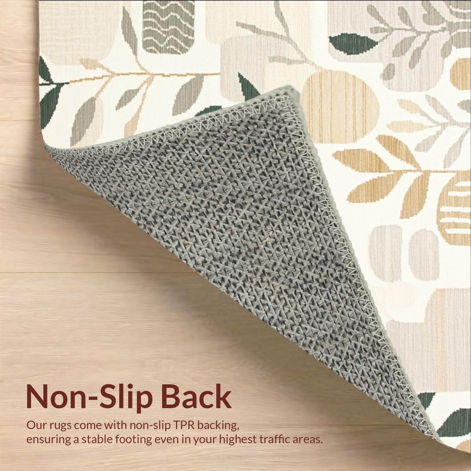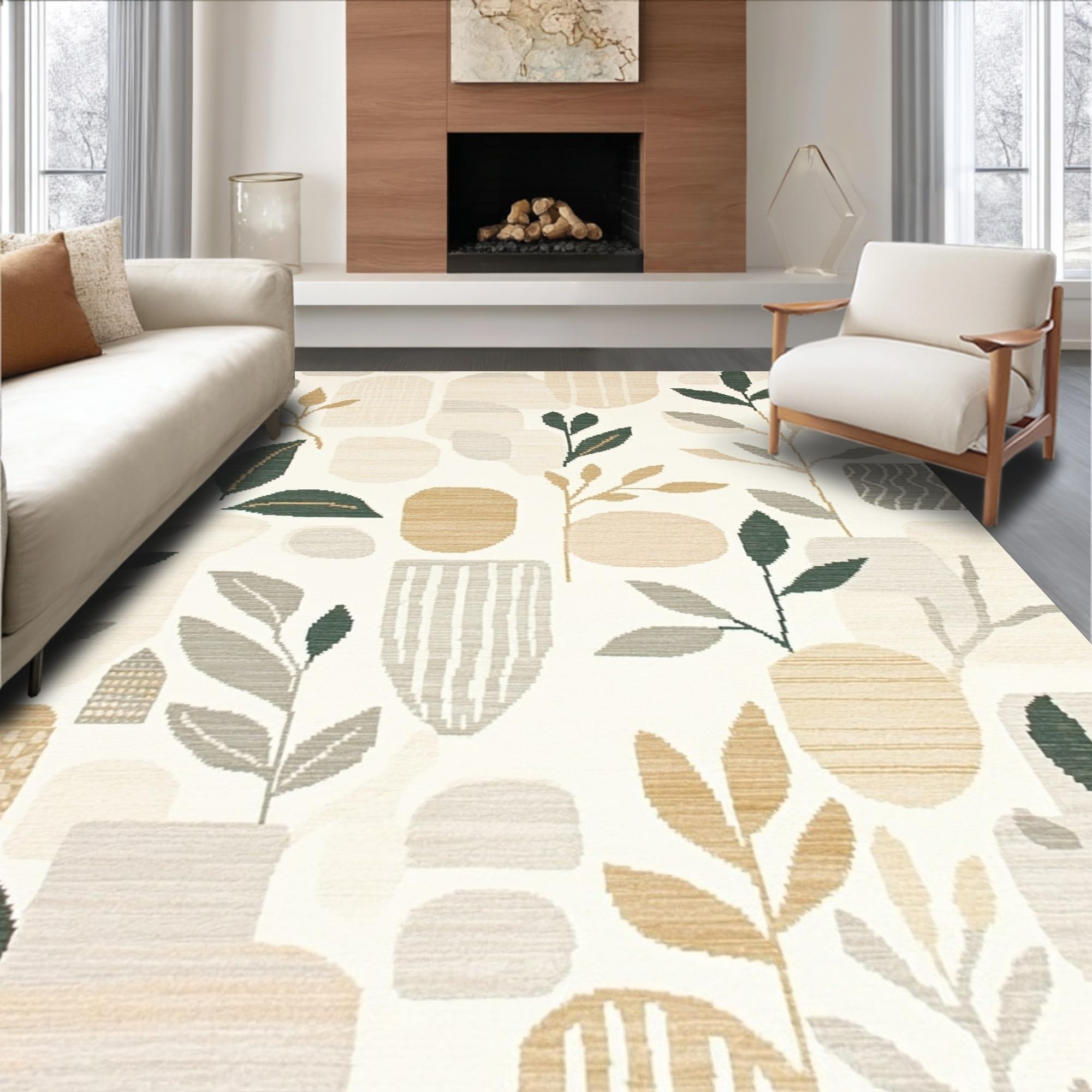Ultra Soft Area Rug, Non Slip, Stain Resistant, Washable Area Rugs for Living Room, Bedroom, Safari Grove Area with Whimsical Animal Motifs and Neutral Leaf Accents(Beige) Overview: