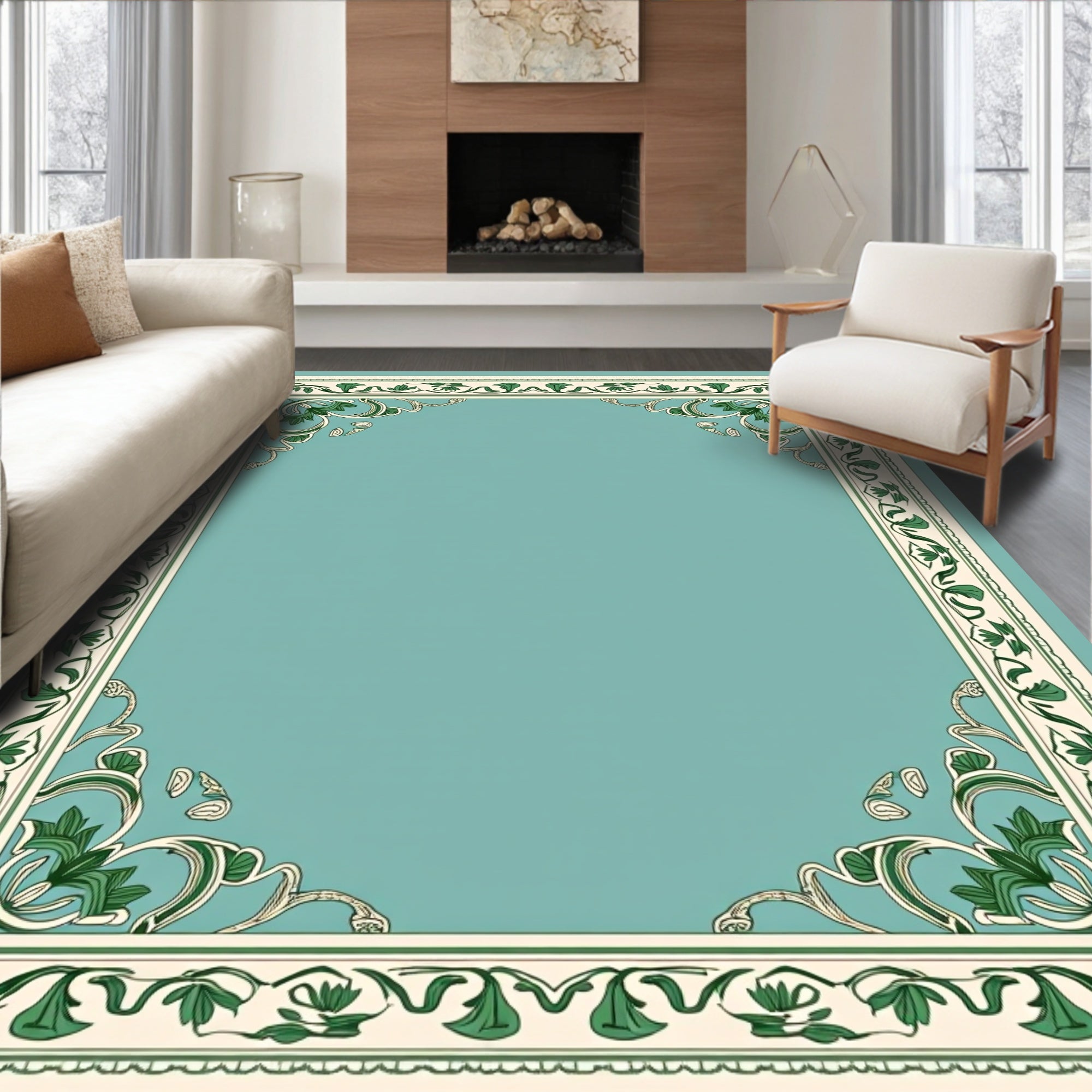 Ultra Soft Area Rug, Non Slip, Stain Resistant, Washable Area Rugs for Living Room, Bedroom, Sage Botanical Wreath Holiday Floor(Teal) Overview: