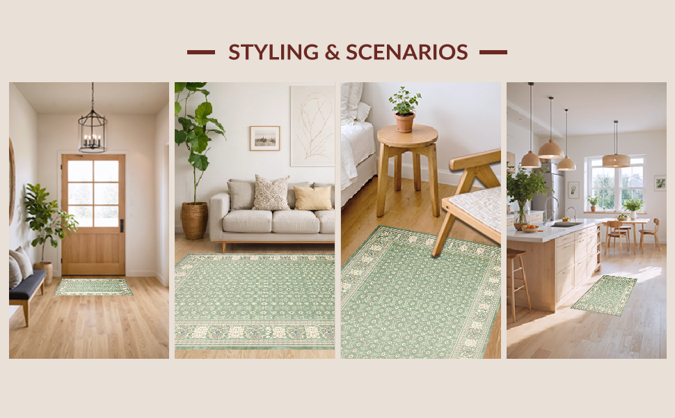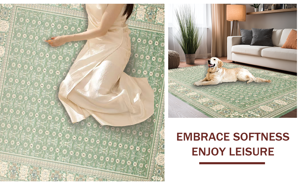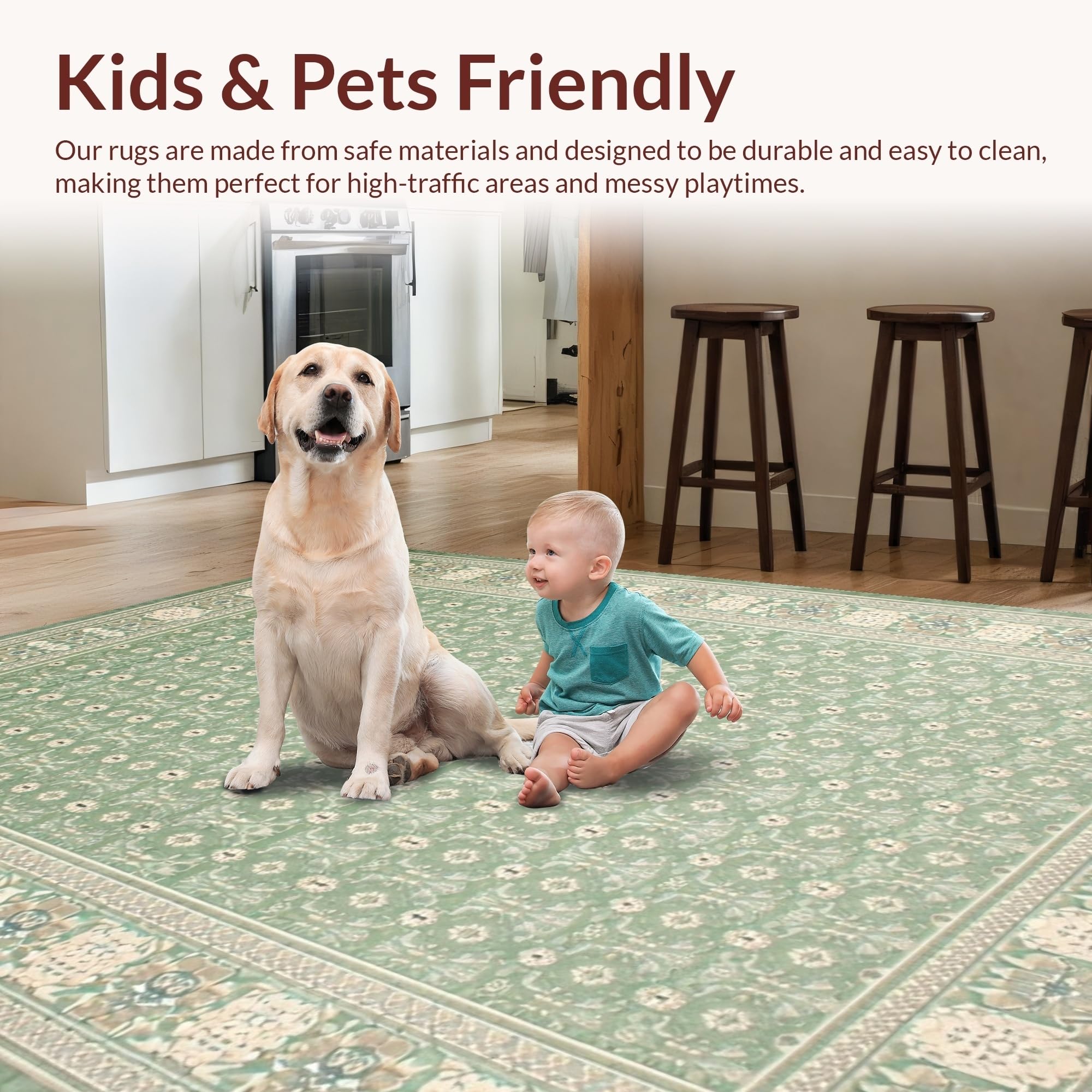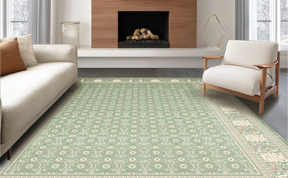 Ultra Soft Area Rug, Non Slip, Stain Resistant, Washable Area Rugs for Living Room, Bedroom, Sage Elegance with Geometric Accents(Green) Overview:
