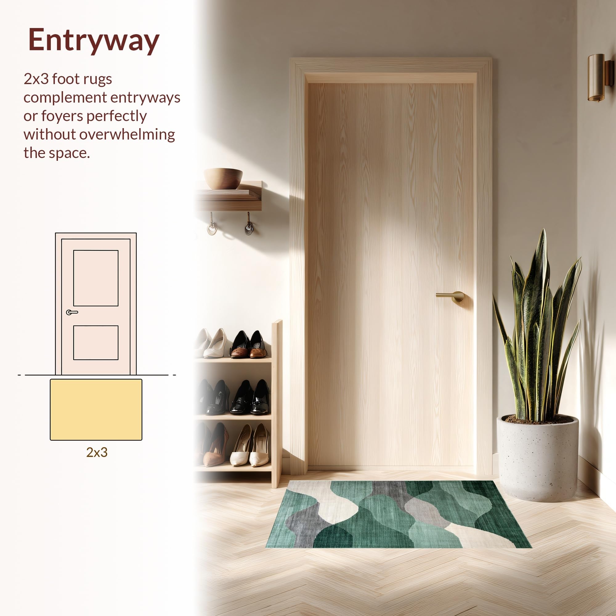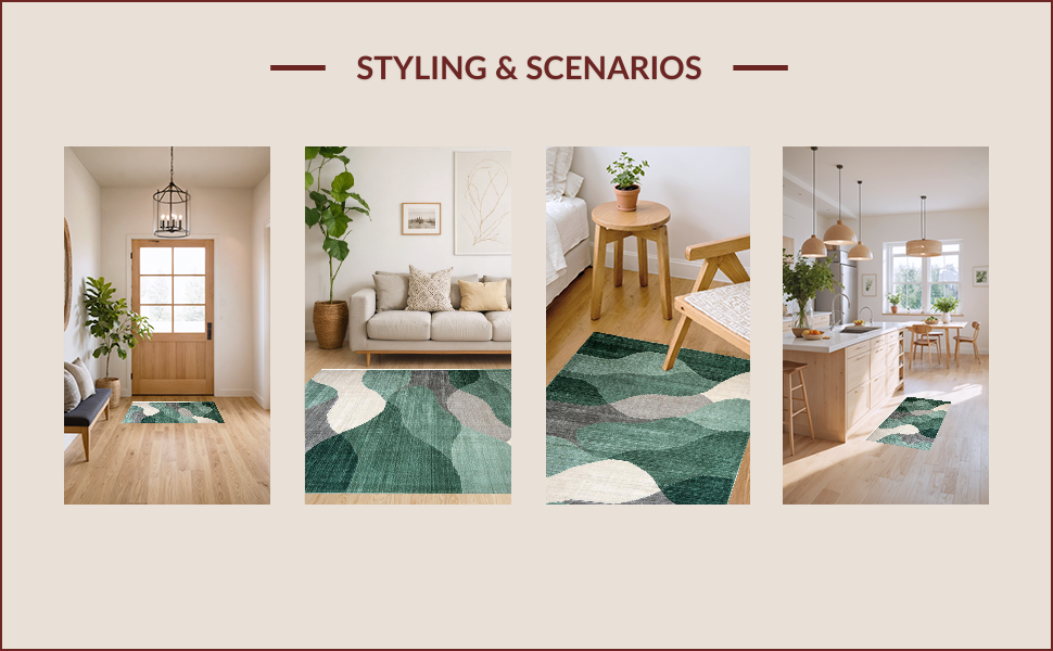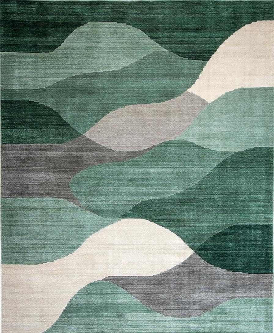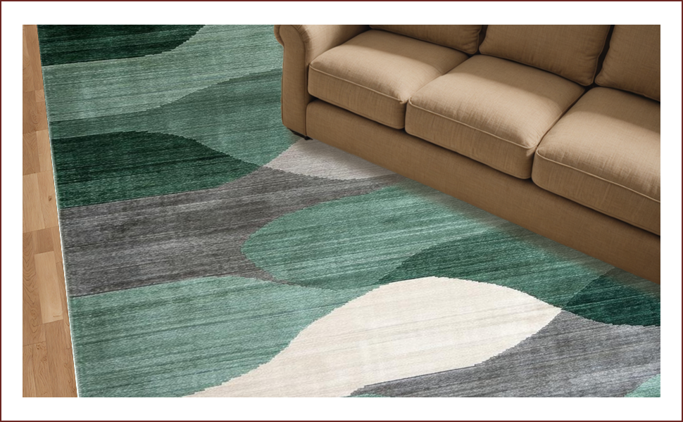 Ultra Soft Area Rug, Non Slip, Stain Resistant, Washable Area Rugs for Living Room, Bedroom, Sage Green Abstract Geometric Motif(Green) Overview: