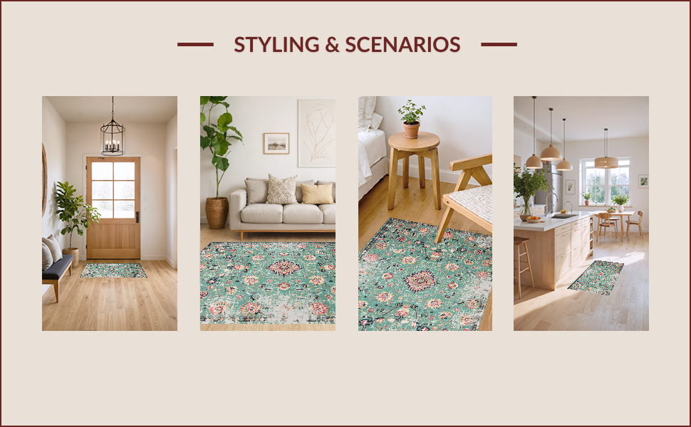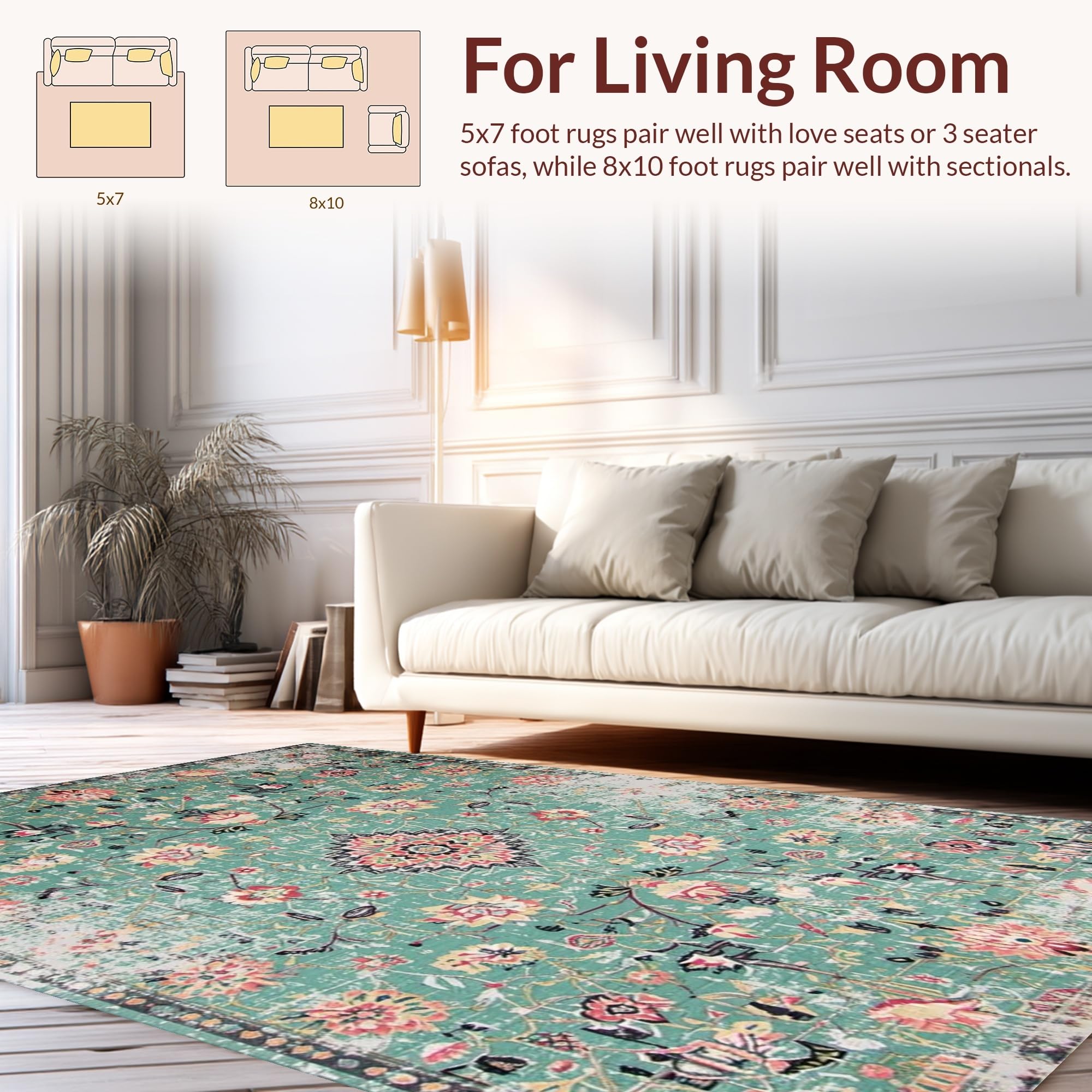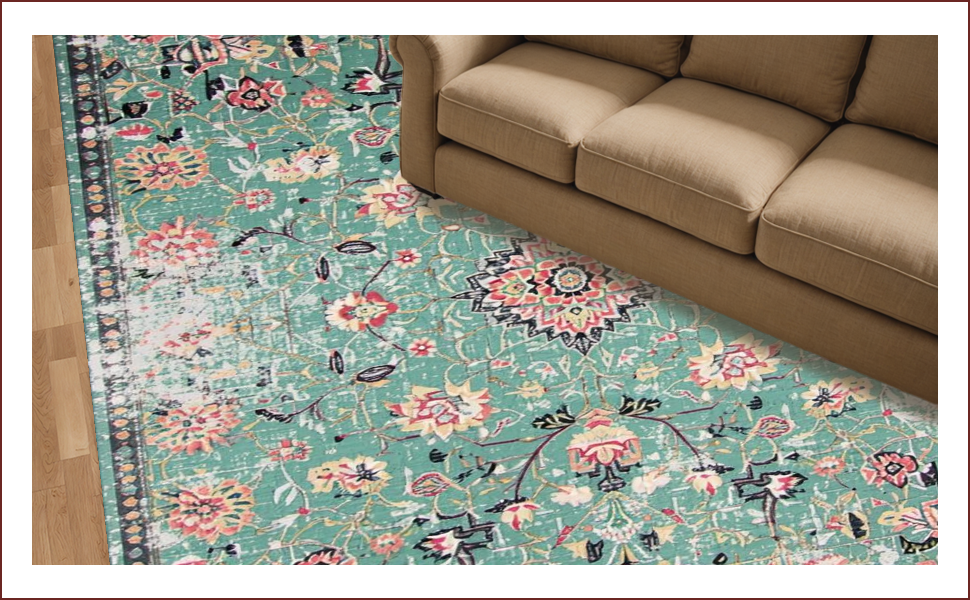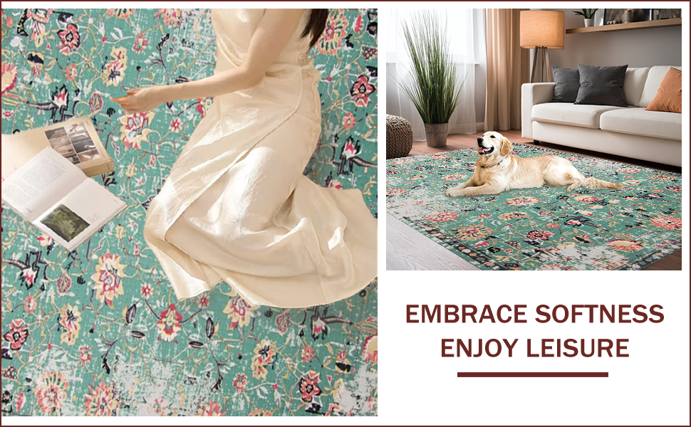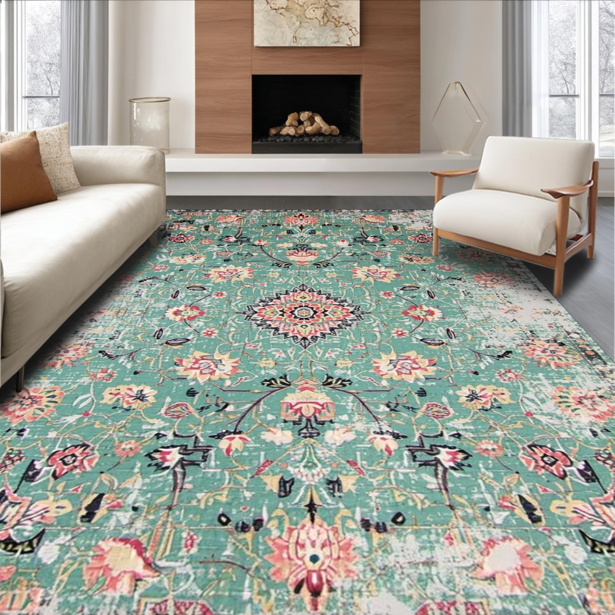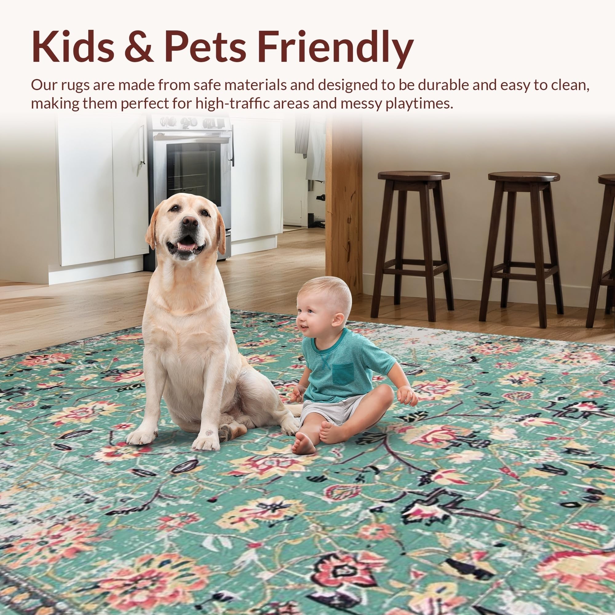 Ultra Soft Area Rug, Non Slip, Stain Resistant, Washable Area Rugs for Living Room, Bedroom, Sage Green Retro Floral Elegance(Green) Overview: