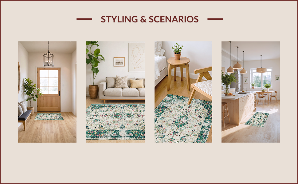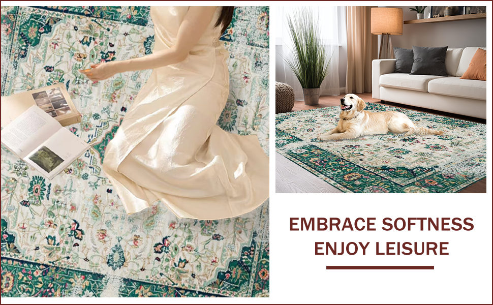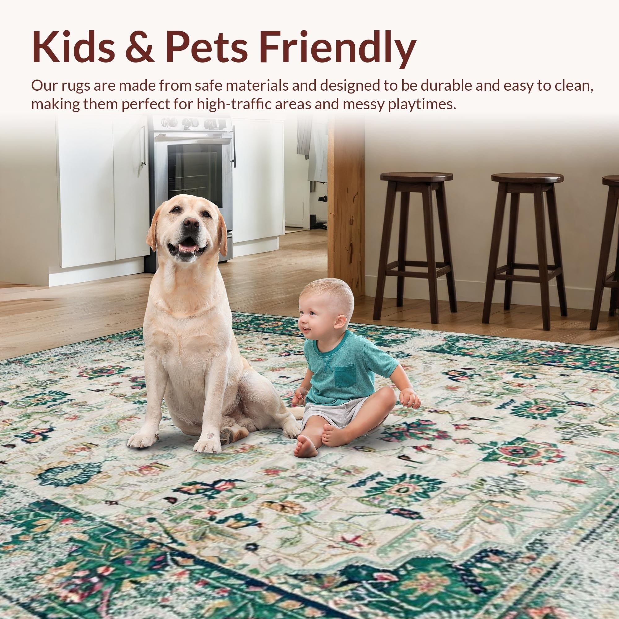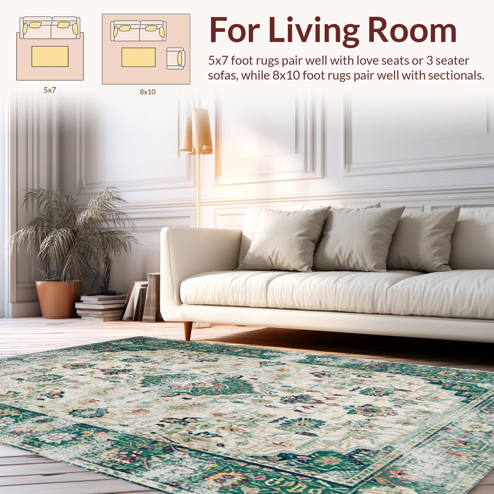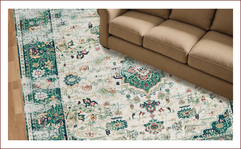Ultra Soft Area Rug, Non Slip, Stain Resistant, Washable Area Rugs for Living Room, Bedroom, Sage Green Rustic Elegance(Ivory) Overview: