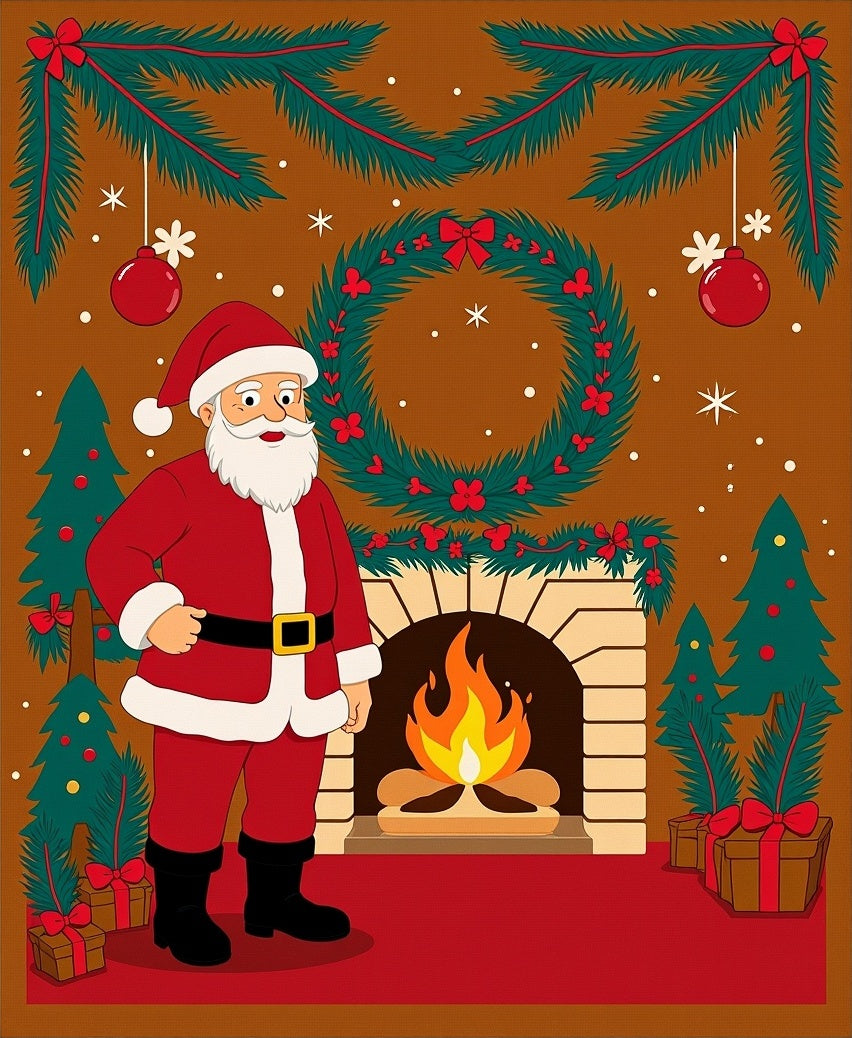 Santa by Hearth Festive Gathering Tapestry with Pine Motif(Brown)