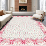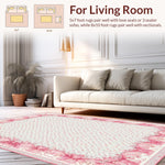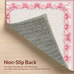 Ultra Soft Area Rug, Non Slip, Stain Resistant, Washable Area Rugs for Living Room, Bedroom, Scalloped Ribbon Bow Rug Coquette Preppy Accent with Wavy Border Design(Pink) Overview: