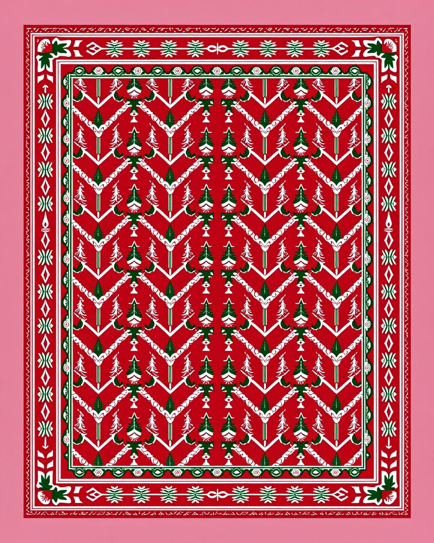 Scandinavian Fir Tree Interlocking Chevron Holiday Design(Red)