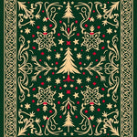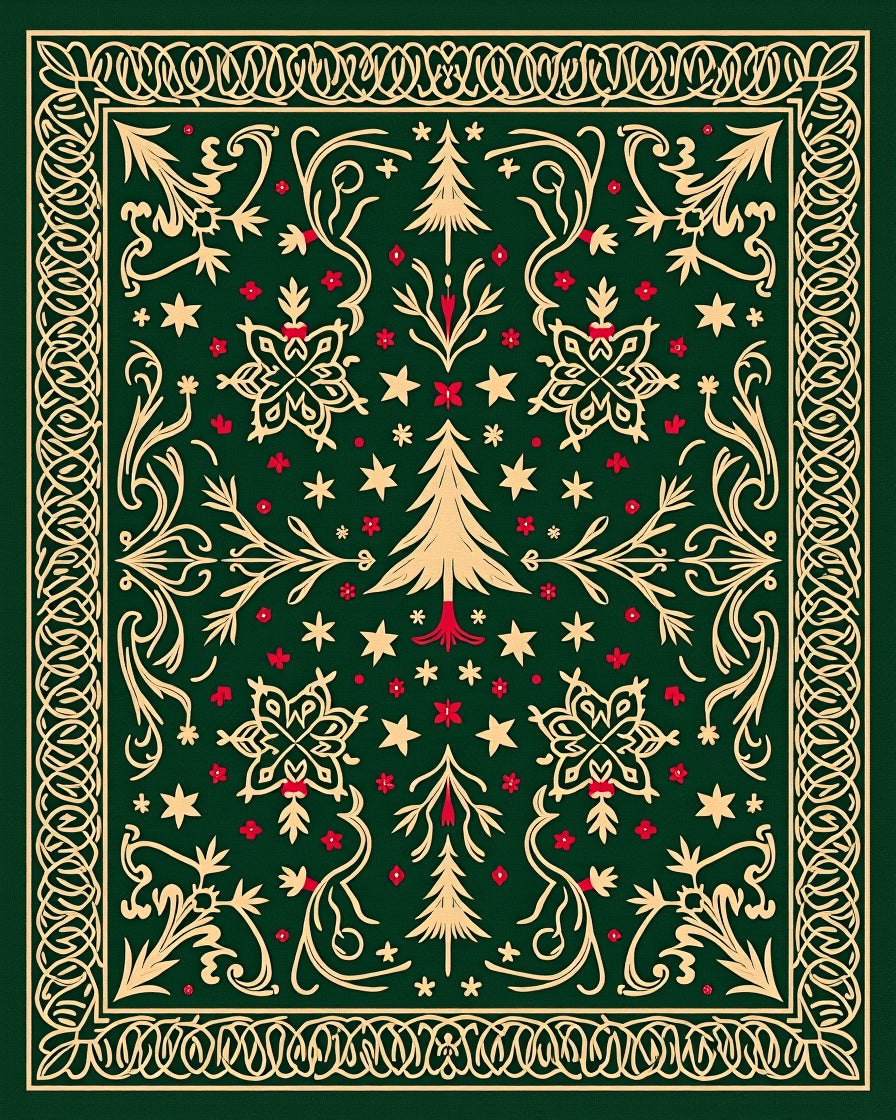 Scandinavian Folk Tree Motif with Twinkling Accents and Swirling Vines(Green)