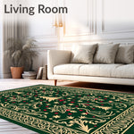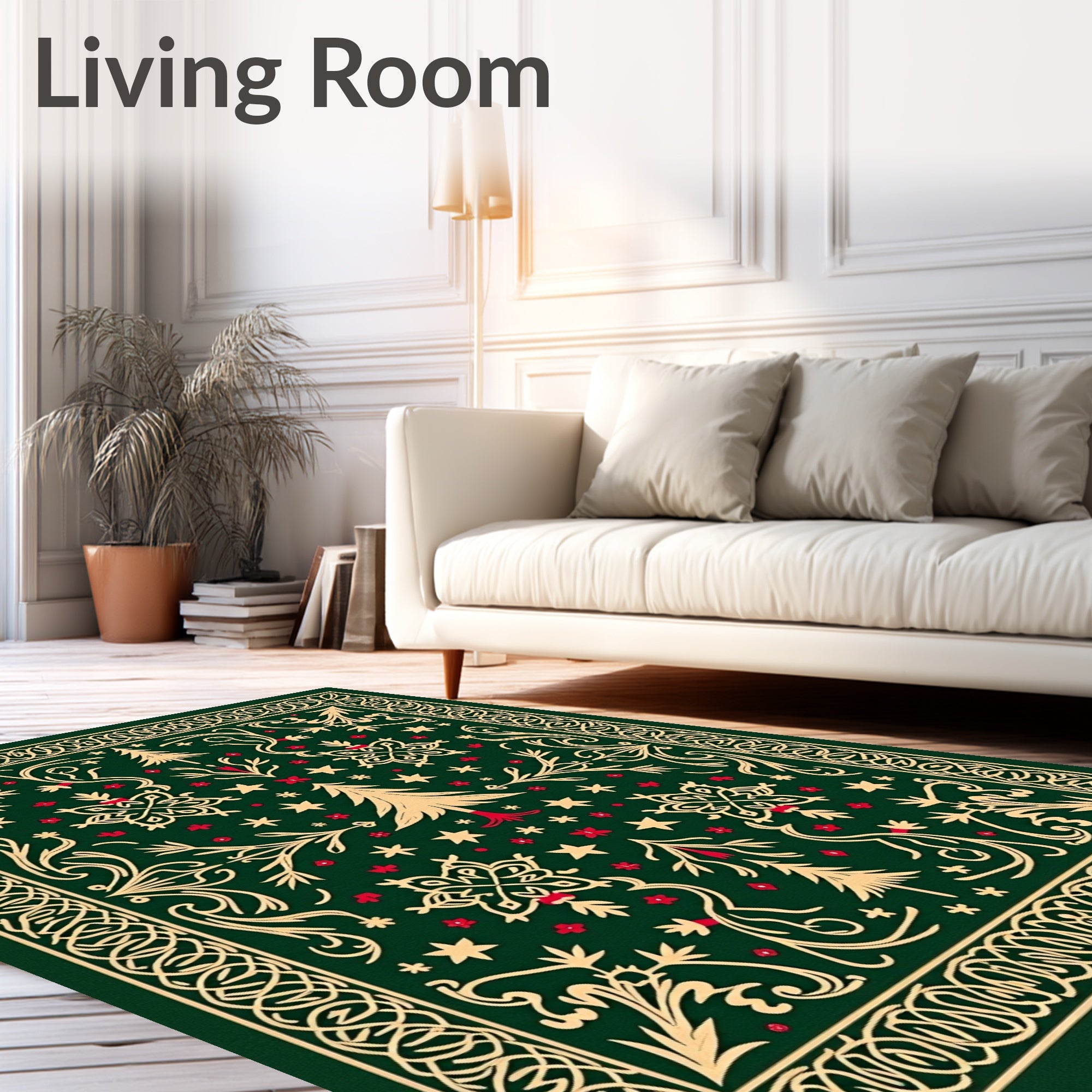 Ultra Soft Area Rug, Non Slip, Stain Resistant, Washable Area Rugs for Living Room, Bedroom, Scandinavian Folk Tree Motif with Twinkling Accents and Swirling Vines(Green) Overview: