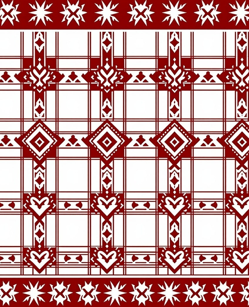 Scandinavian Plaid with Interlocking Hearts(Red)
