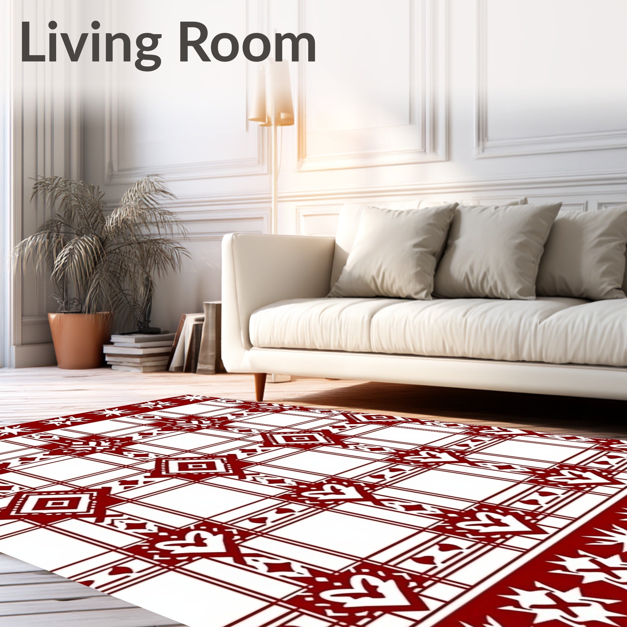 Ultra Soft Area Rug, Non Slip, Stain Resistant, Washable Area Rugs for Living Room, Bedroom, Scandinavian Plaid with Interlocking Hearts(Red) Overview: