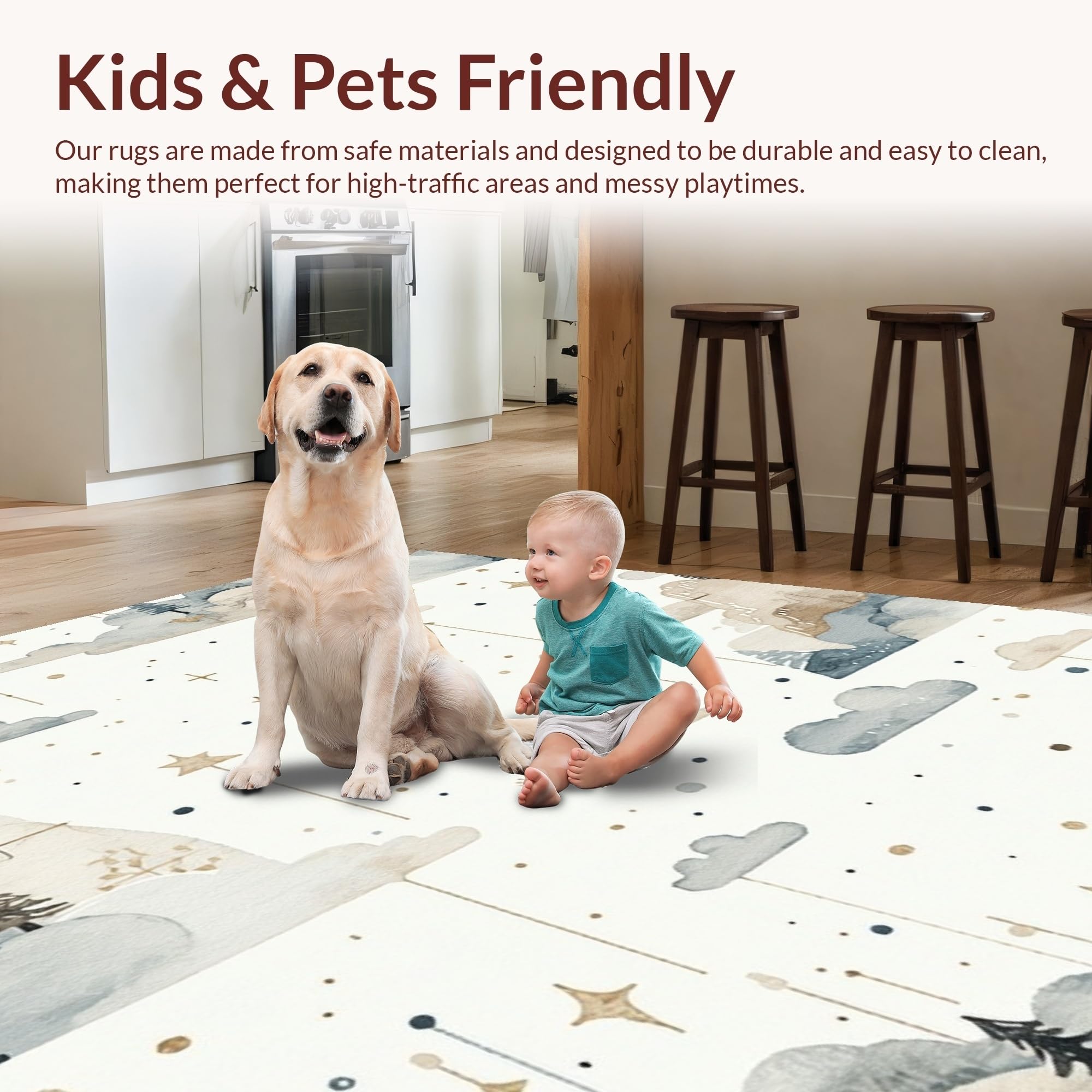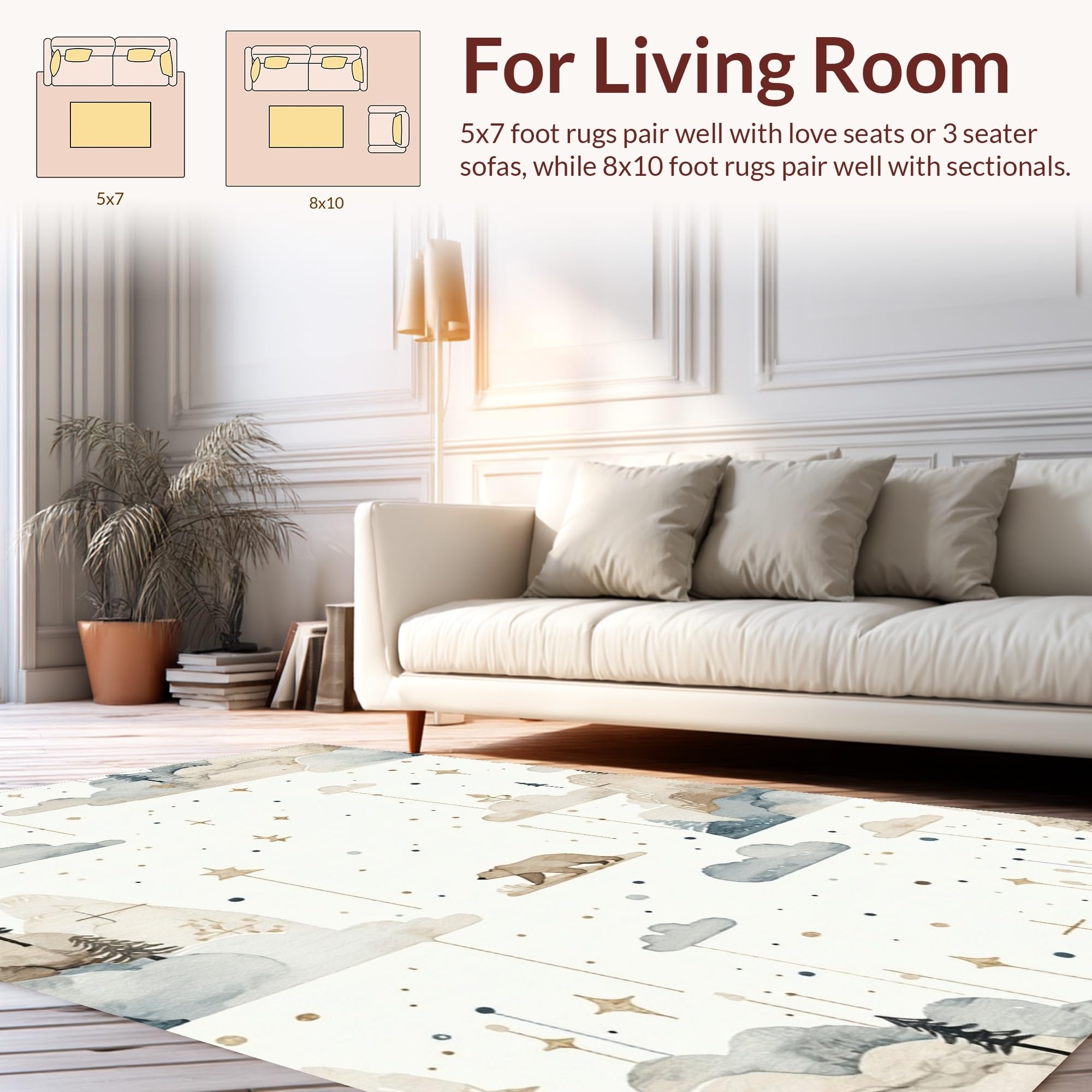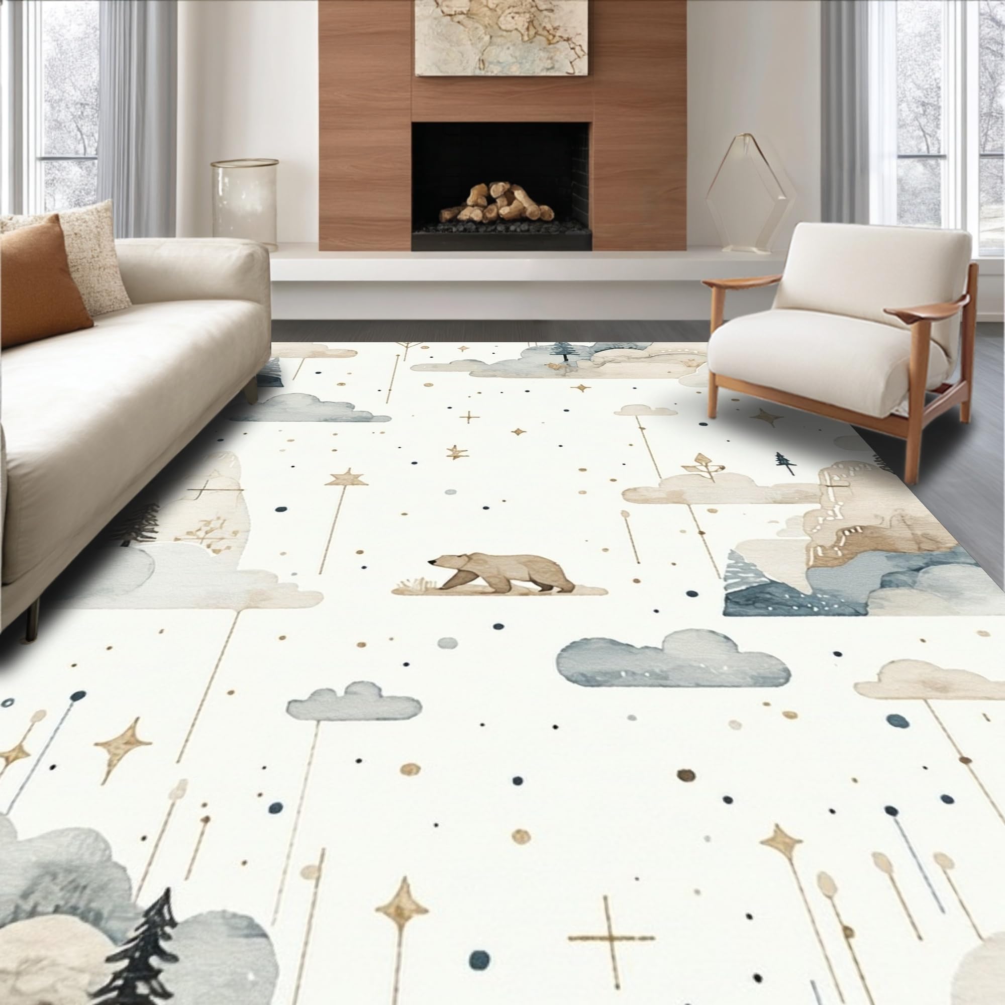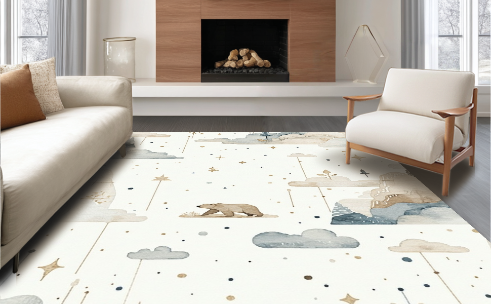 Ultra Soft Area Rug, Non Slip, Stain Resistant, Washable Area Rugs for Living Room, Bedroom, Scandinavian Playful Animal Motif(Beige) Overview: