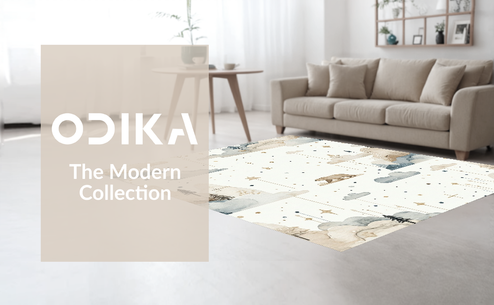 - Modern, artistic: Add a piece of modern charm from ODIKA to your bedroom collection. Designed with the art of minimalism, this rug is sure to provide your bedroom with coziness.