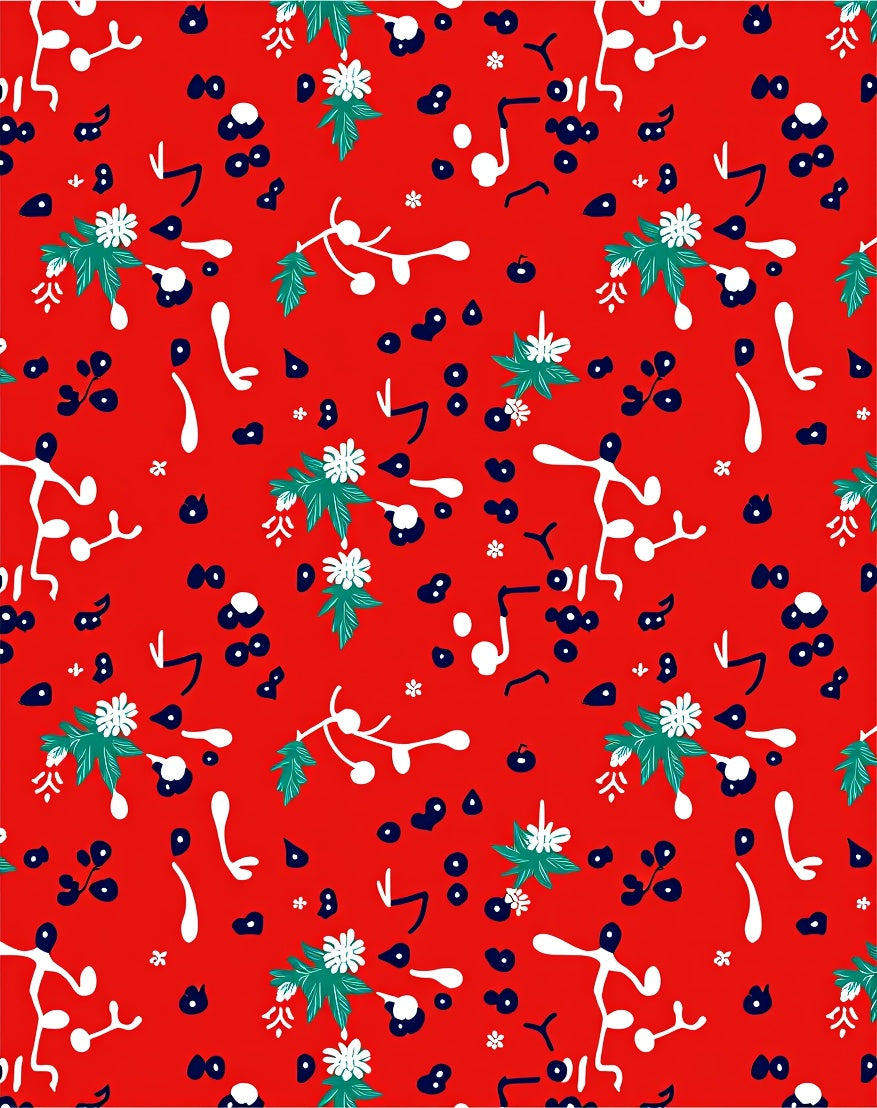 Scandinavian Winter Forest with Delicate Spruce and Berry Accents(Red)