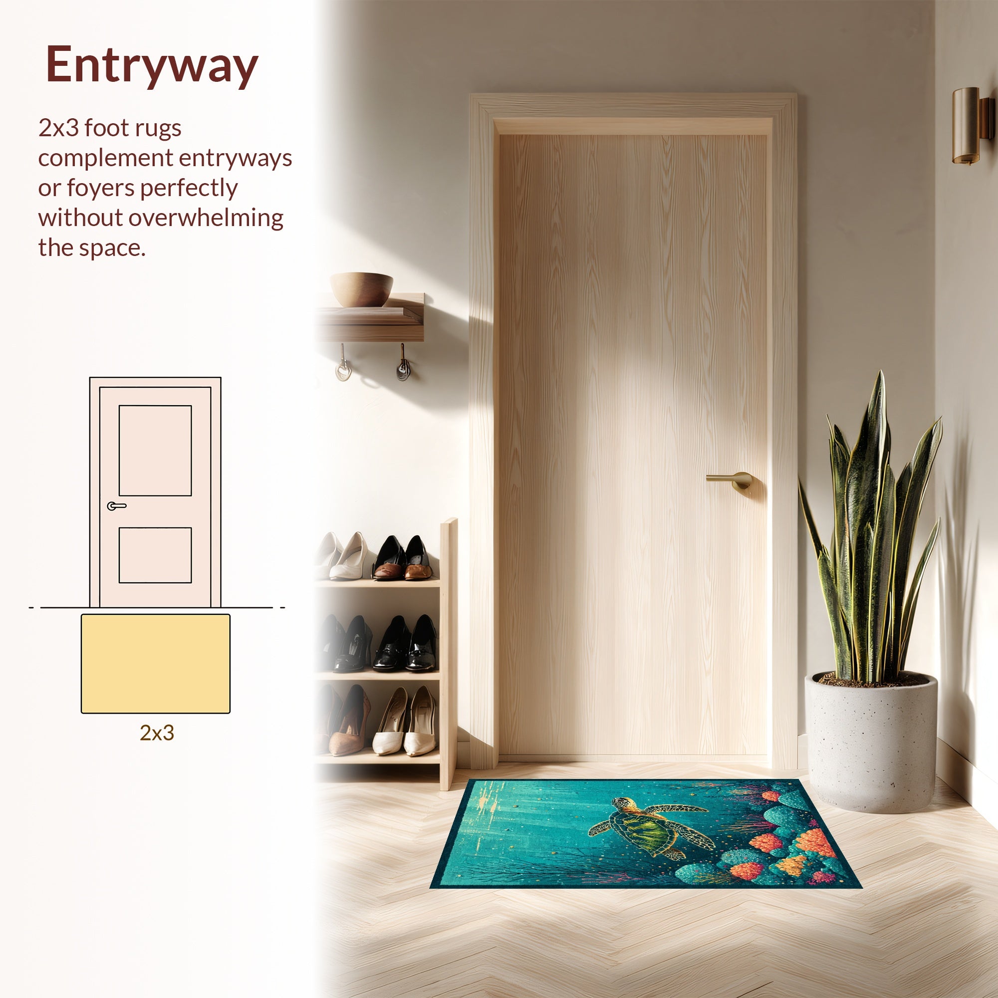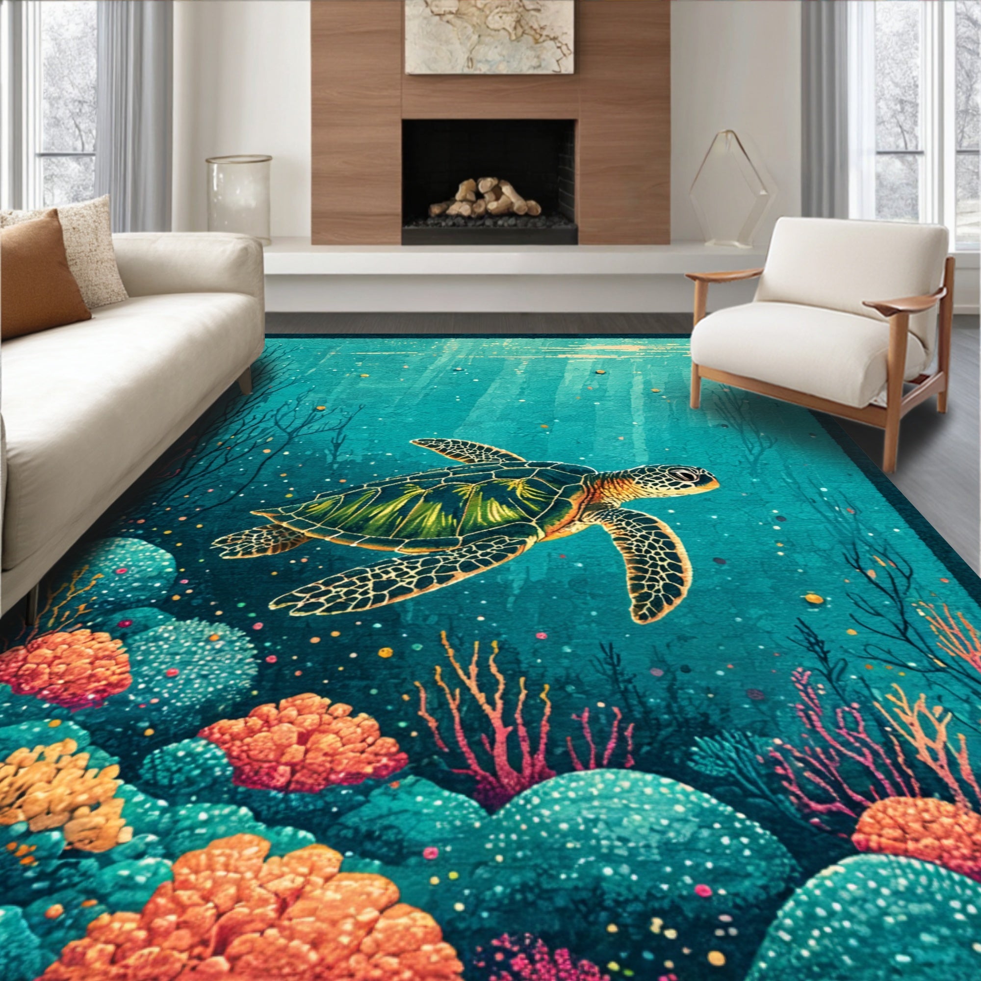 Flatwoven High Traffic Area Rug, Sea Friends Cartoon Ocean Life, Non Slip, Stain Resistant, Washable Area Rugs for Living Room, Bedroom (Blue) Overview: